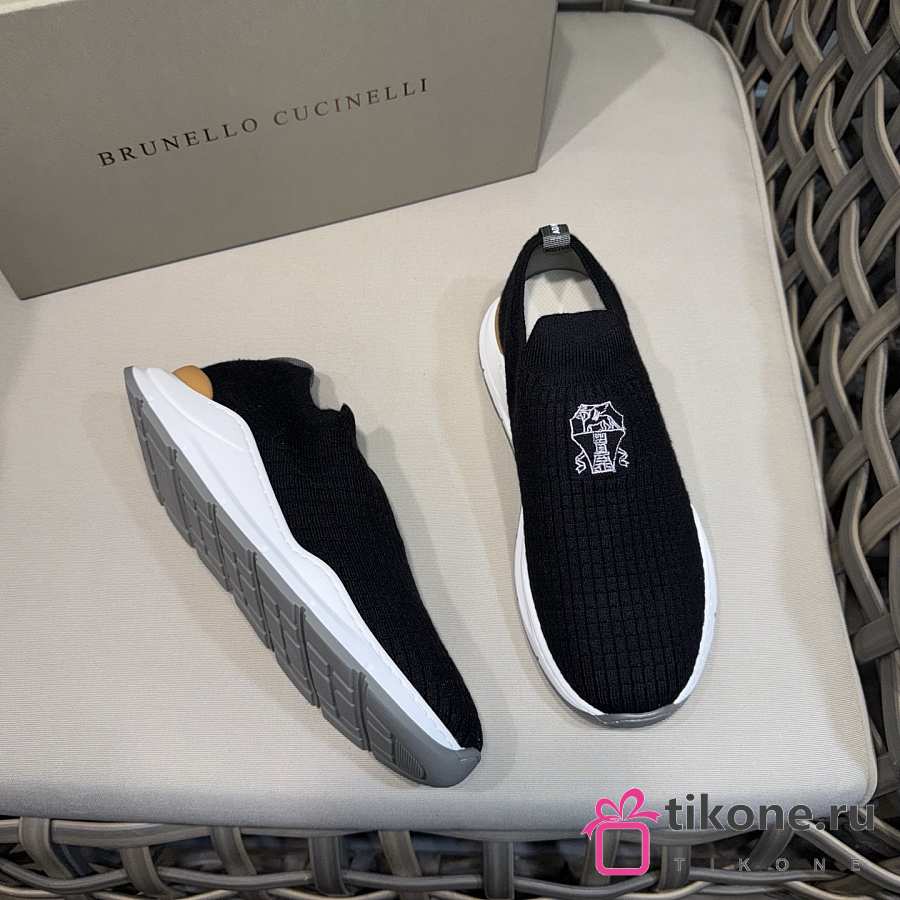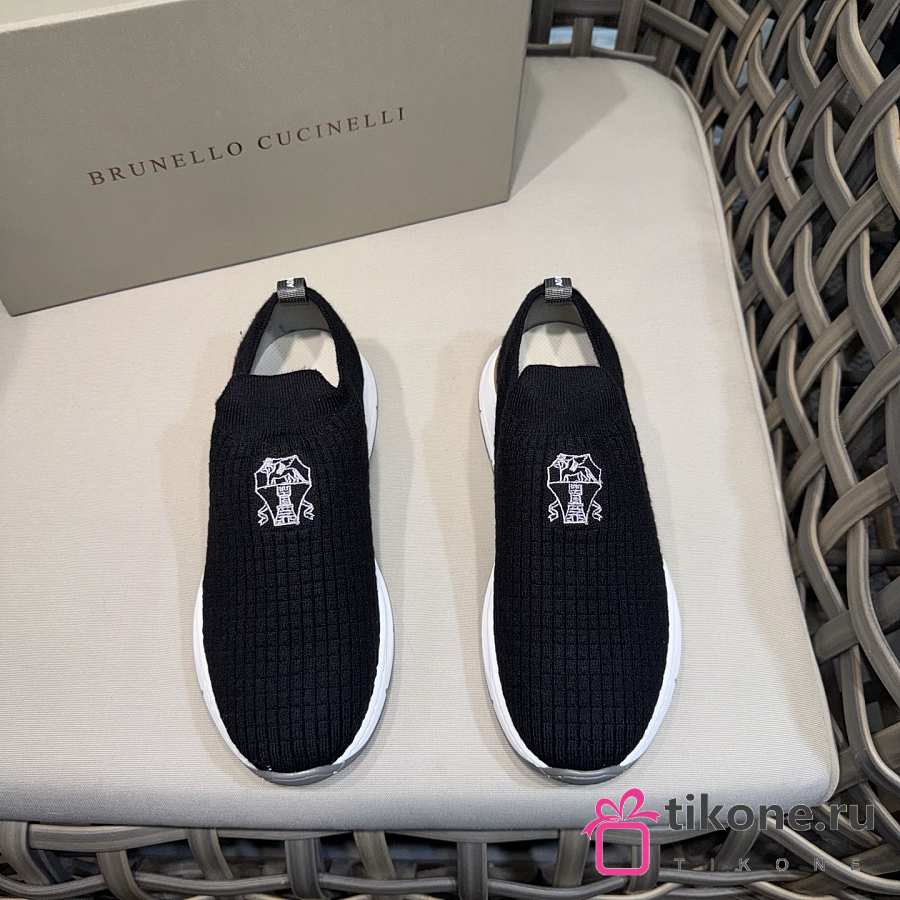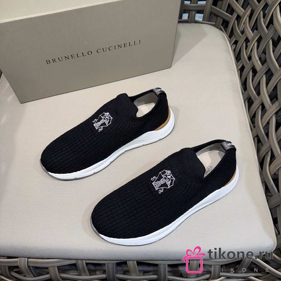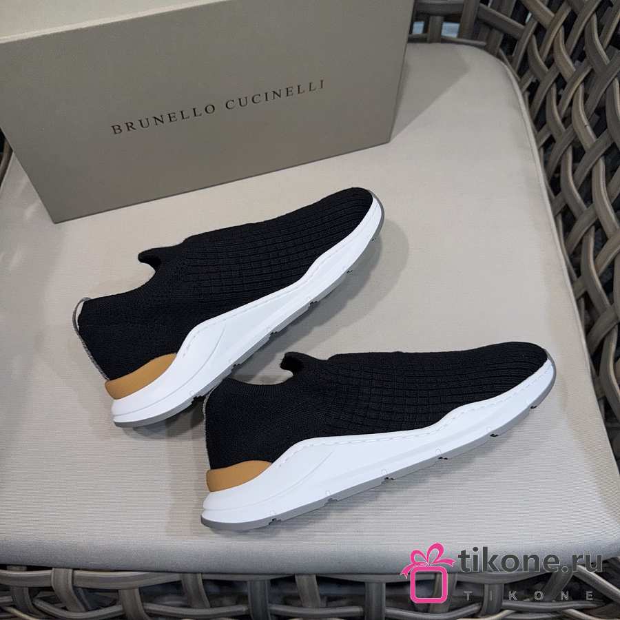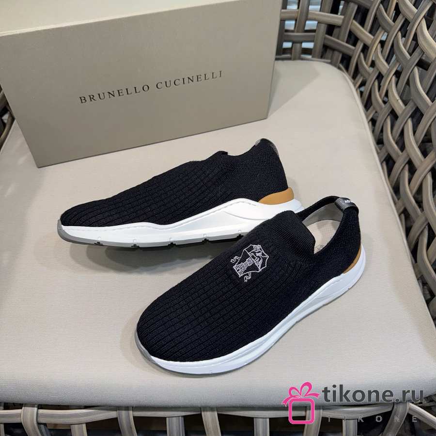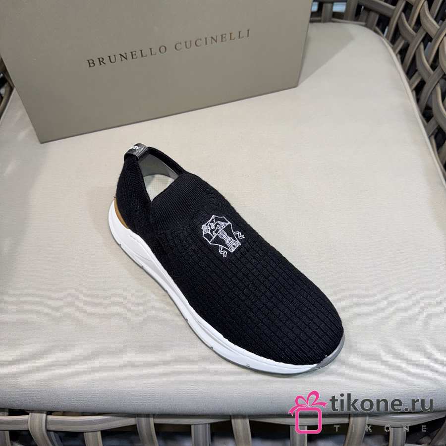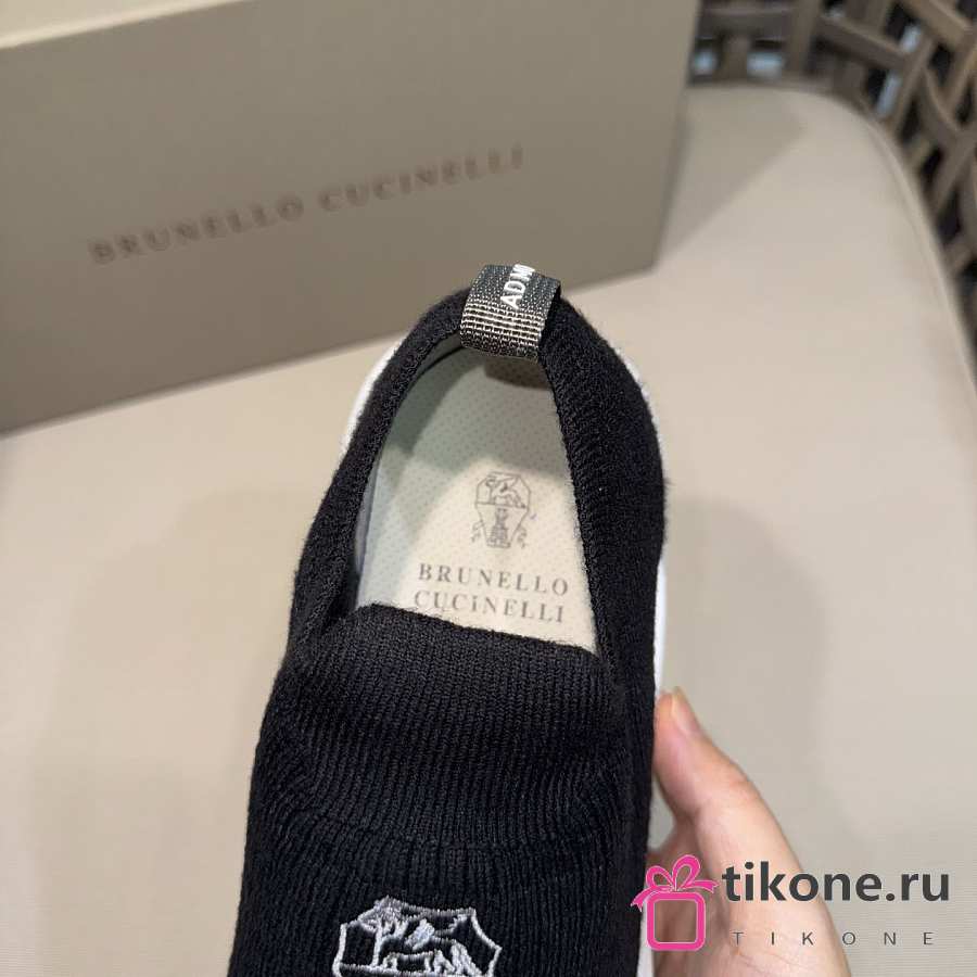 Brunello Cucinelli Knit Slip-on Runners with Logo Black