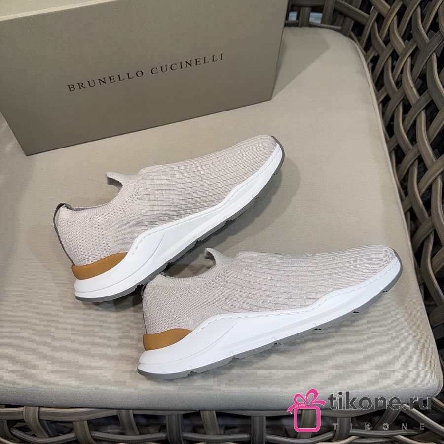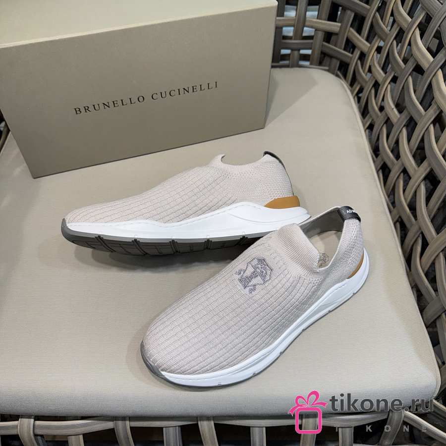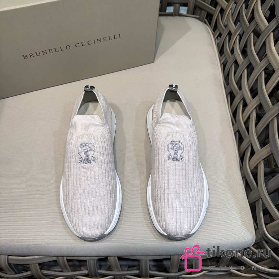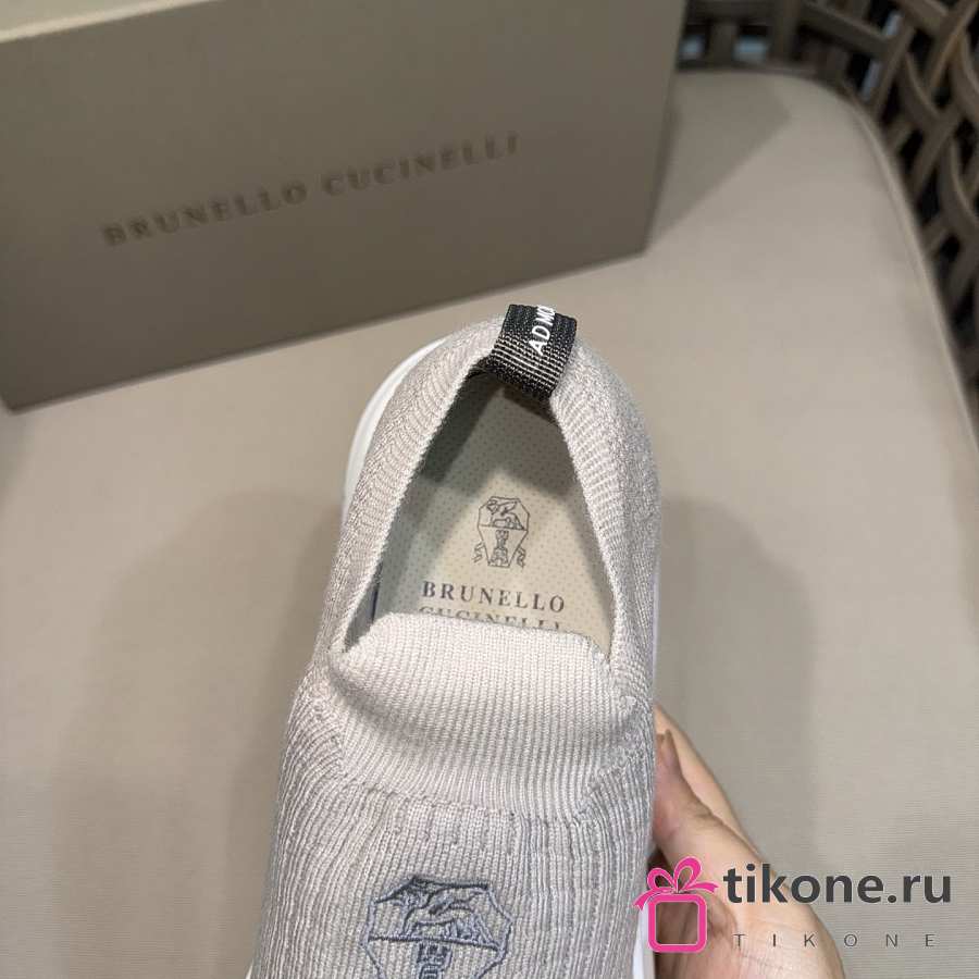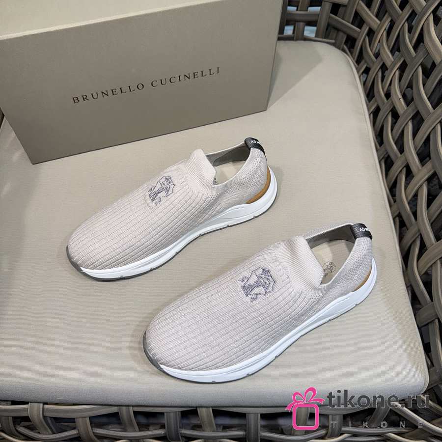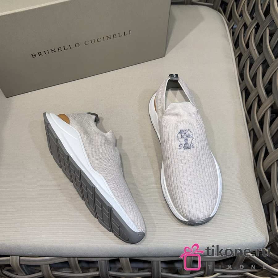 Brunello Cucinelli Knit Slip-on Runners with Logo White