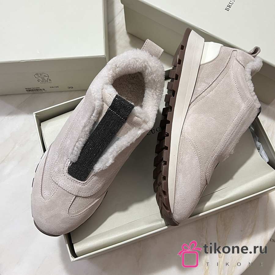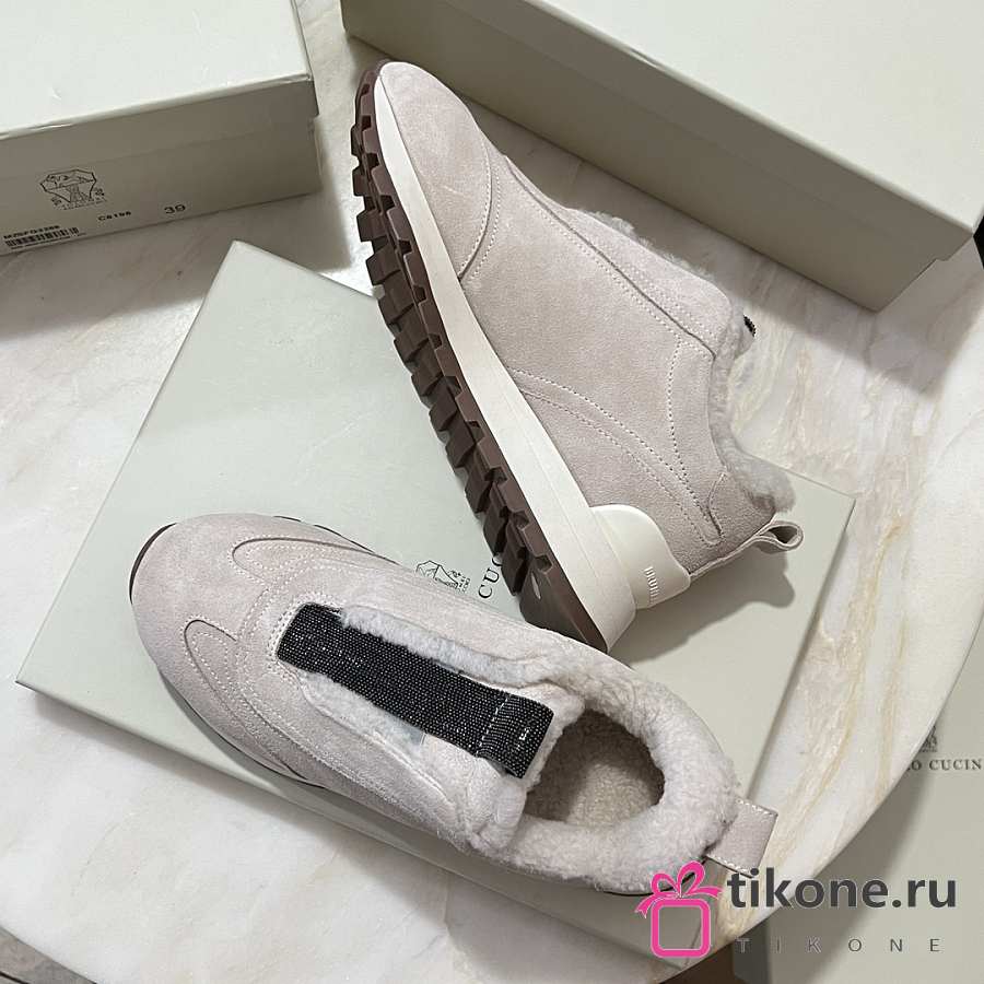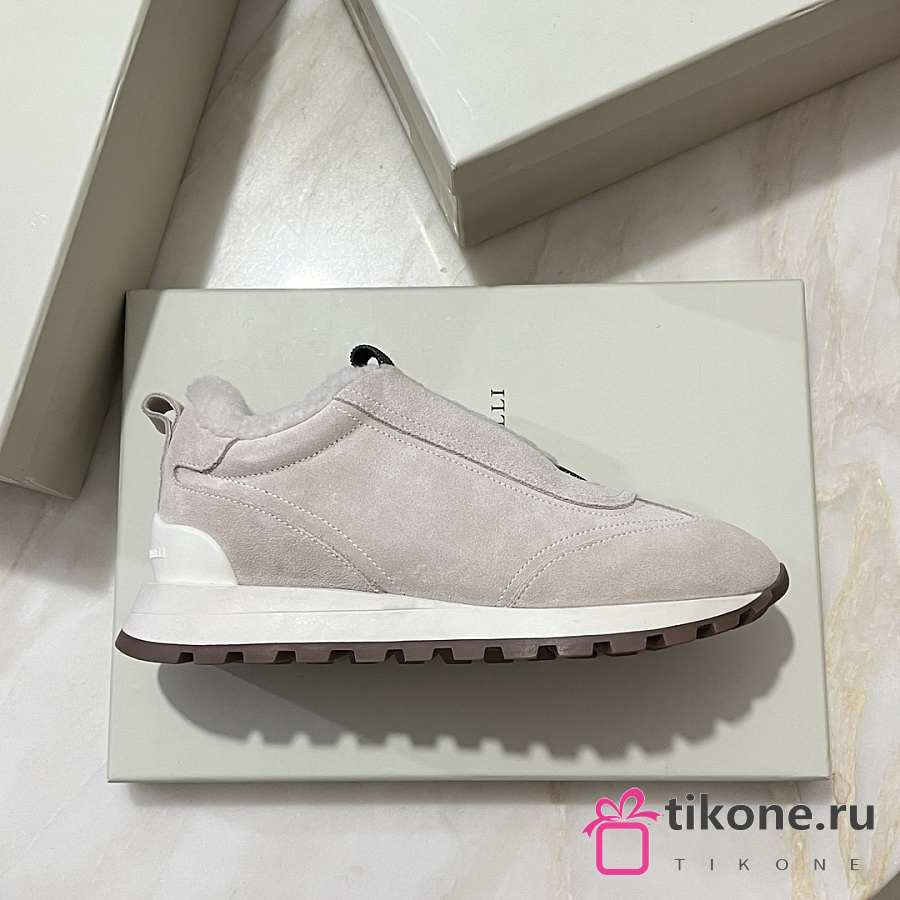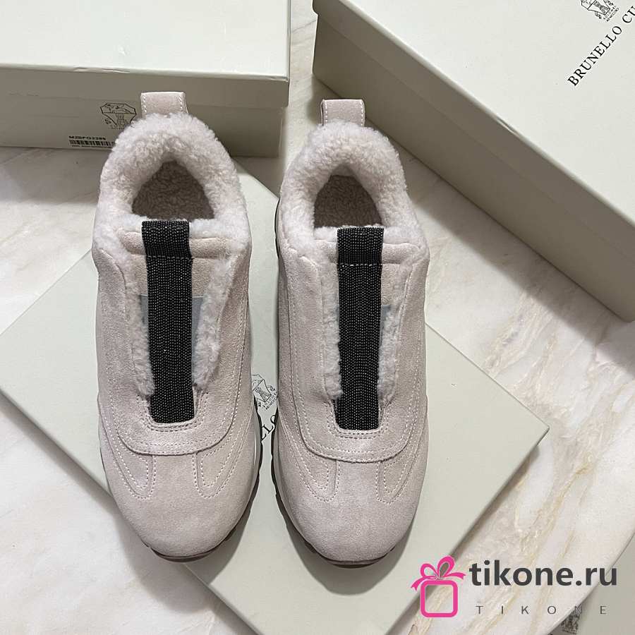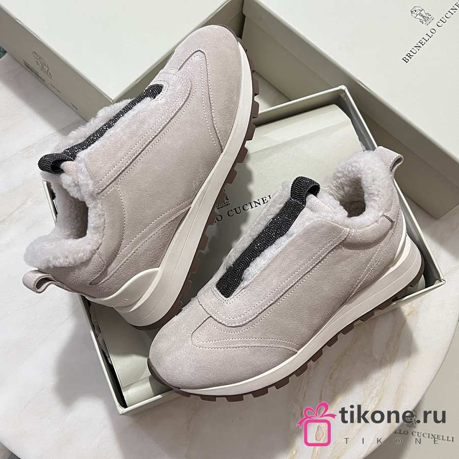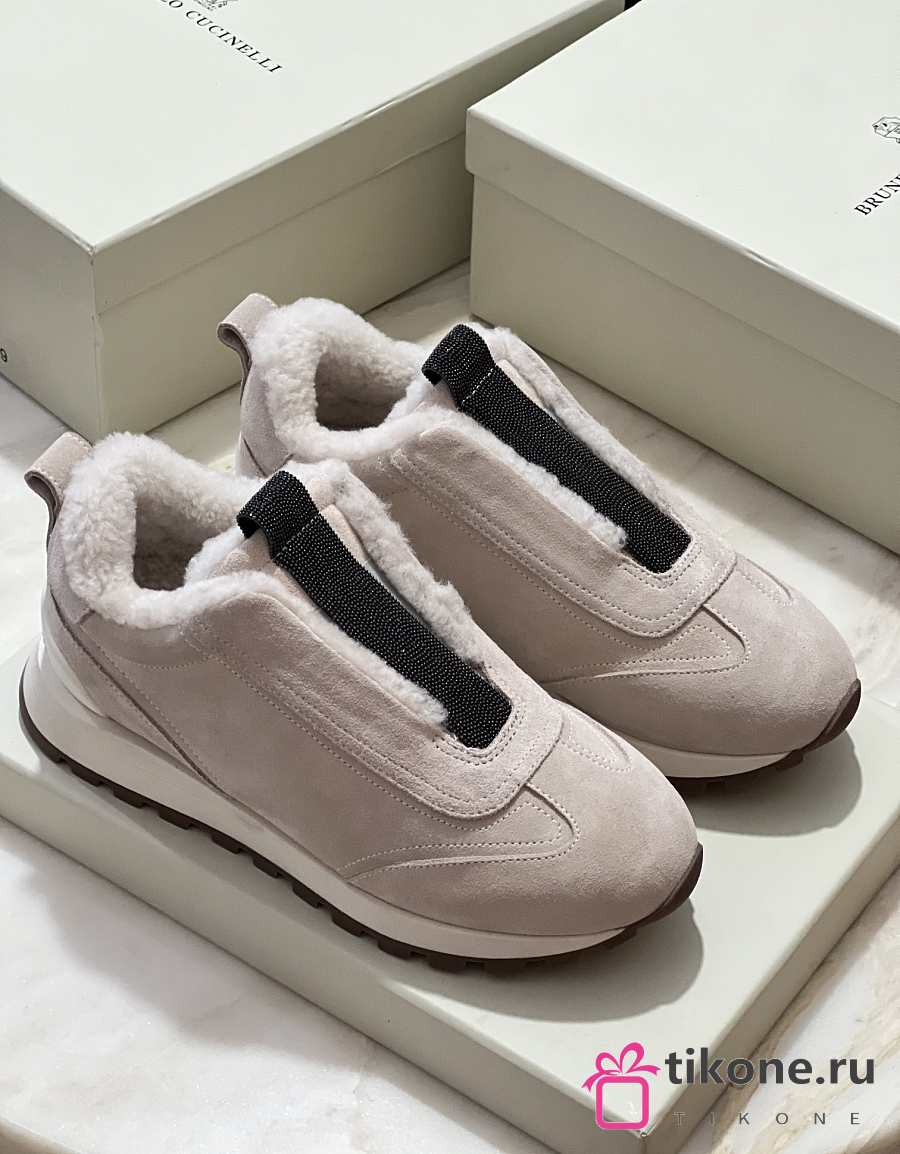 Brunello Cucinelli Suede Runners With Shearling Lining And Precious Detail