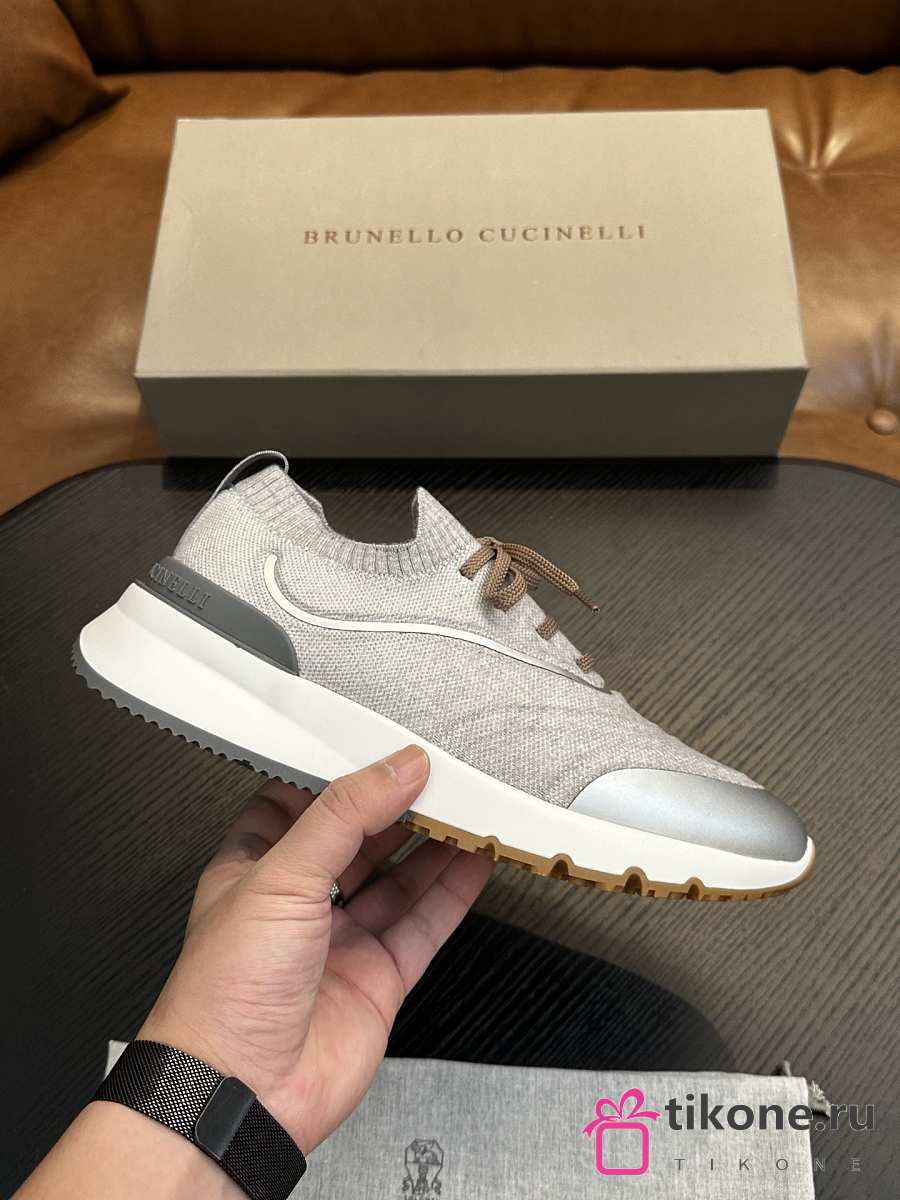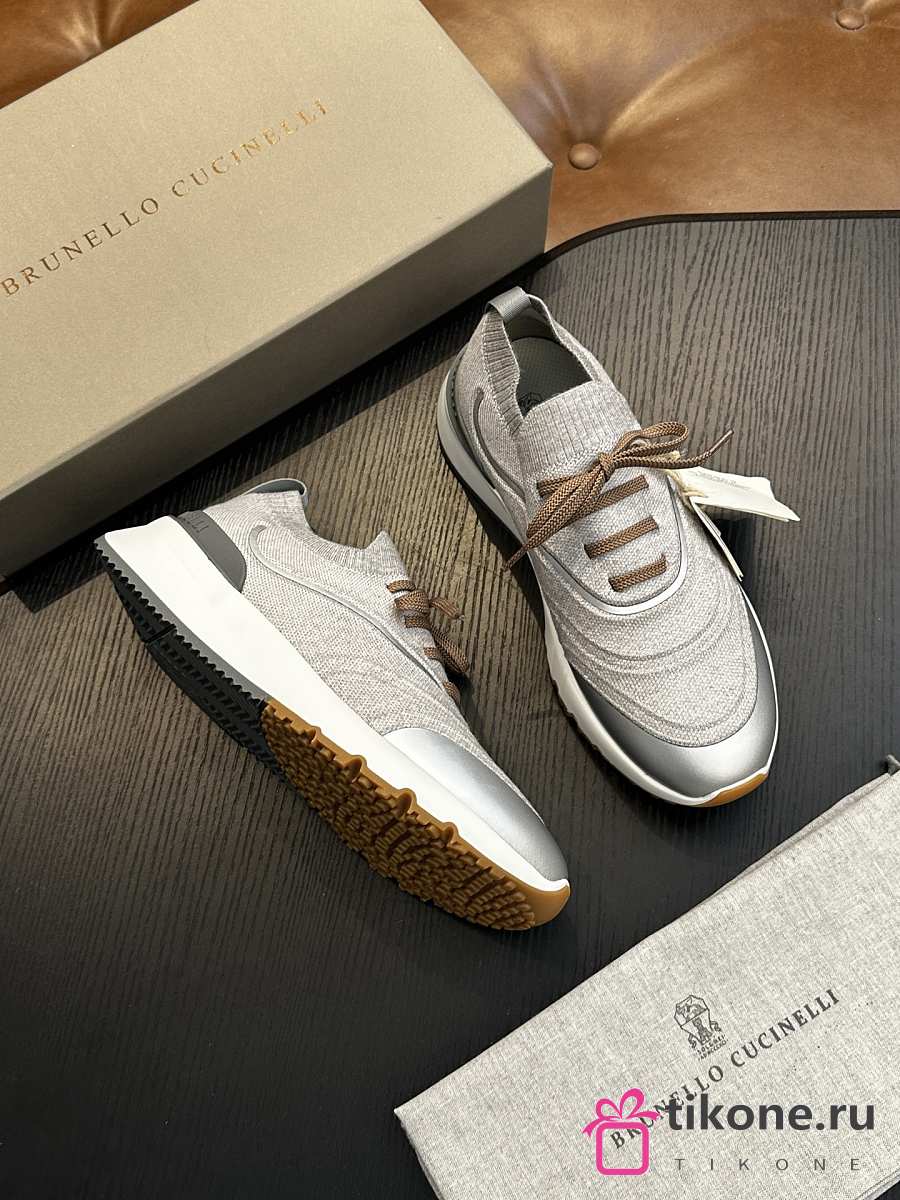 Brunello Cucinelli Techno Cotton Knit Runners With Heat-Bonded Details Blue Light Grey (CRG32)