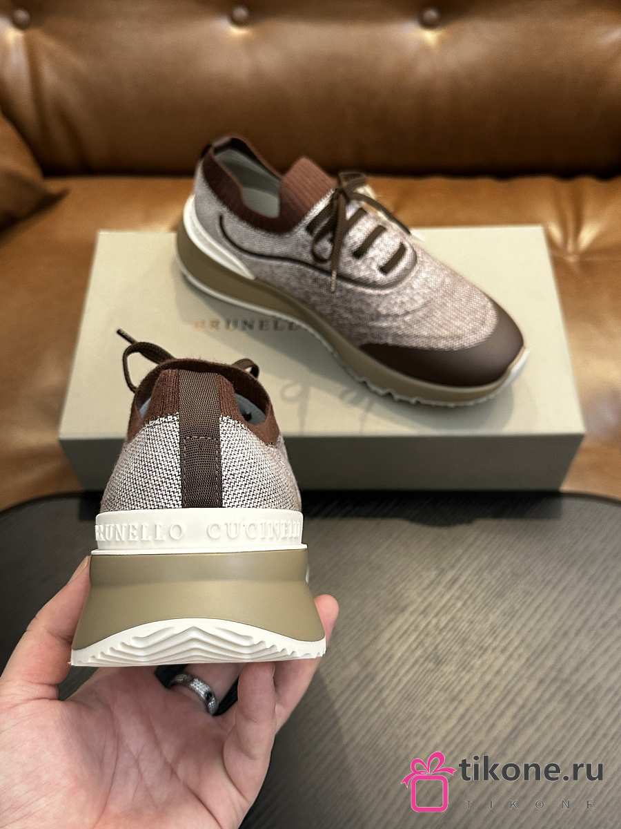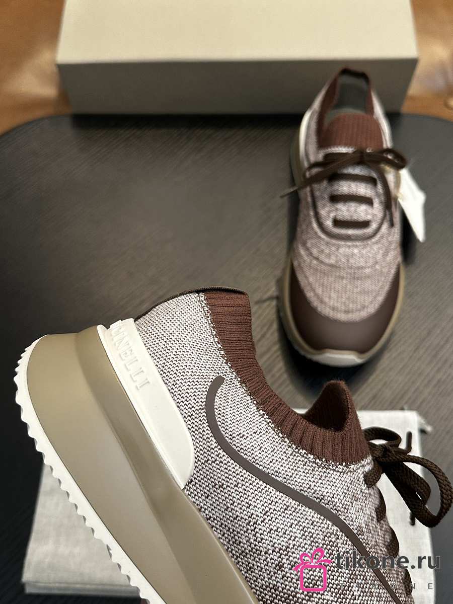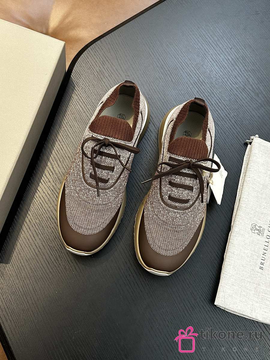 Brunello Cucinelli Techno Cotton Knit Runners With Heat-Bonded Details Brown (CIZ16)
