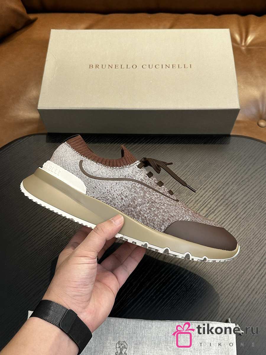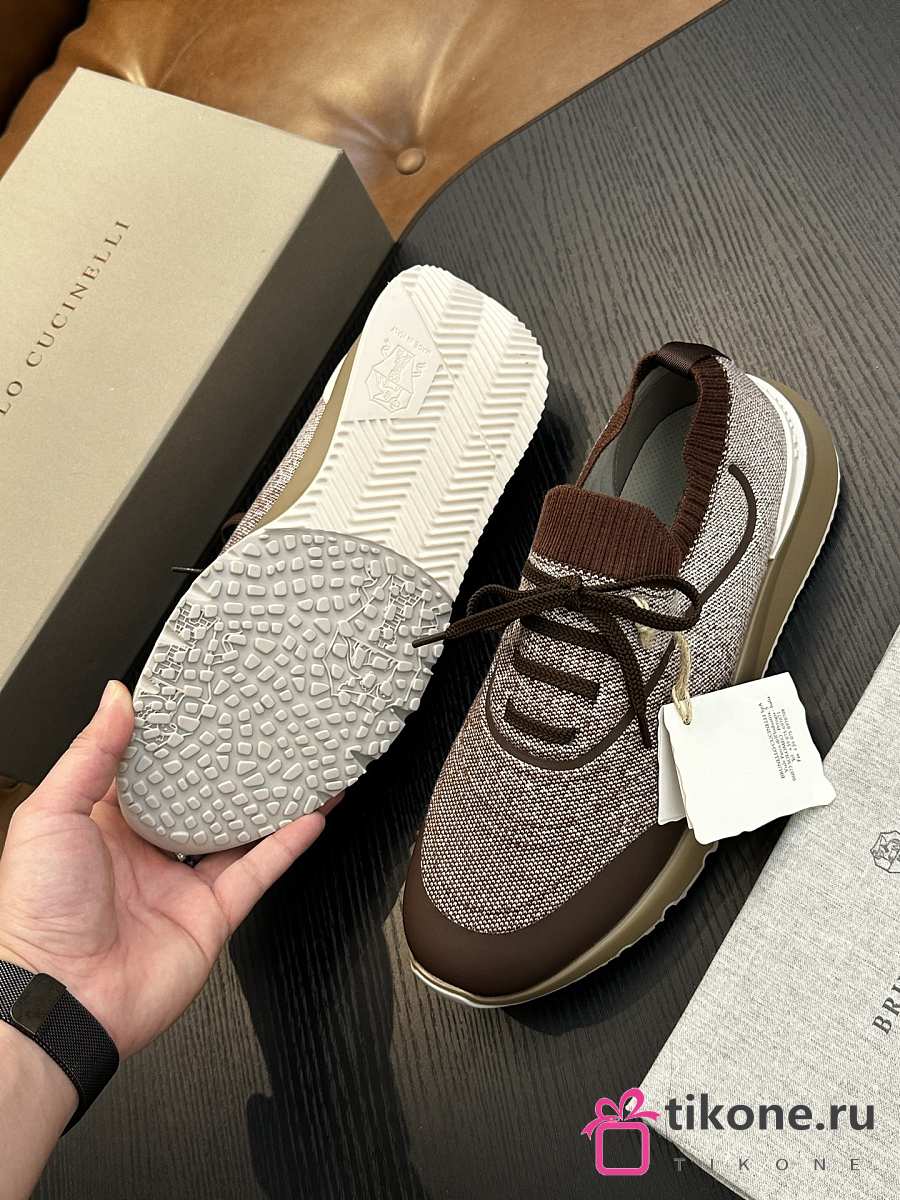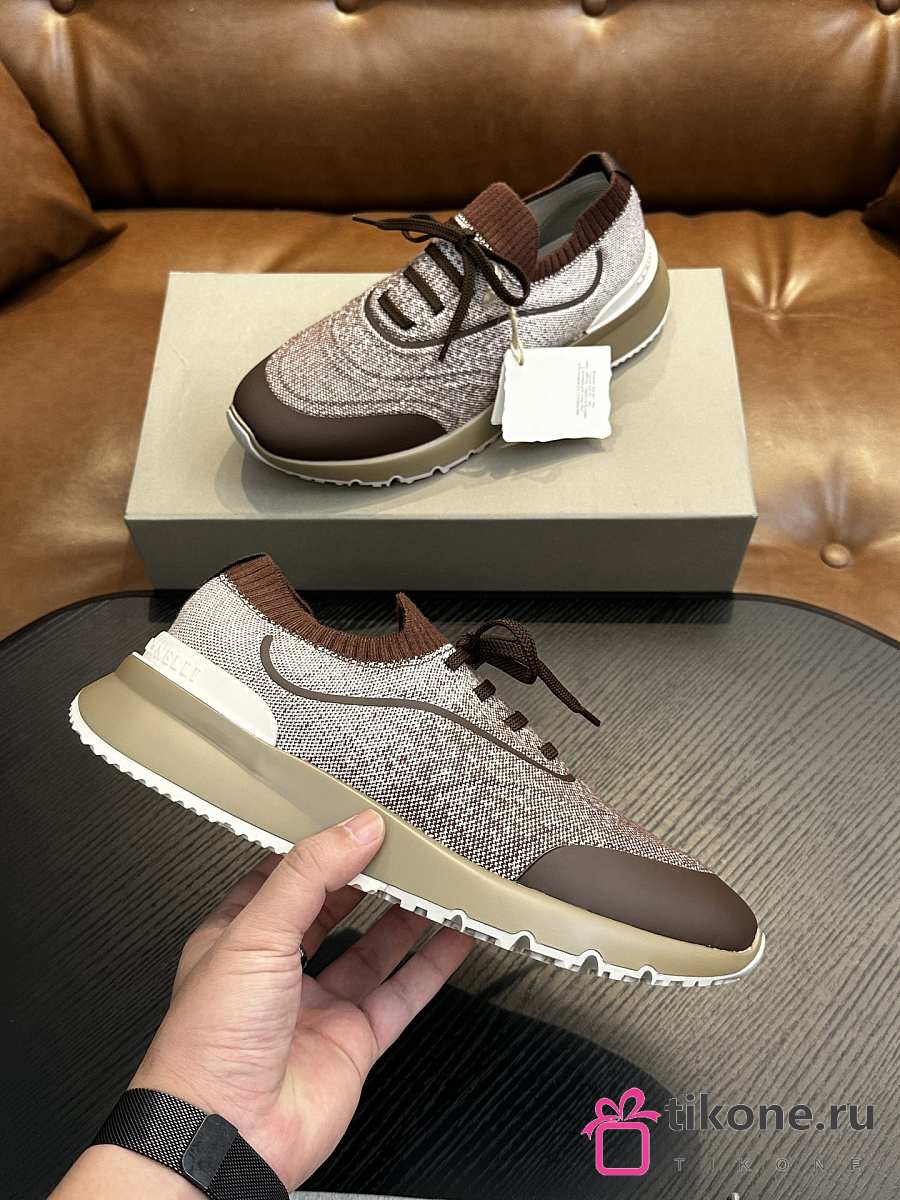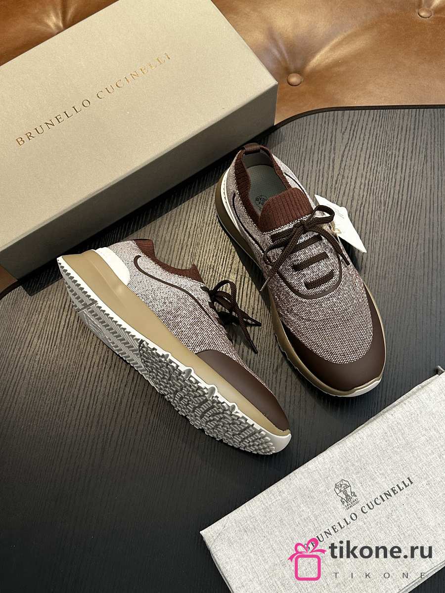Brunello Cucinelli Techno Cotton Knit Runners With Heat-Bonded Details Brown (CIZ16)
