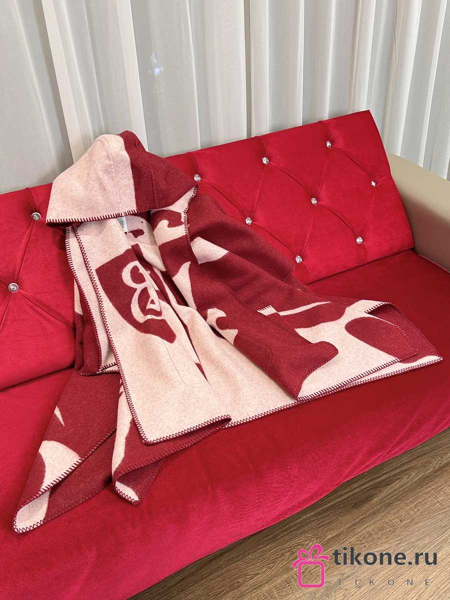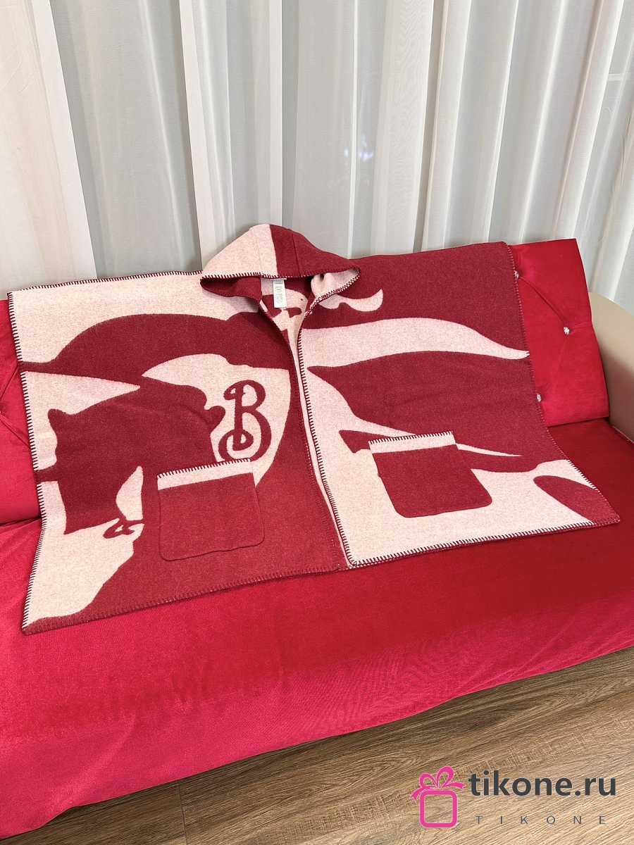 Burberry EKD-motif Hooded Wool Cape Red - 176x120cm