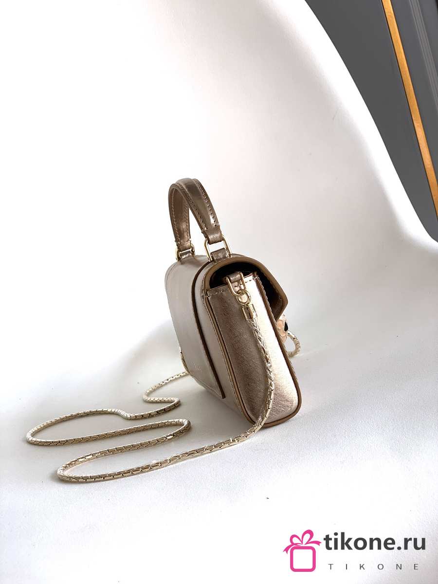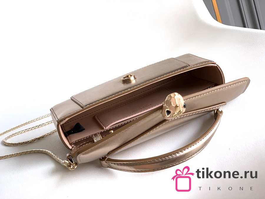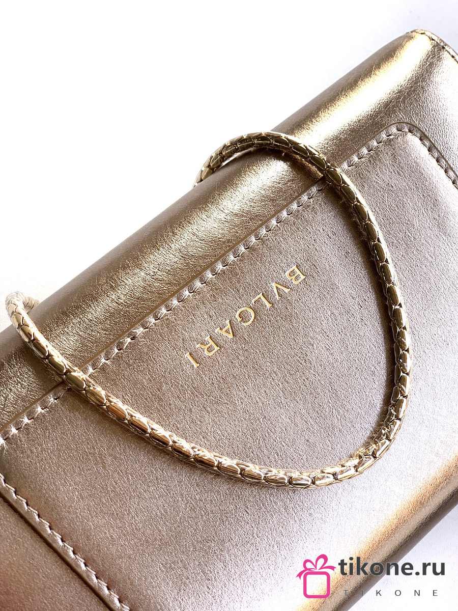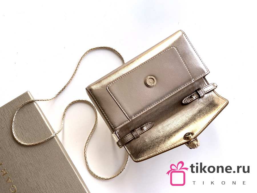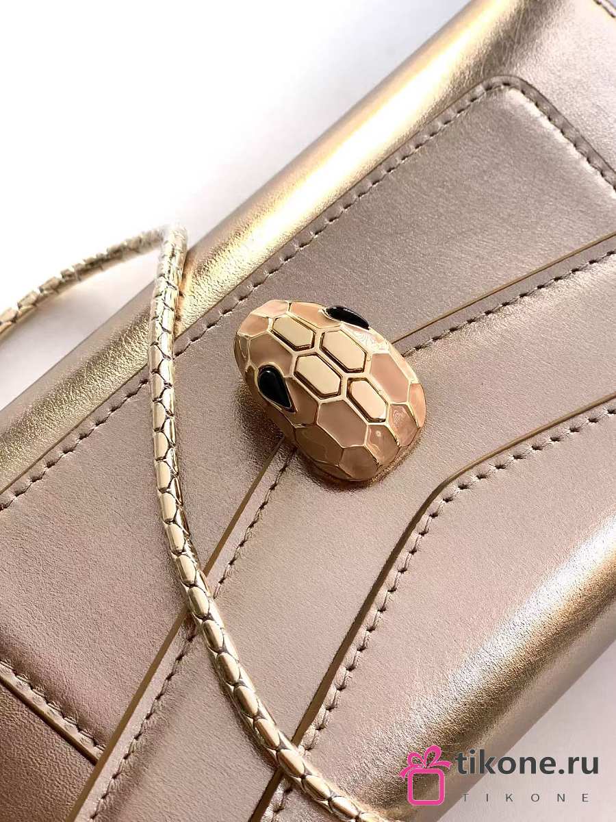 Bvlgari Serpenti Forever Phone Case In Gold Striated Calf Leather - 19x10x3.5cm