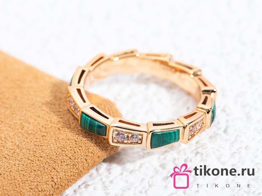 Bvlgari Serpenti Viper 18k Rose Gold Diamond & Carnelian Ring Green