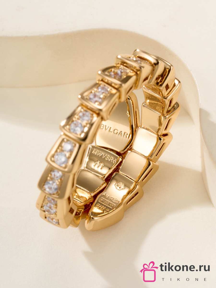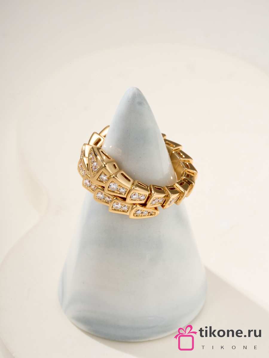 Bvlgari Serpenti Viper 18KT Gold Ring Set With Full Pave Diamonds