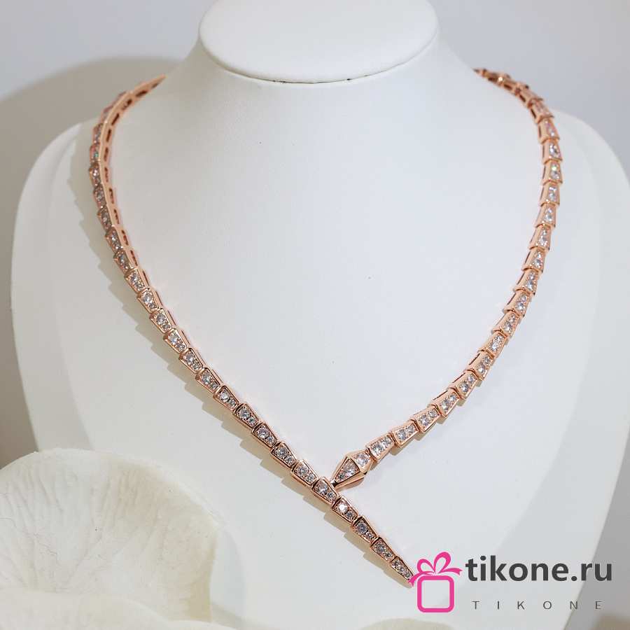 Bvlgari Serpenti Viper 18KT Rose Gold Necklace Set With Full Pave Diamonds 358788
