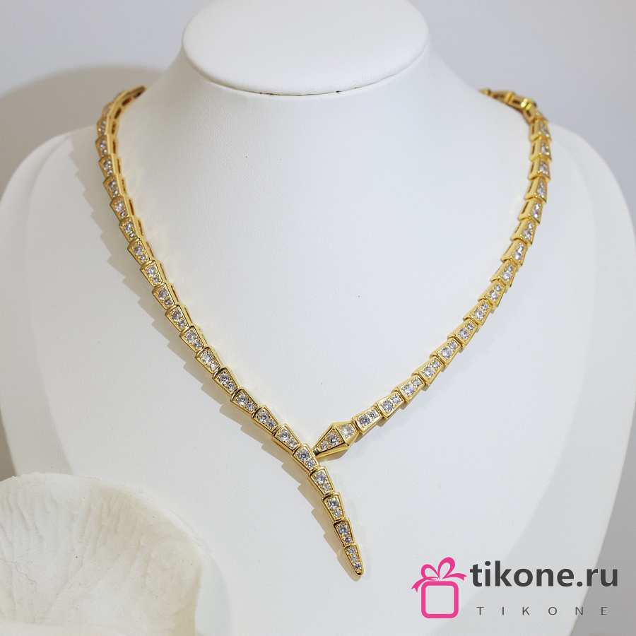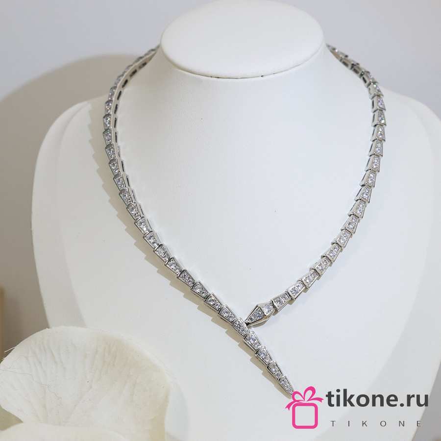 Bvlgari Serpenti Viper 18KT White Gold Necklace Set With Full Pave Diamonds 360350