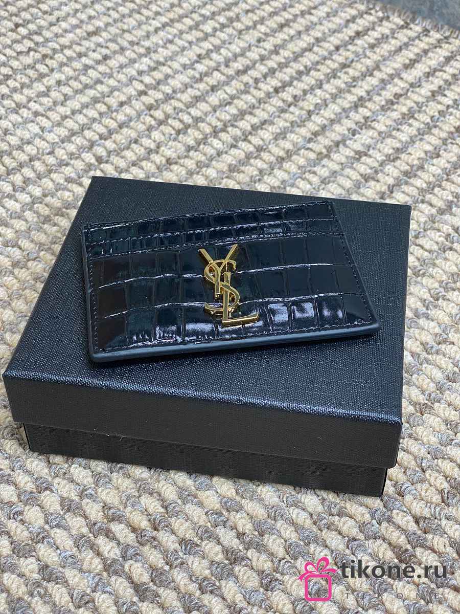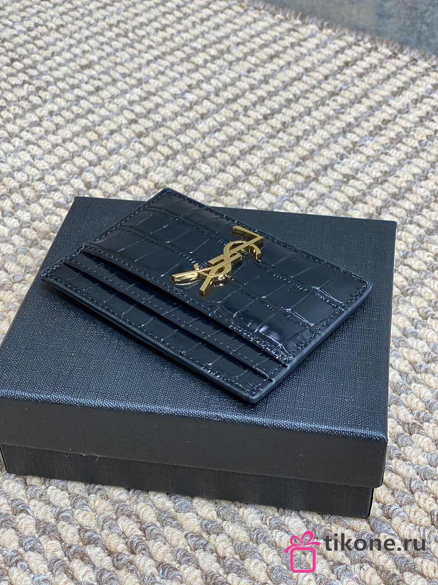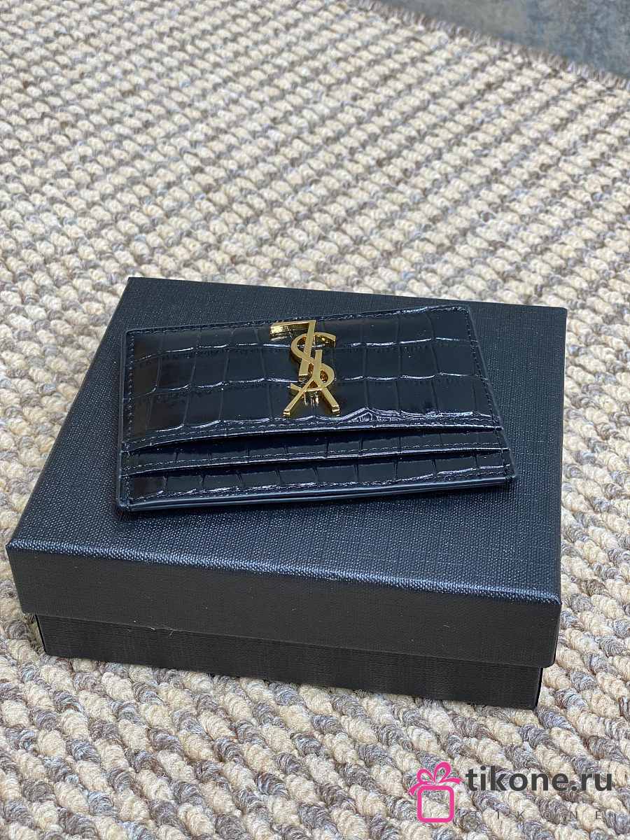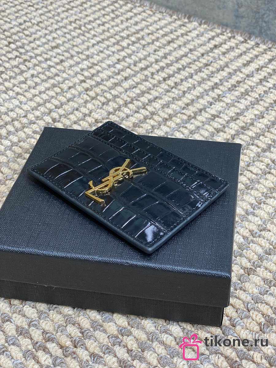Cassandre Card Case In Crocodile-Embossed Shiny Leather Black - 10.5x7.5x0.5cm