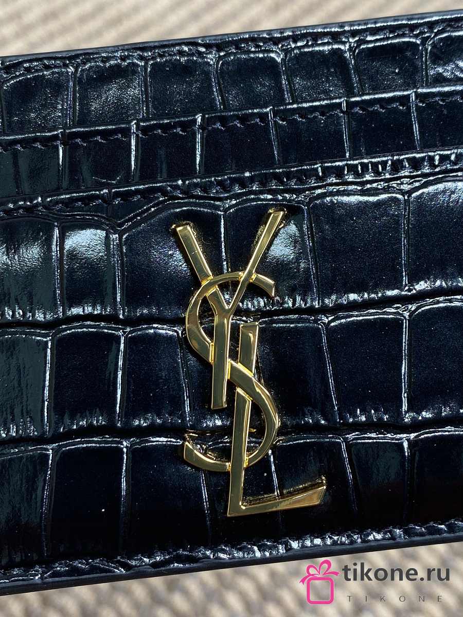 YSL Kate Medium Tassel In Crocodile Embossed Leather Black Gold - 24x5x14.5cm
