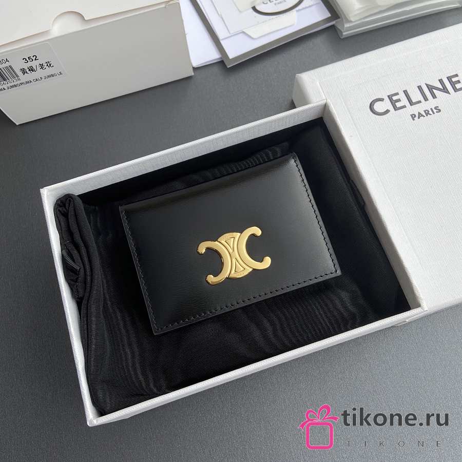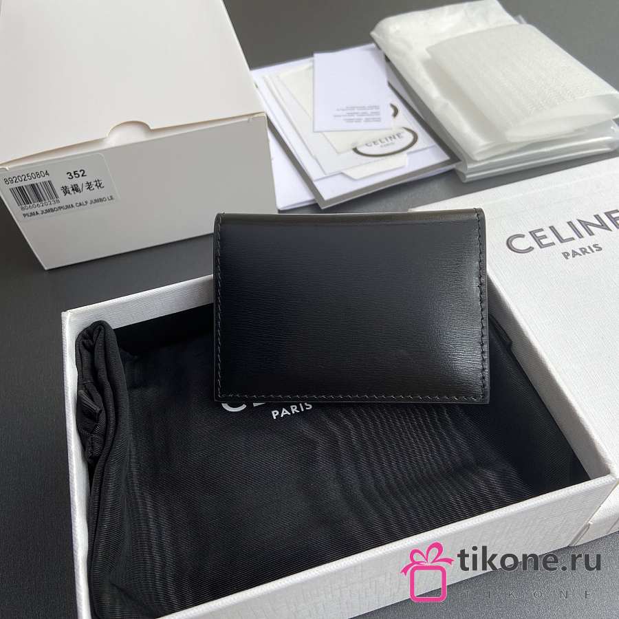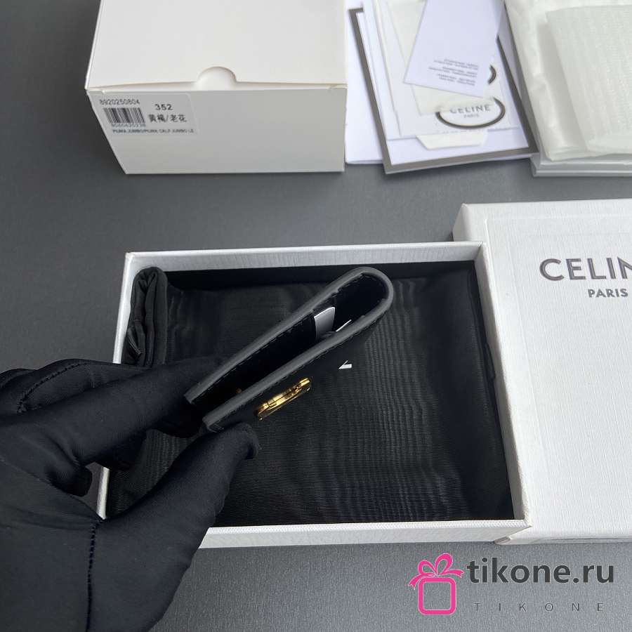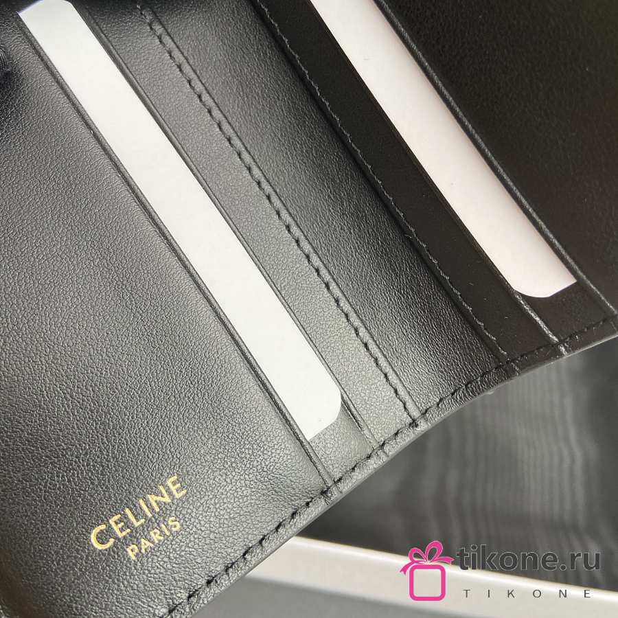 Celine Bi-Fold Card Holder In Shiny Calfskin Black - 10x7.5x1cm