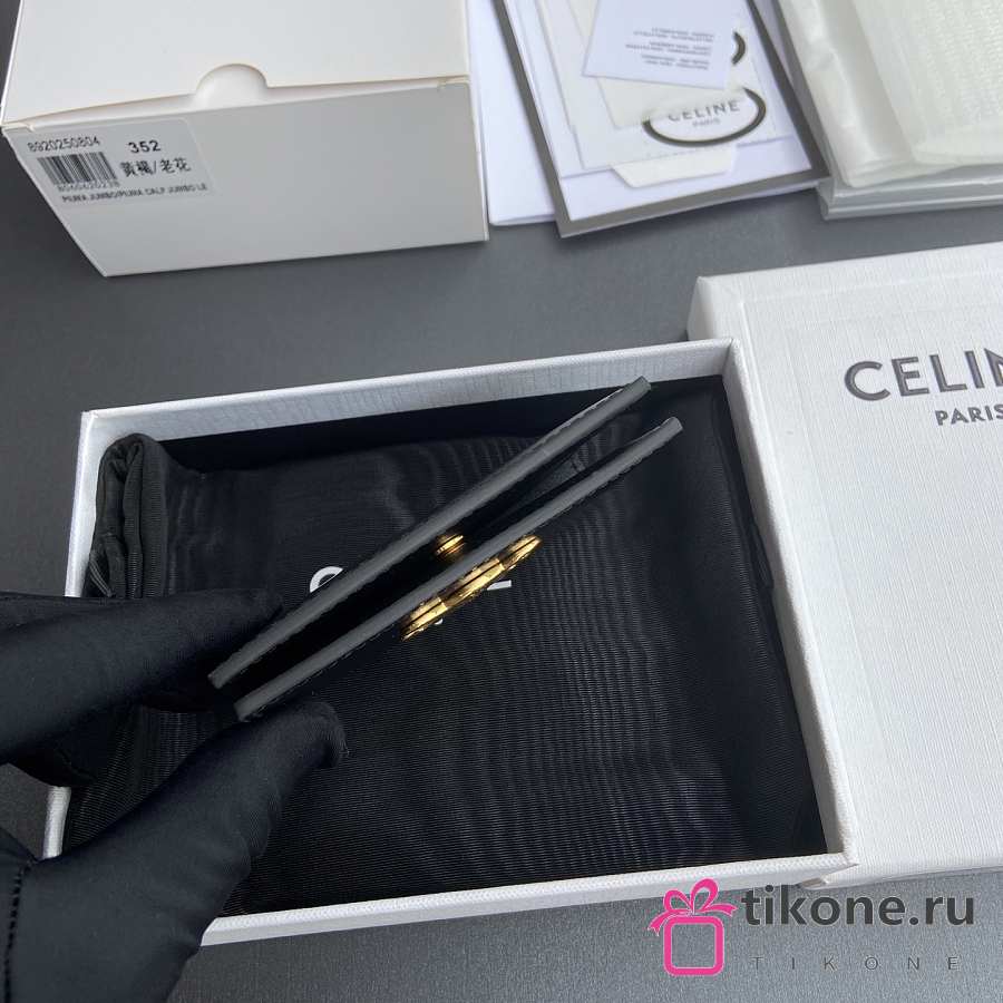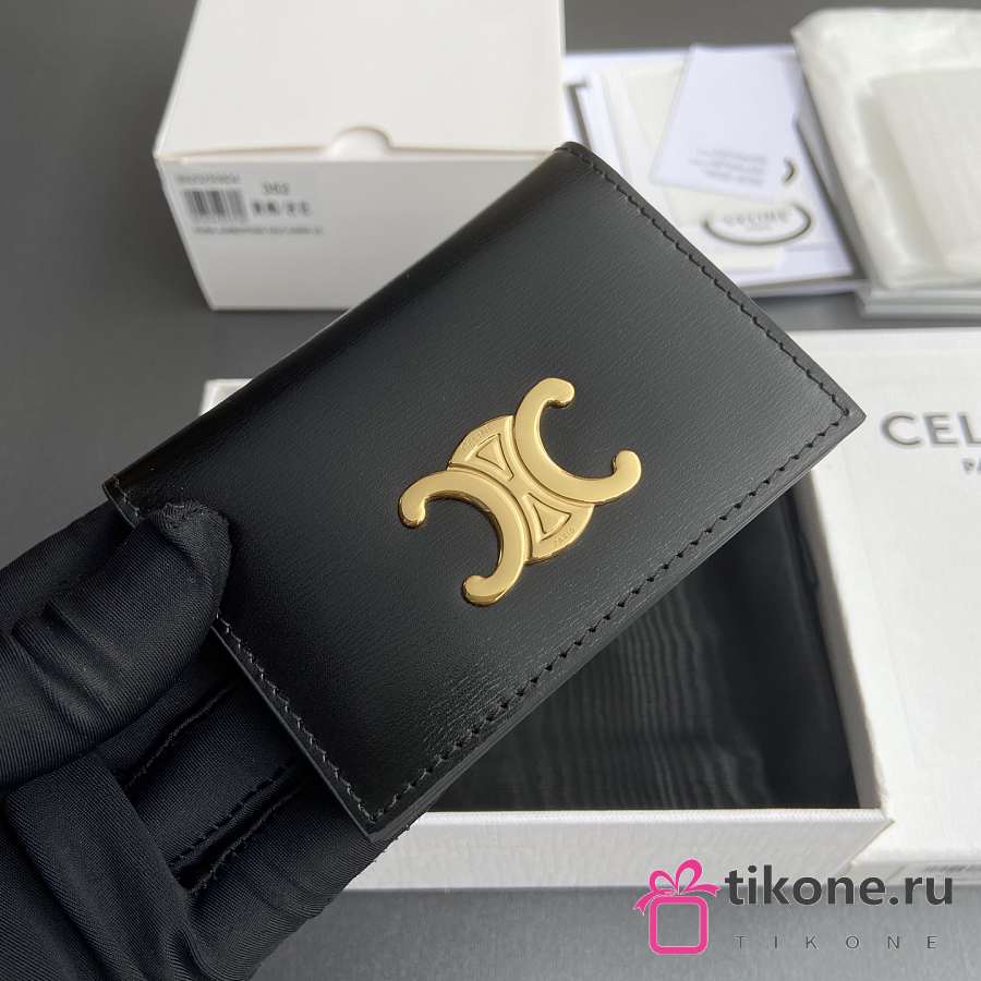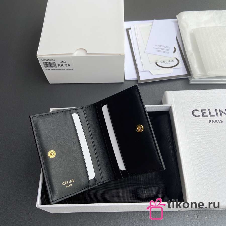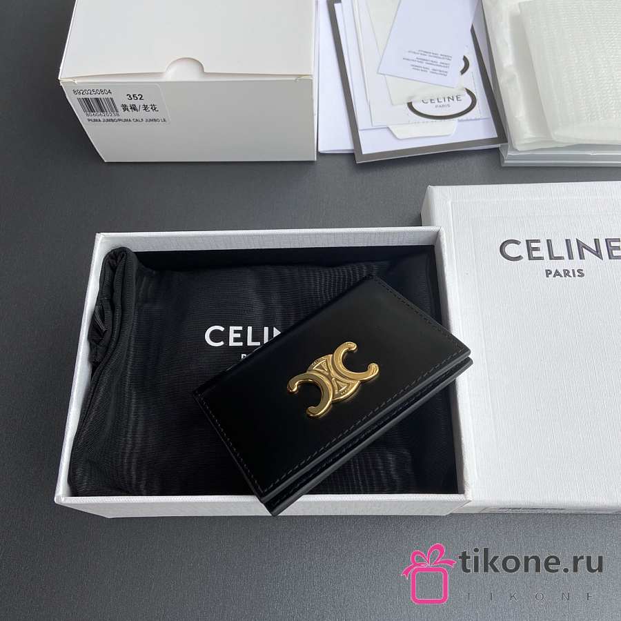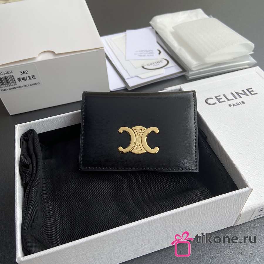 Celine Bi-Fold Card Holder In Shiny Calfskin Black - 10x7.5x1cm