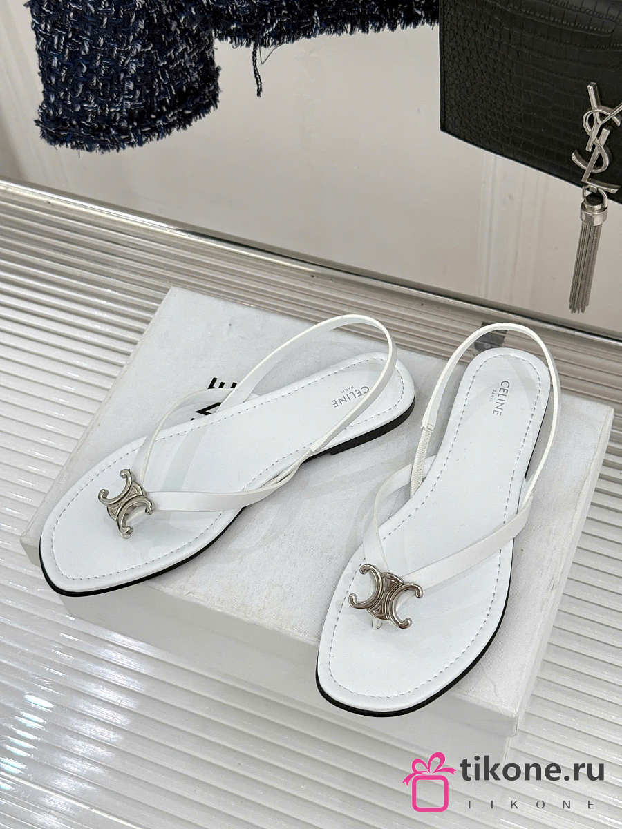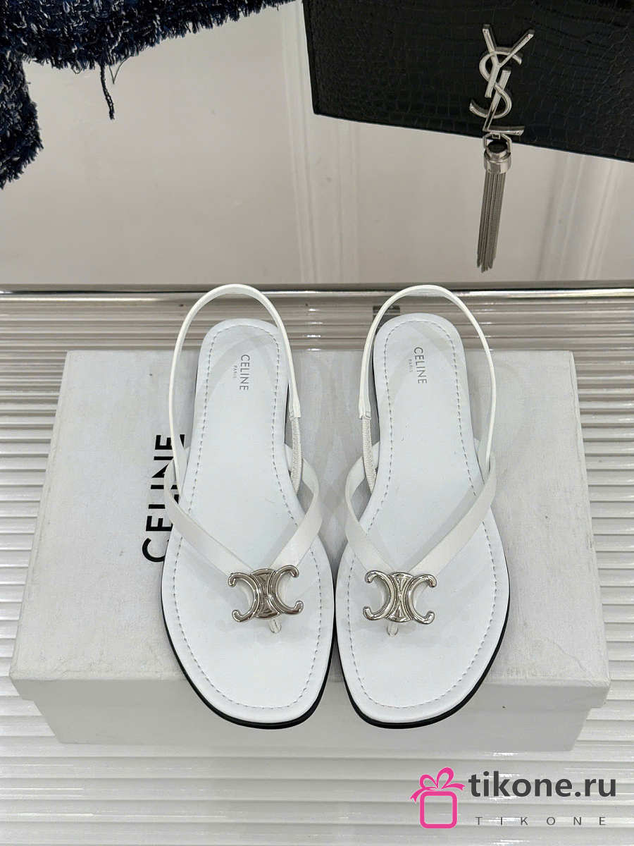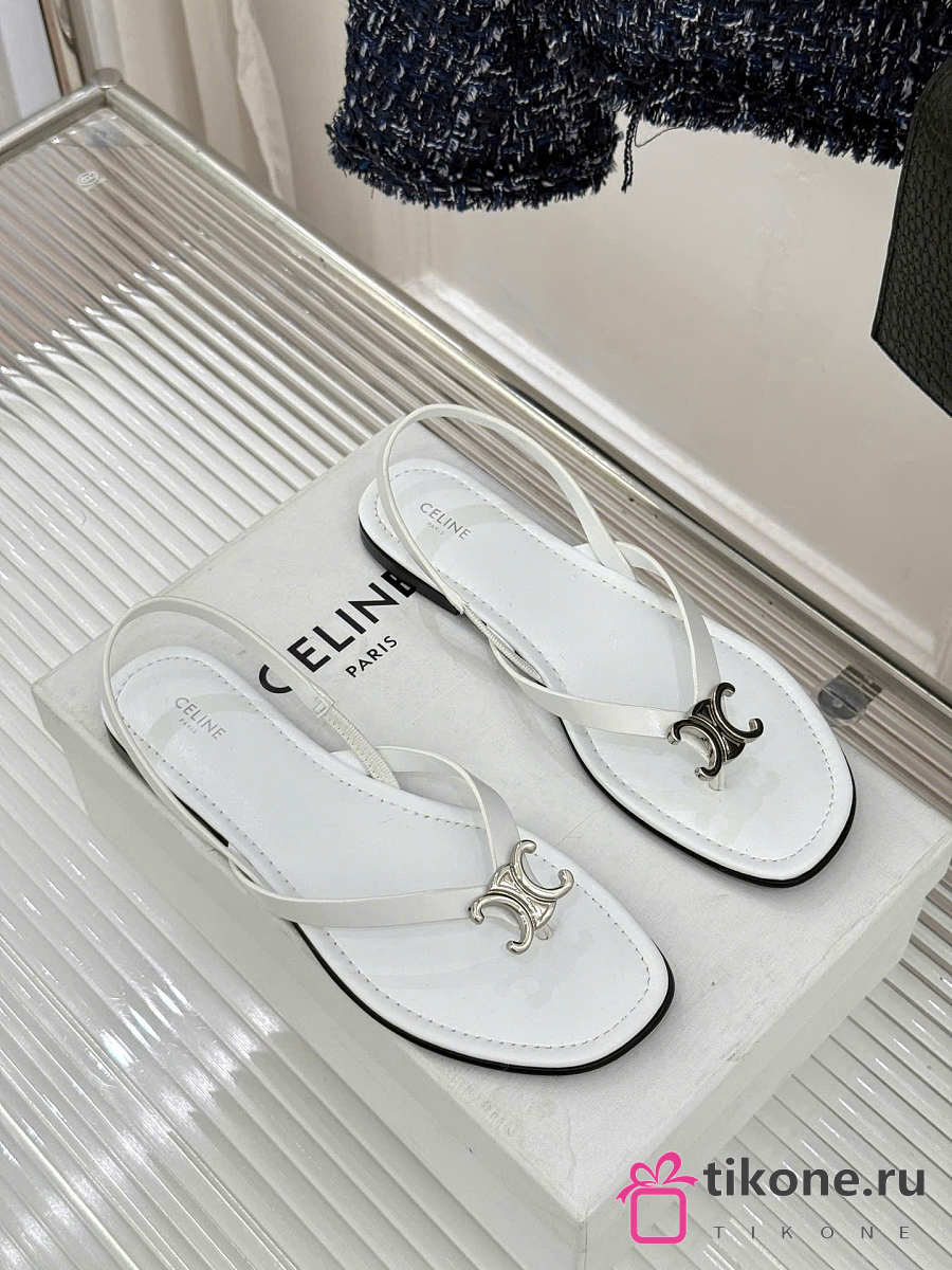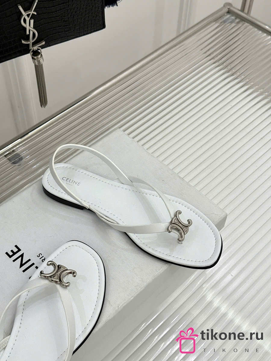 Celine Biki Sandal In Calfskin White