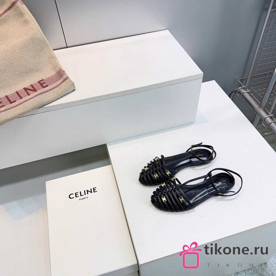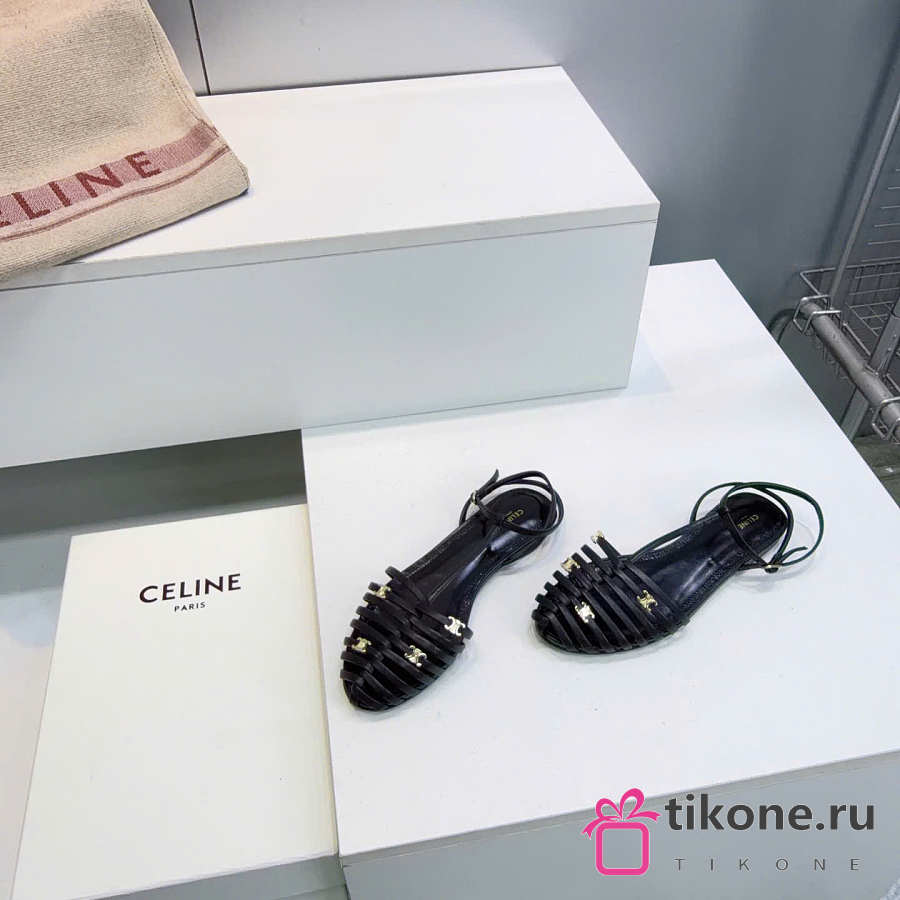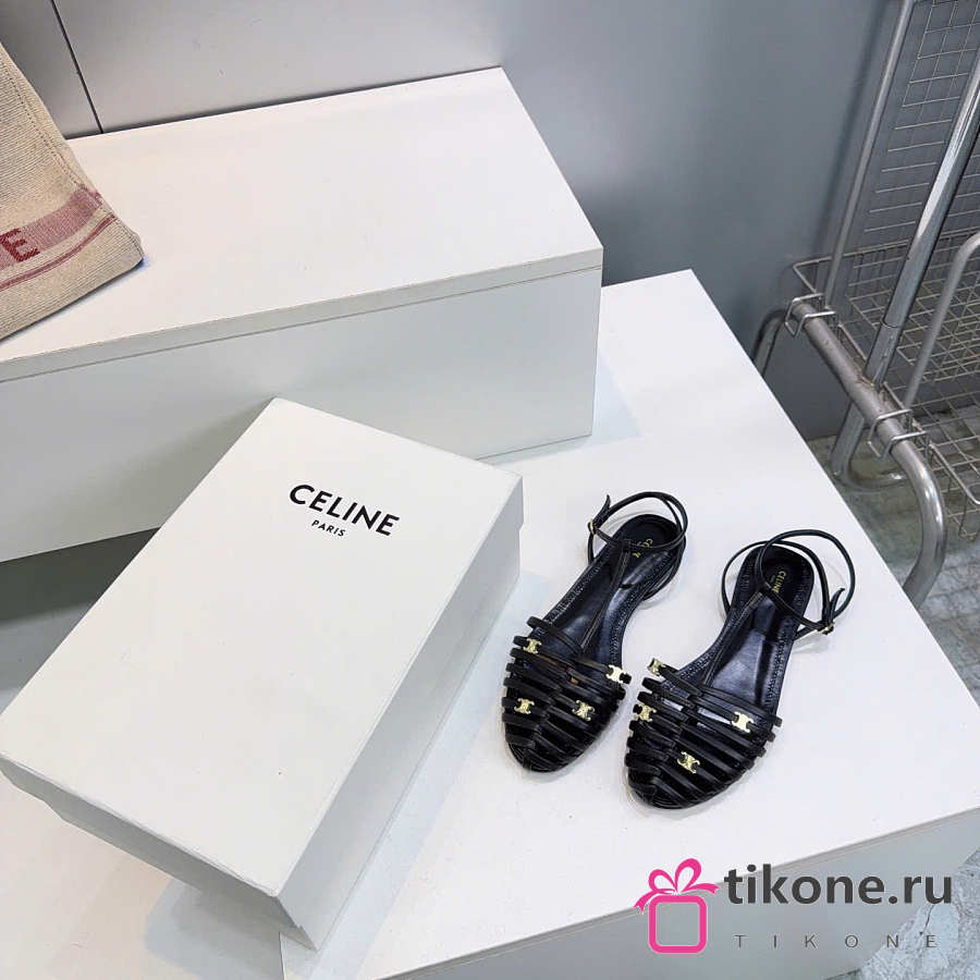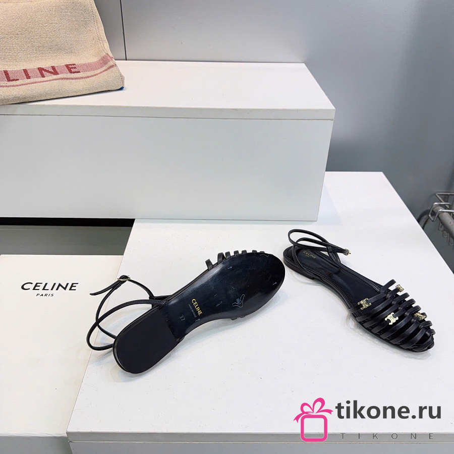 Celine Cage Flat Sandal In Lambskin Black
