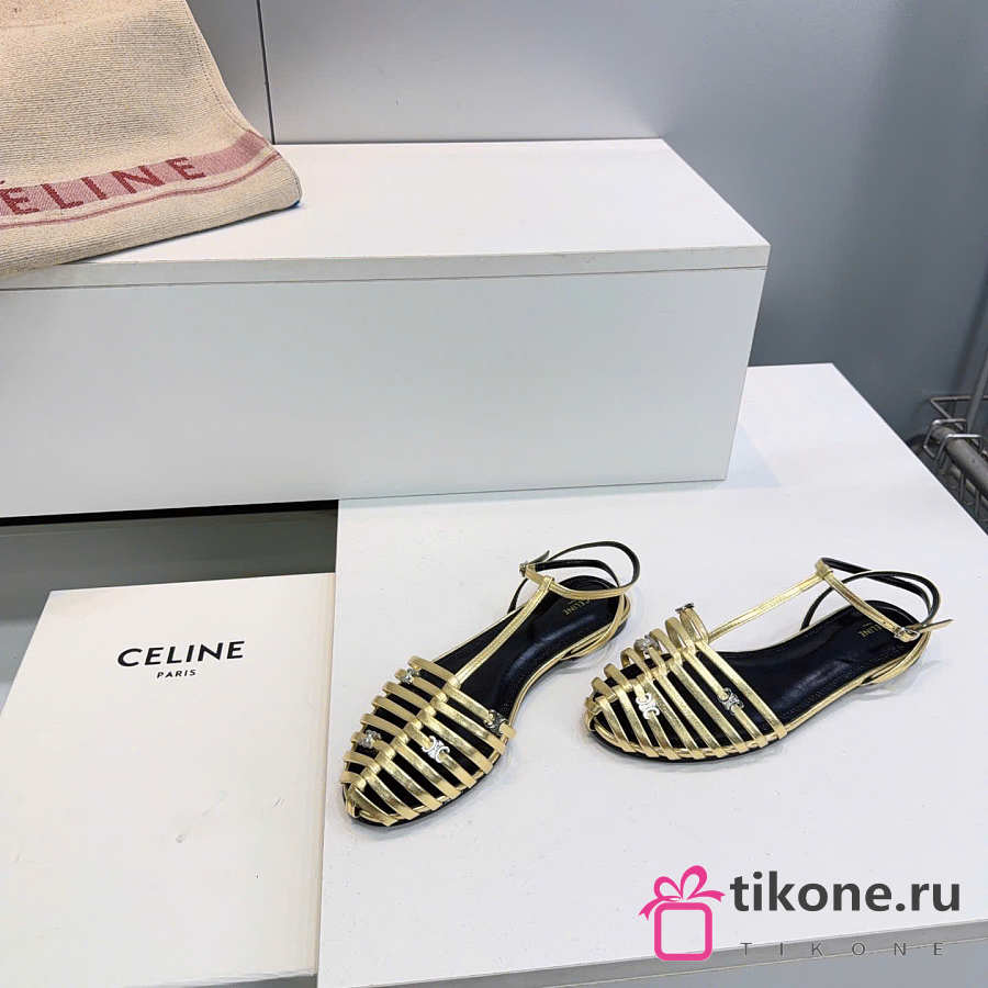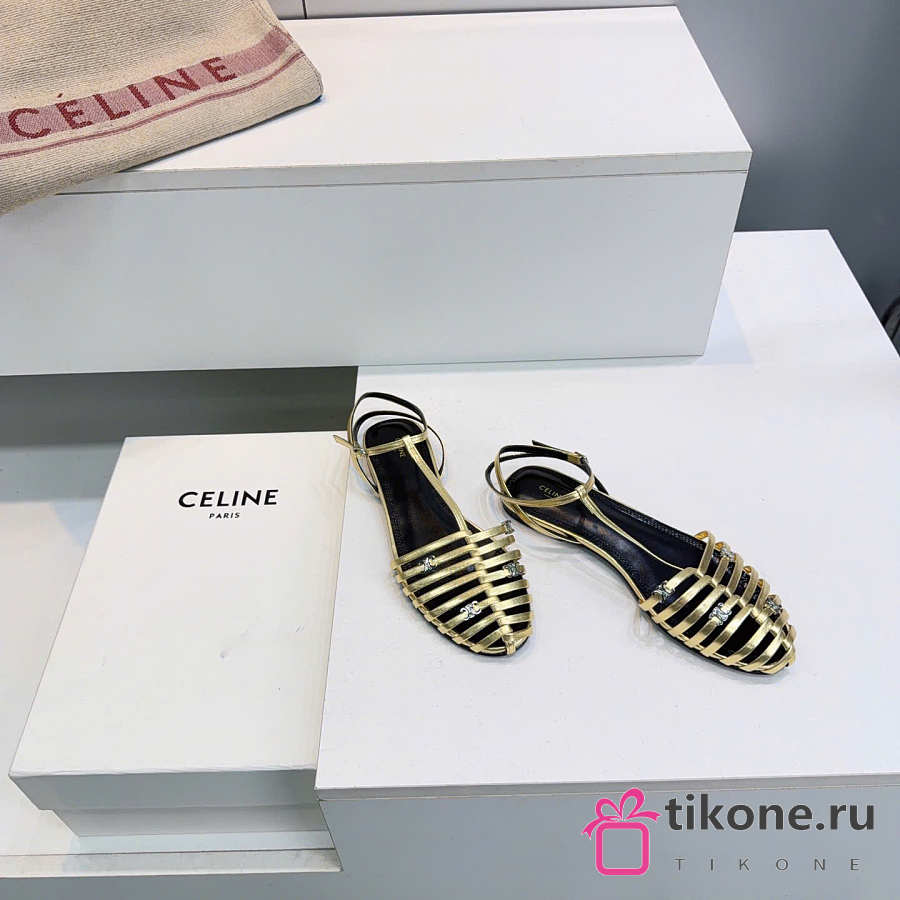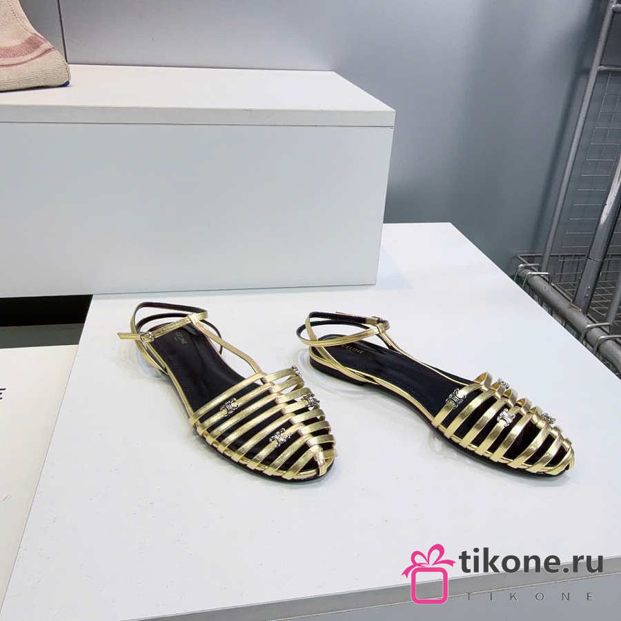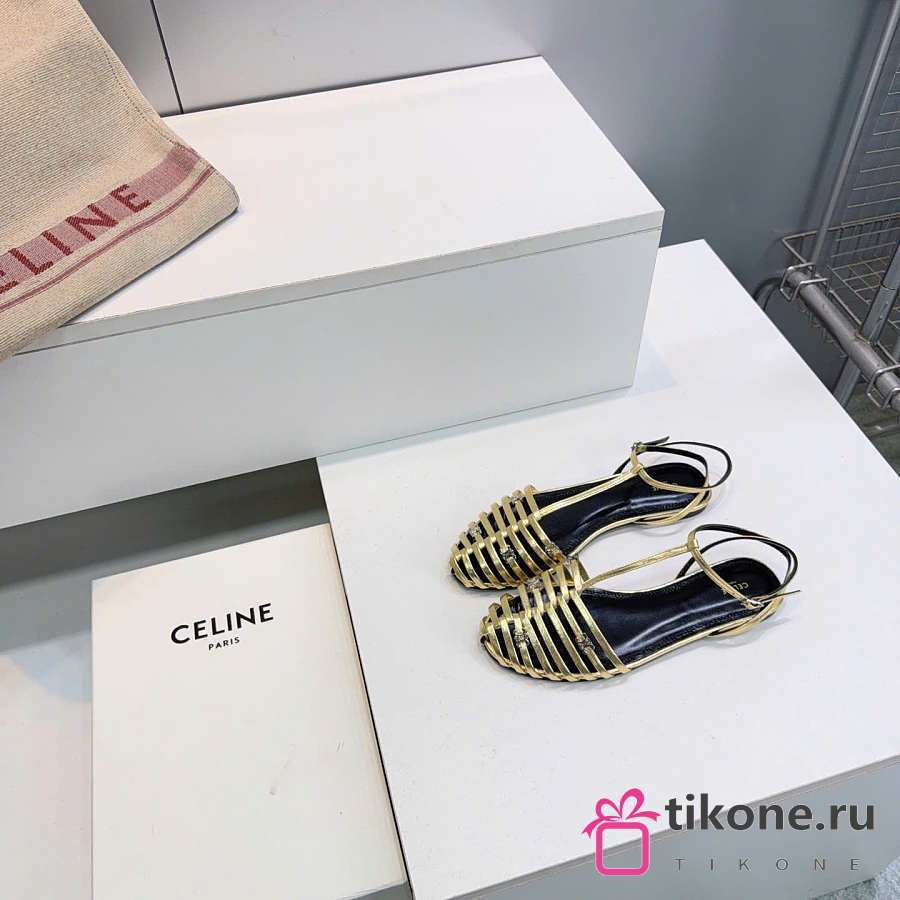 Celine Cage Flat Sandal In Laminated Lambskin Gold
