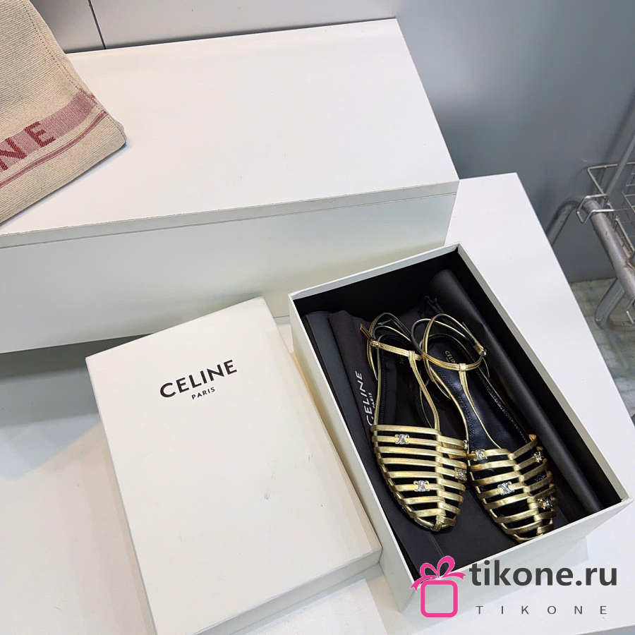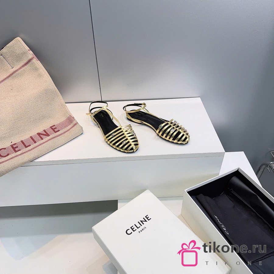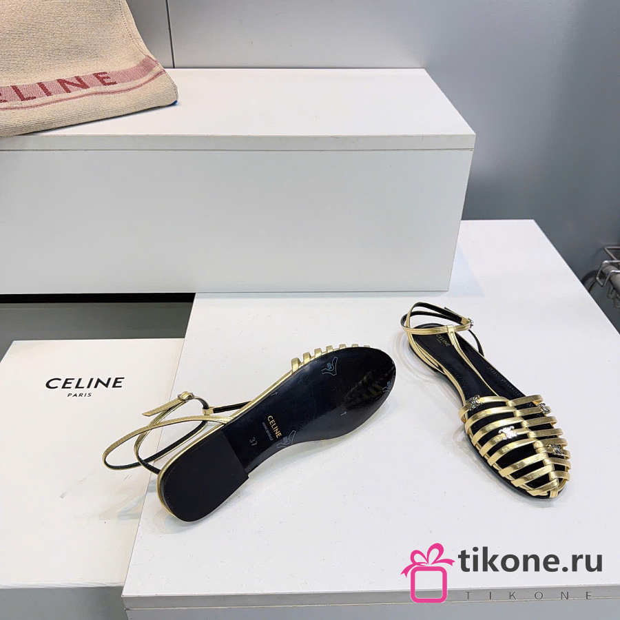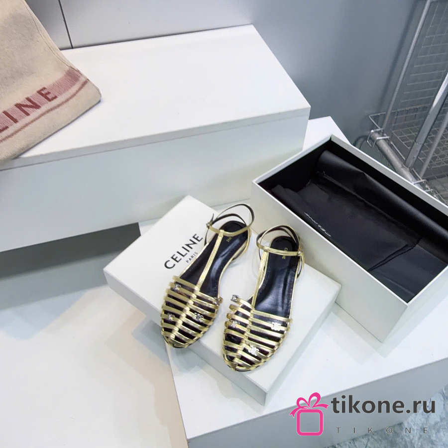 Celine Cage Flat Sandal In Laminated Lambskin Gold