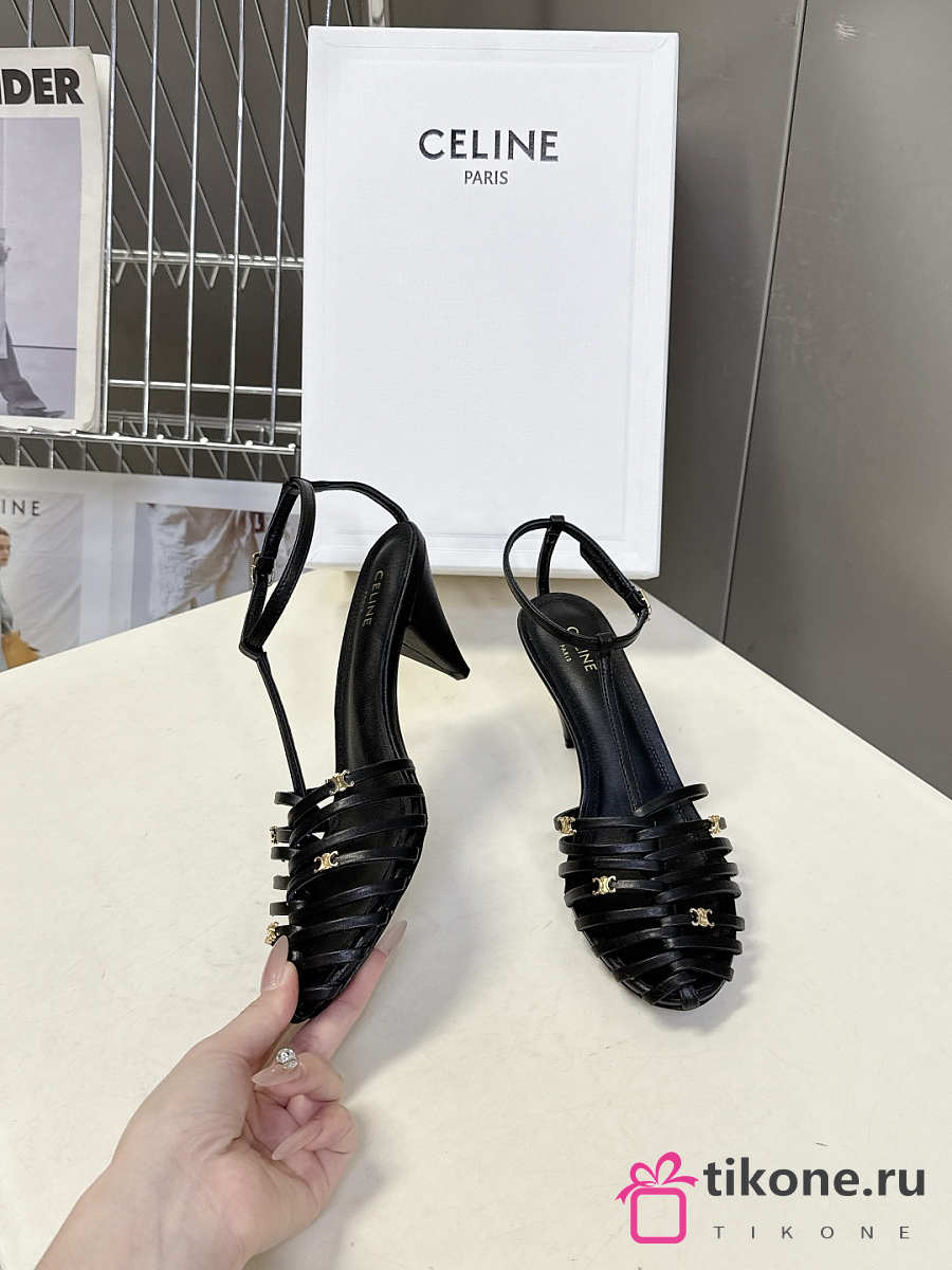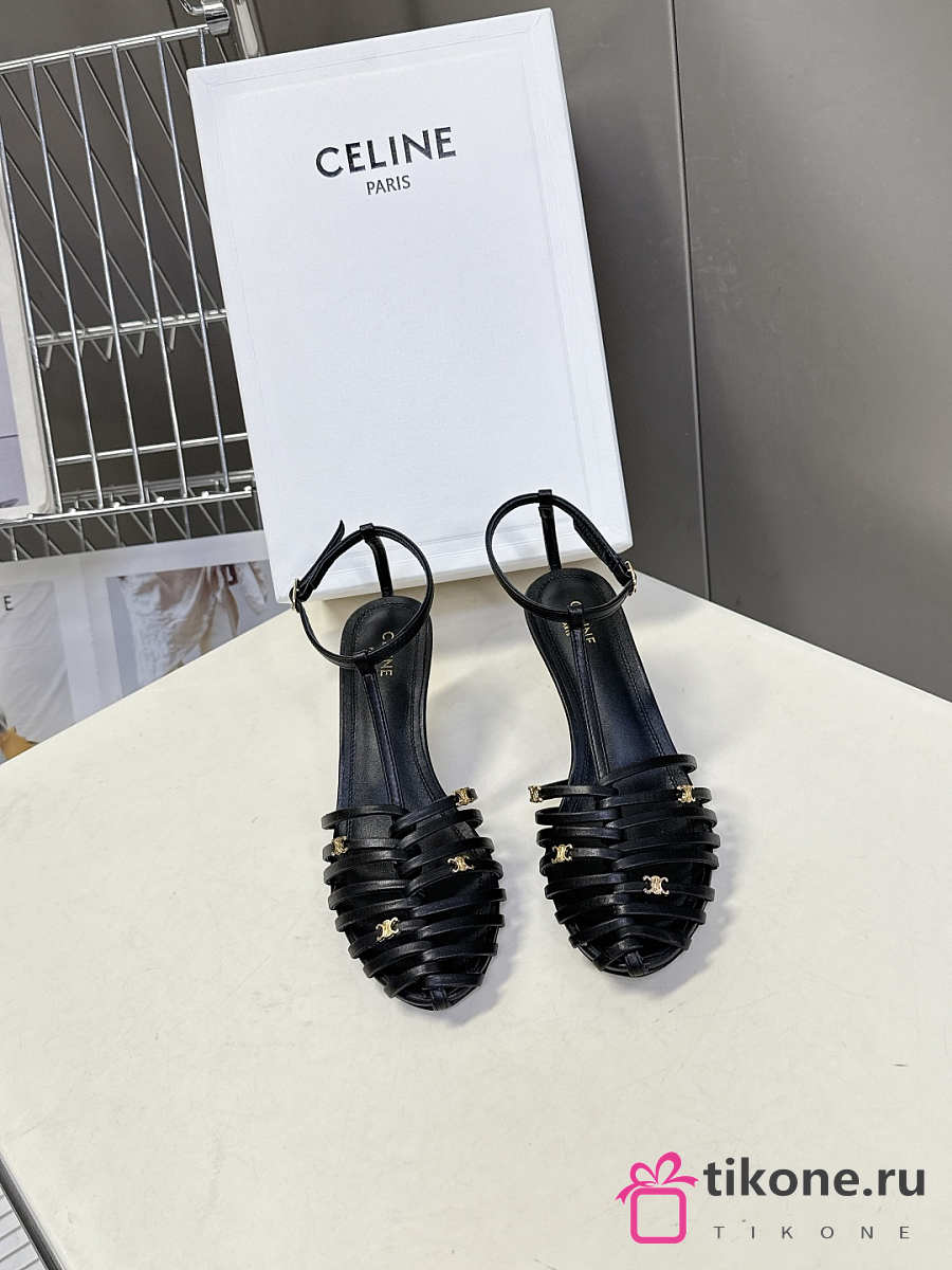 Celine Cage Heeled Sandal In Goatskin Black 6cm