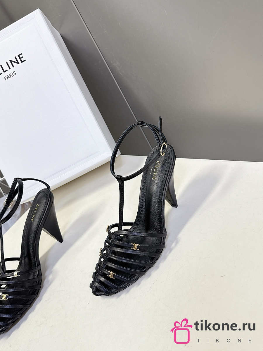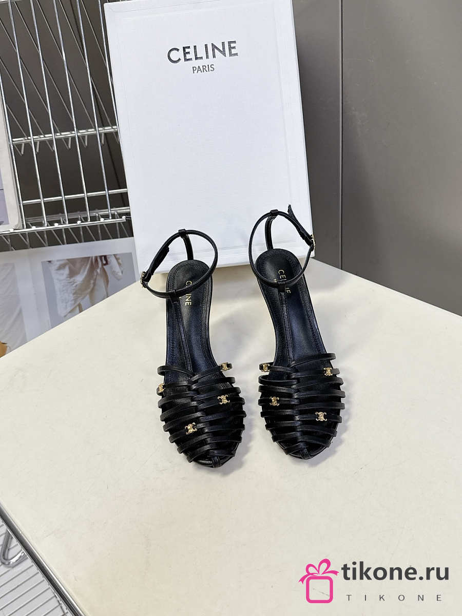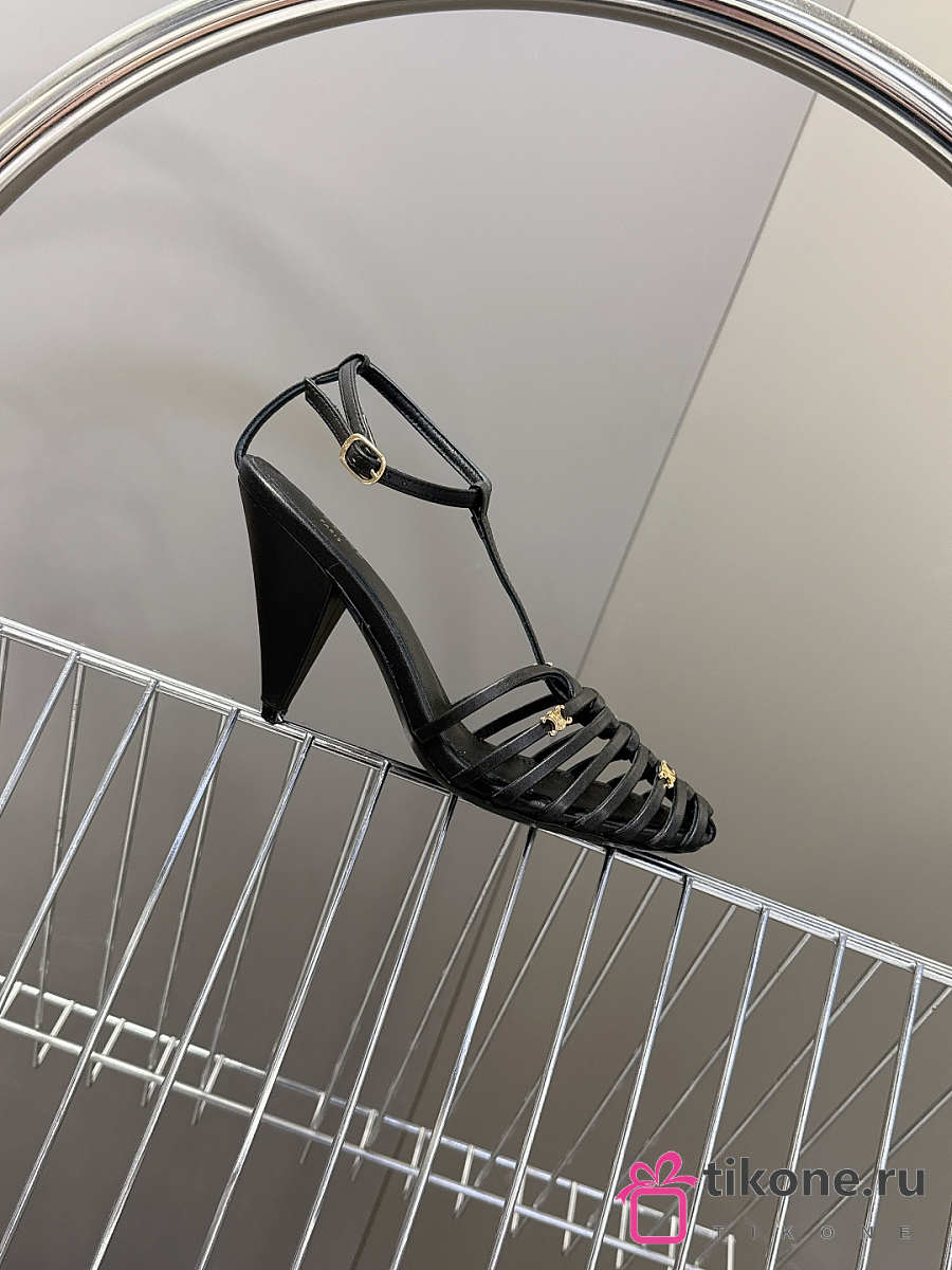 Celine Cage Strappy Sandal In Goatskin Black 9mm