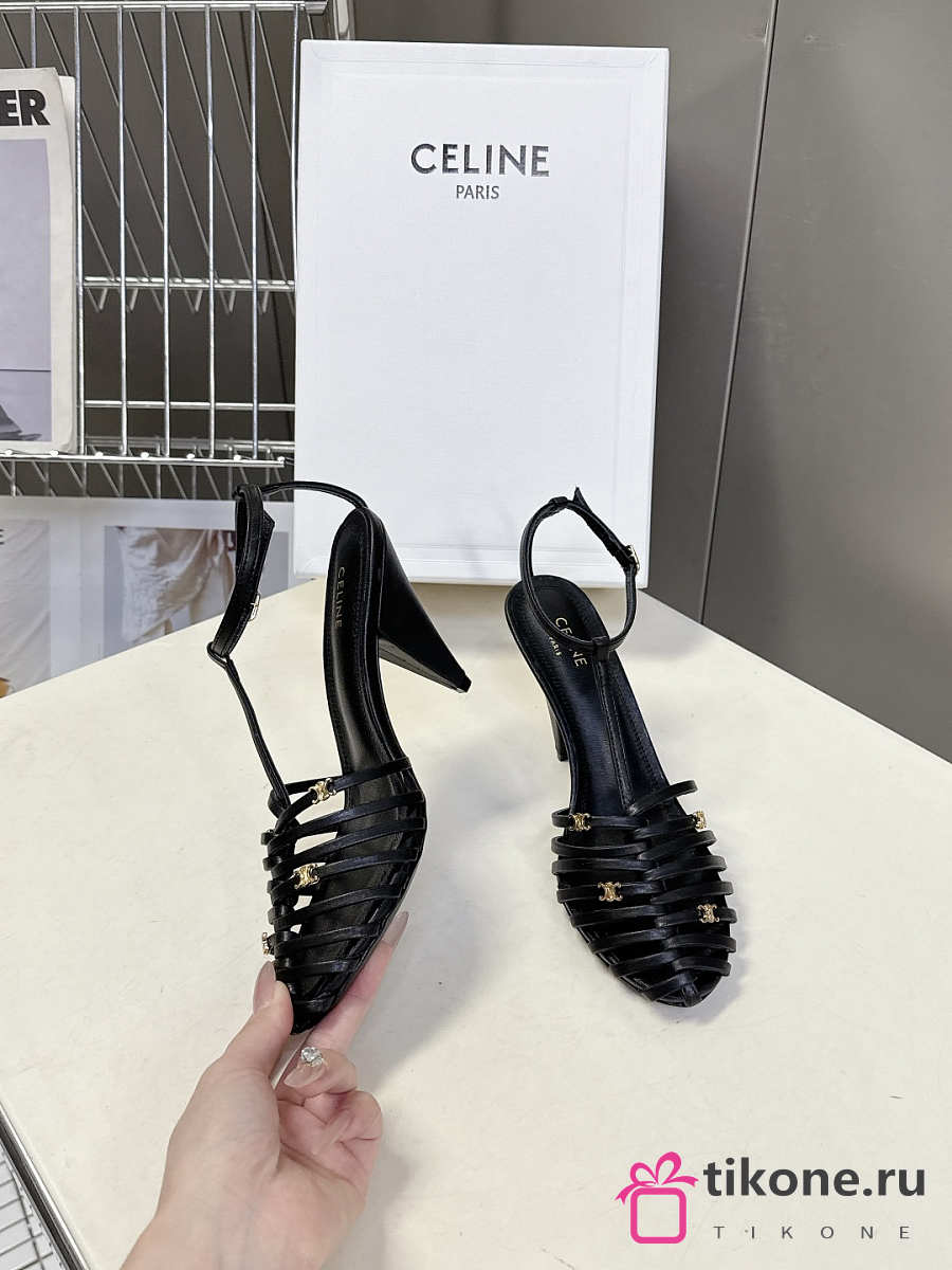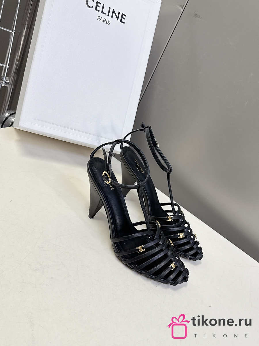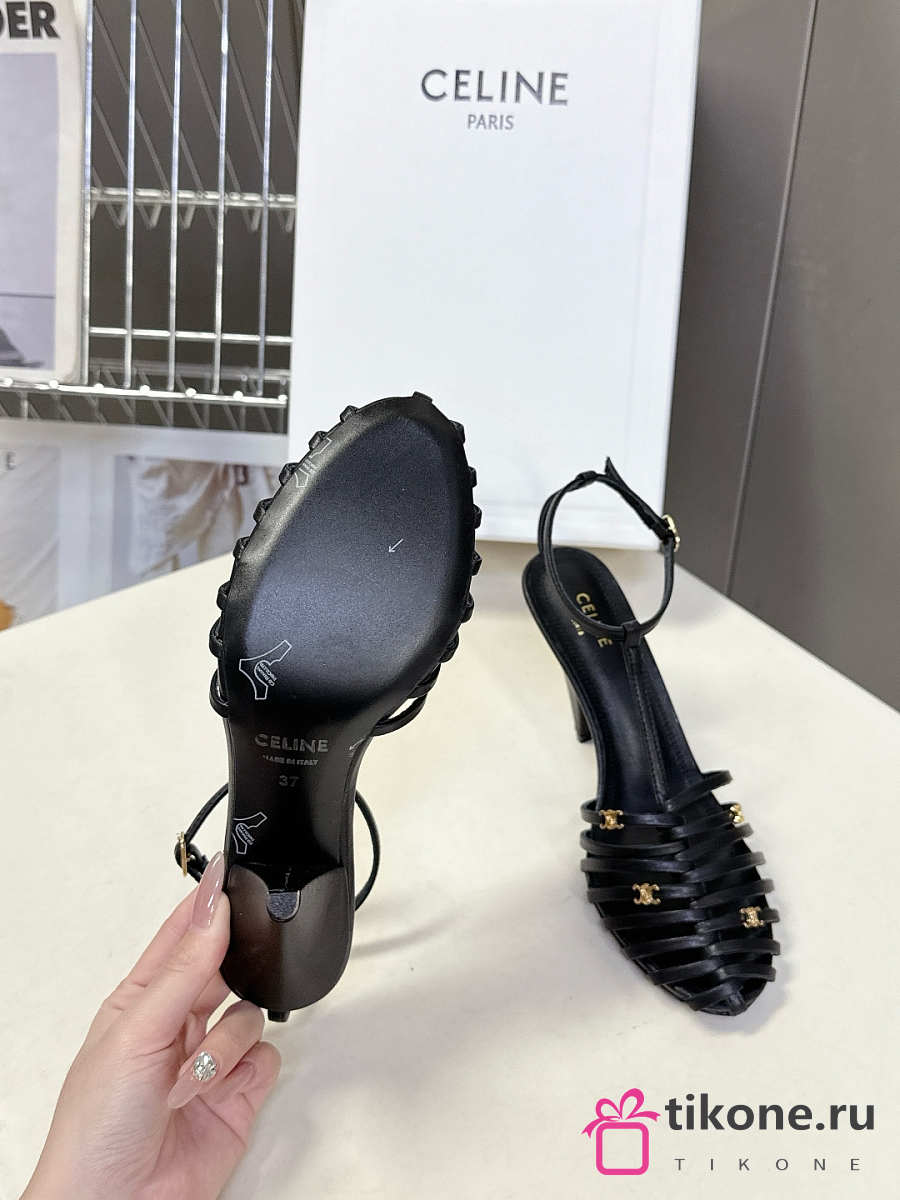 Celine Cage Strappy Sandal In Goatskin Black 9mm