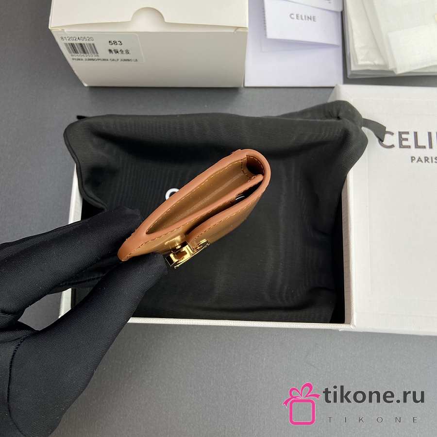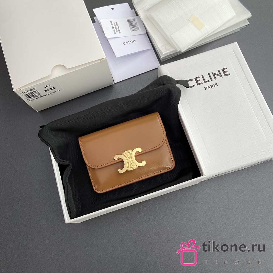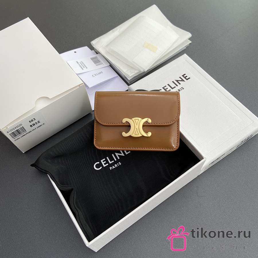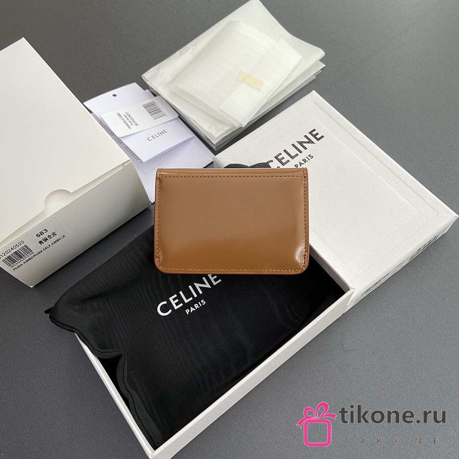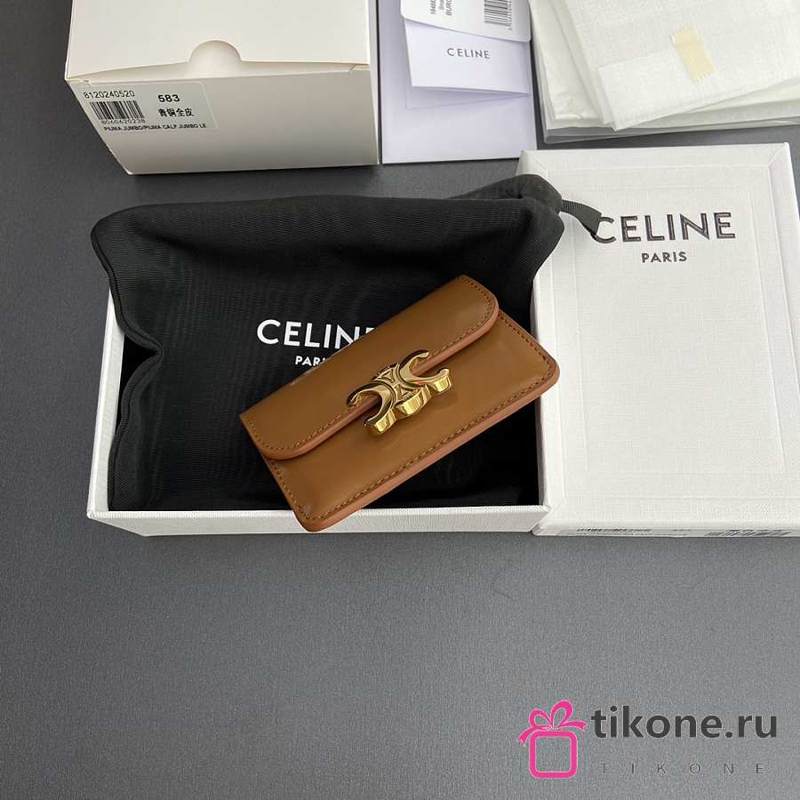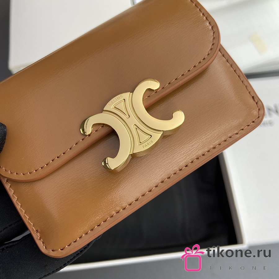 Celine Card Holder With Flap Triomphe In Shiny Calfskin Brown - 10x7.5x2cm