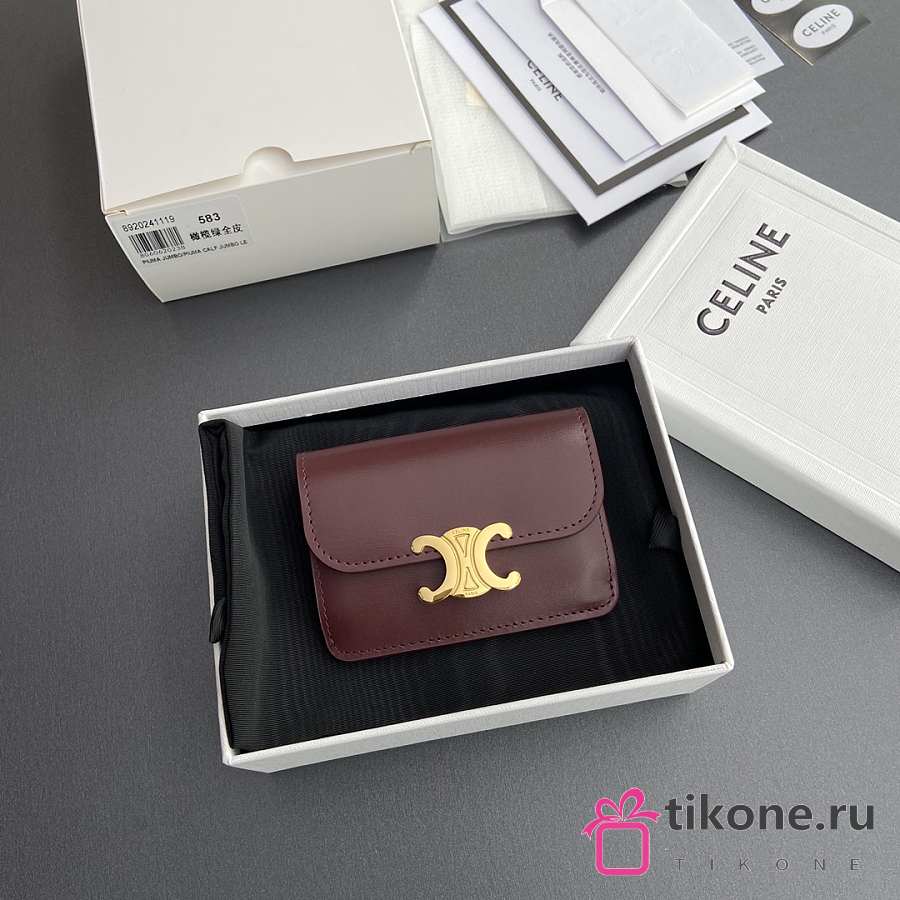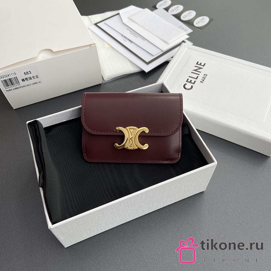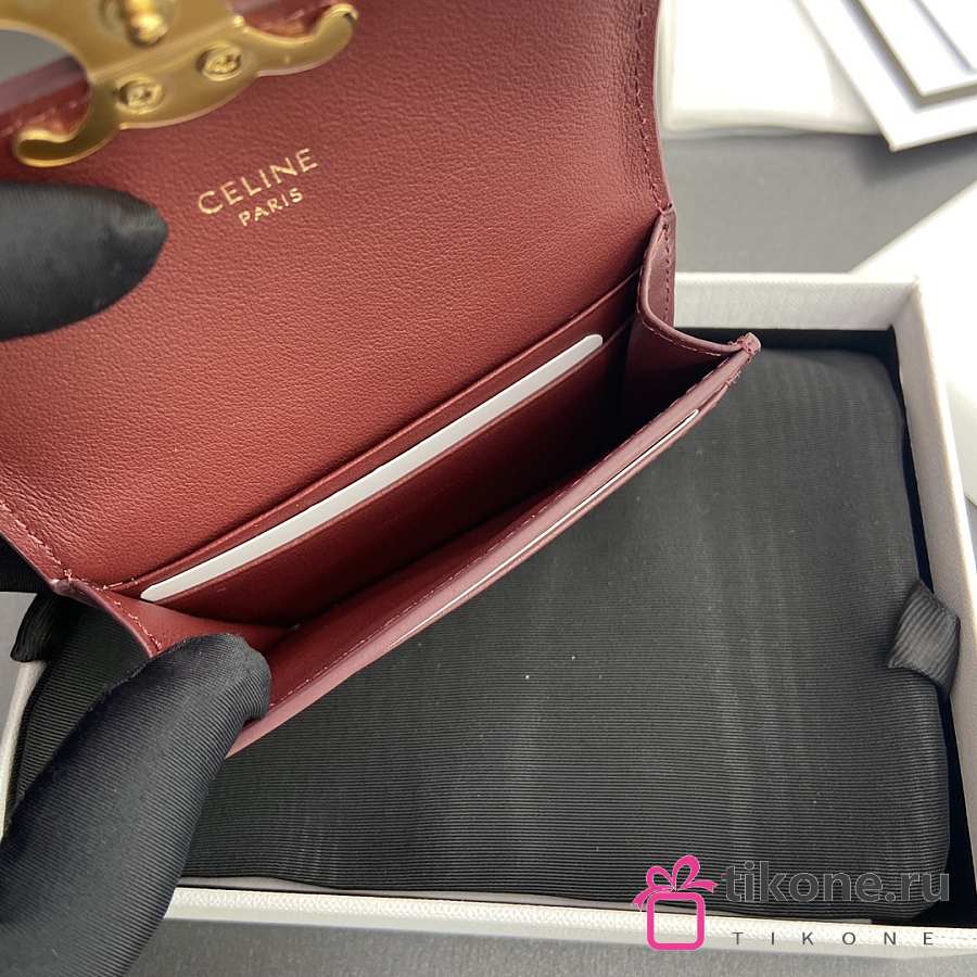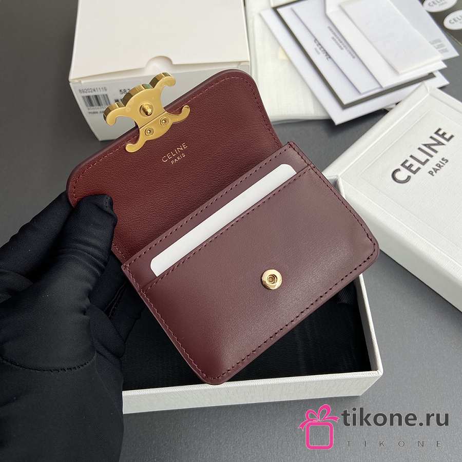 Celine Card Holder With Flap Triomphe In Shiny Calfskin Burgundy - 10x7.5x2cm