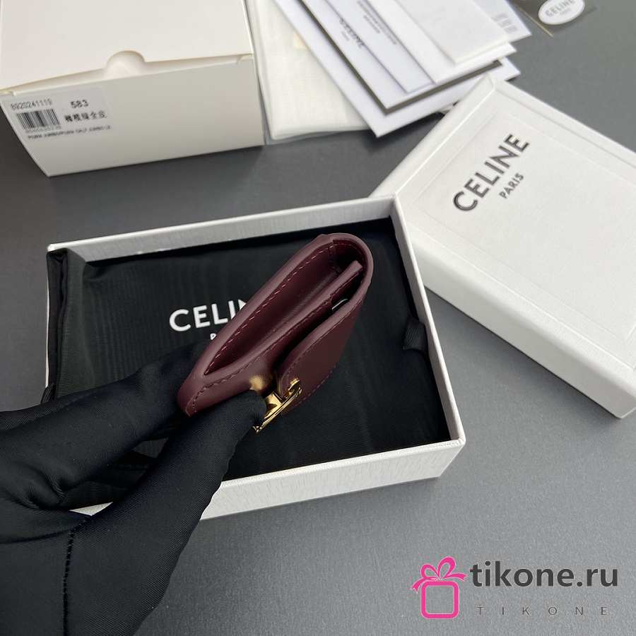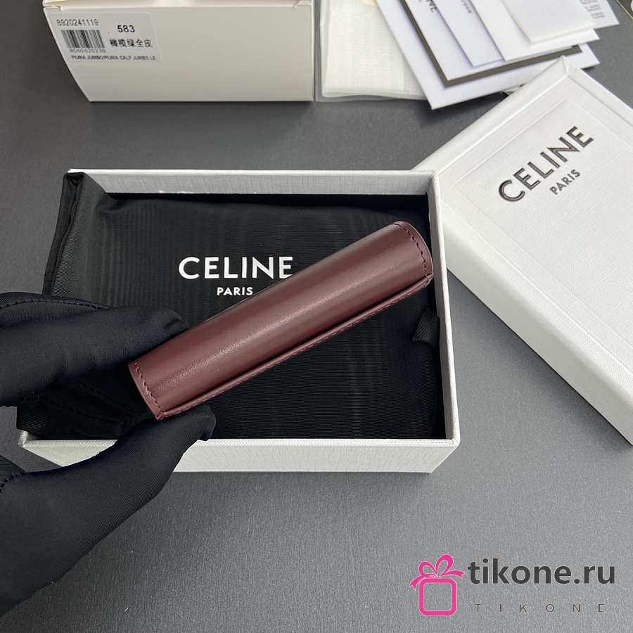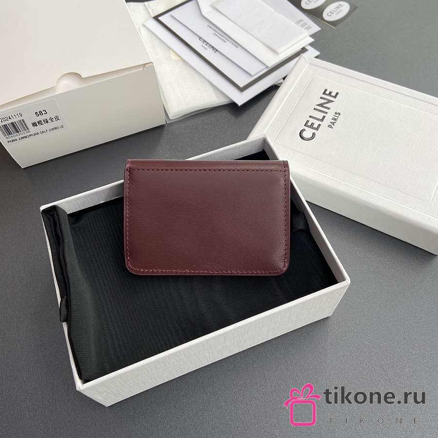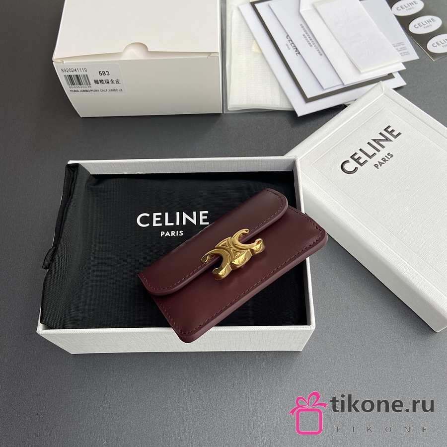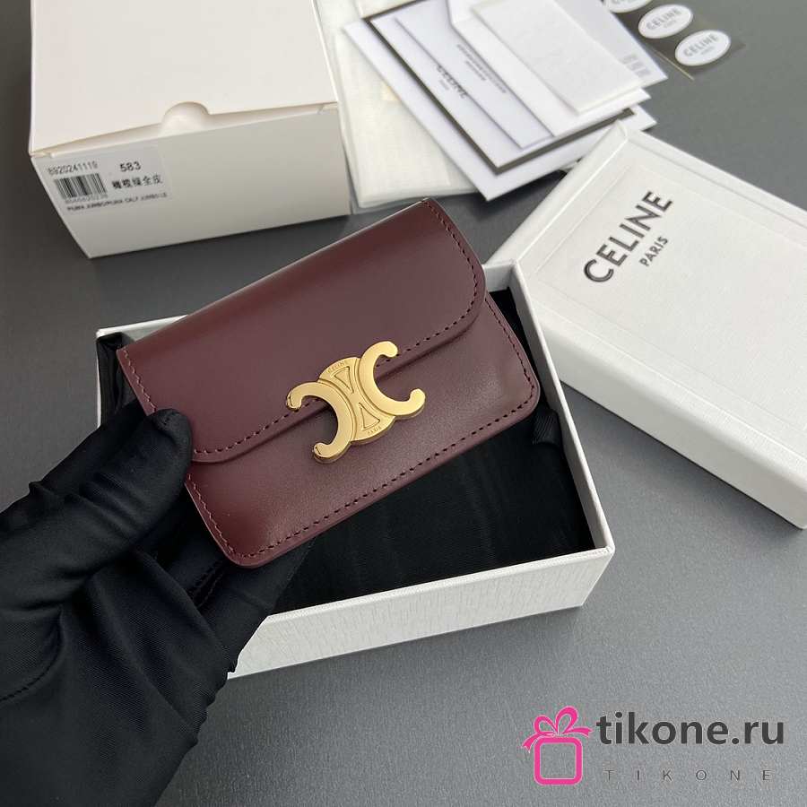 Celine Card Holder With Flap Triomphe In Shiny Calfskin Burgundy - 10x7.5x2cm