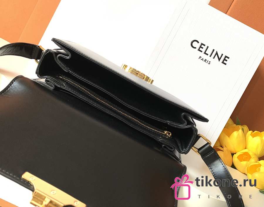 Celine Classique Triomphe Bag In Shiny Calfskin Black Gold - 22x15.5x6cm