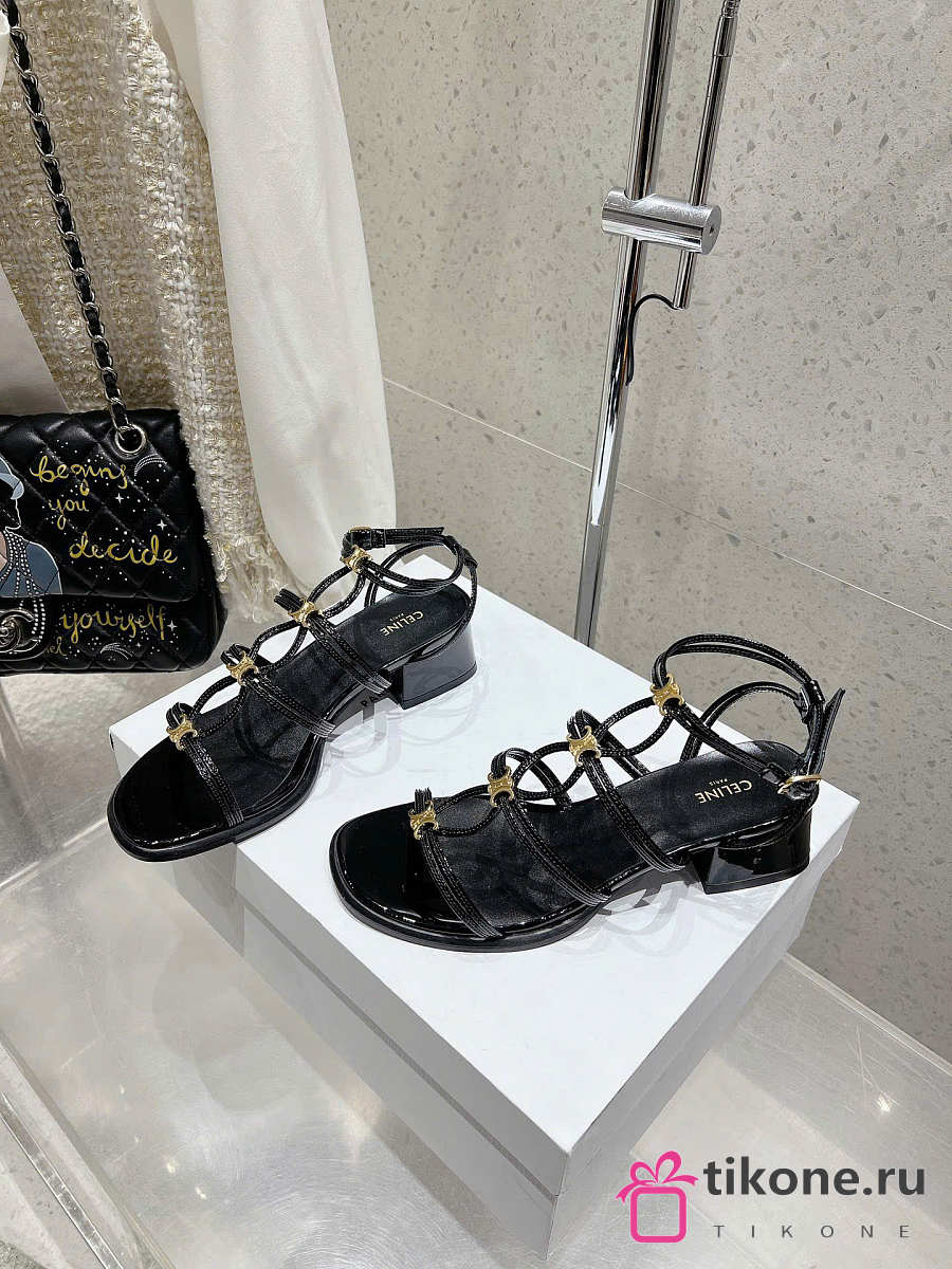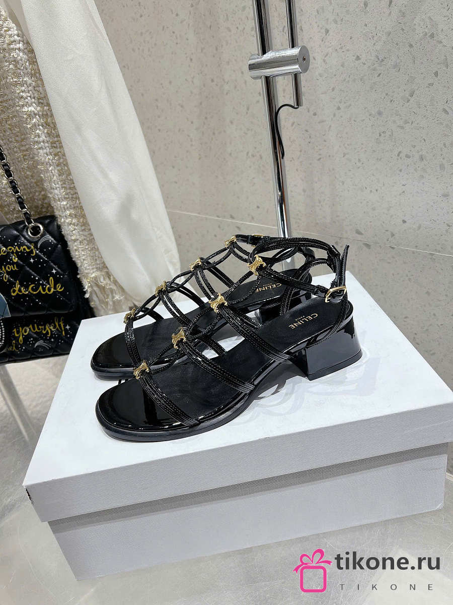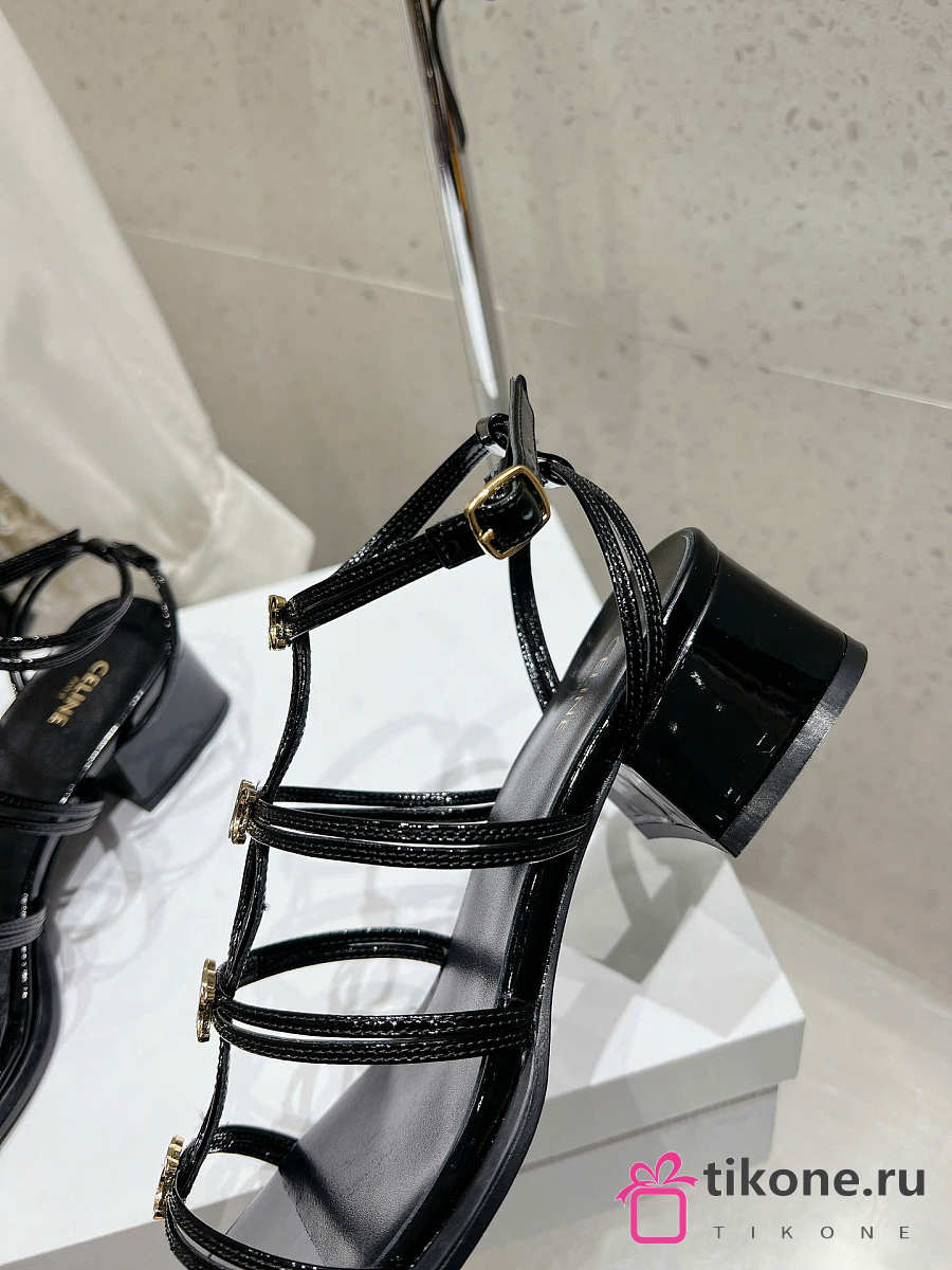 Celine Clemence Heeled Sandal In Glossy Calfskin Black 40mm