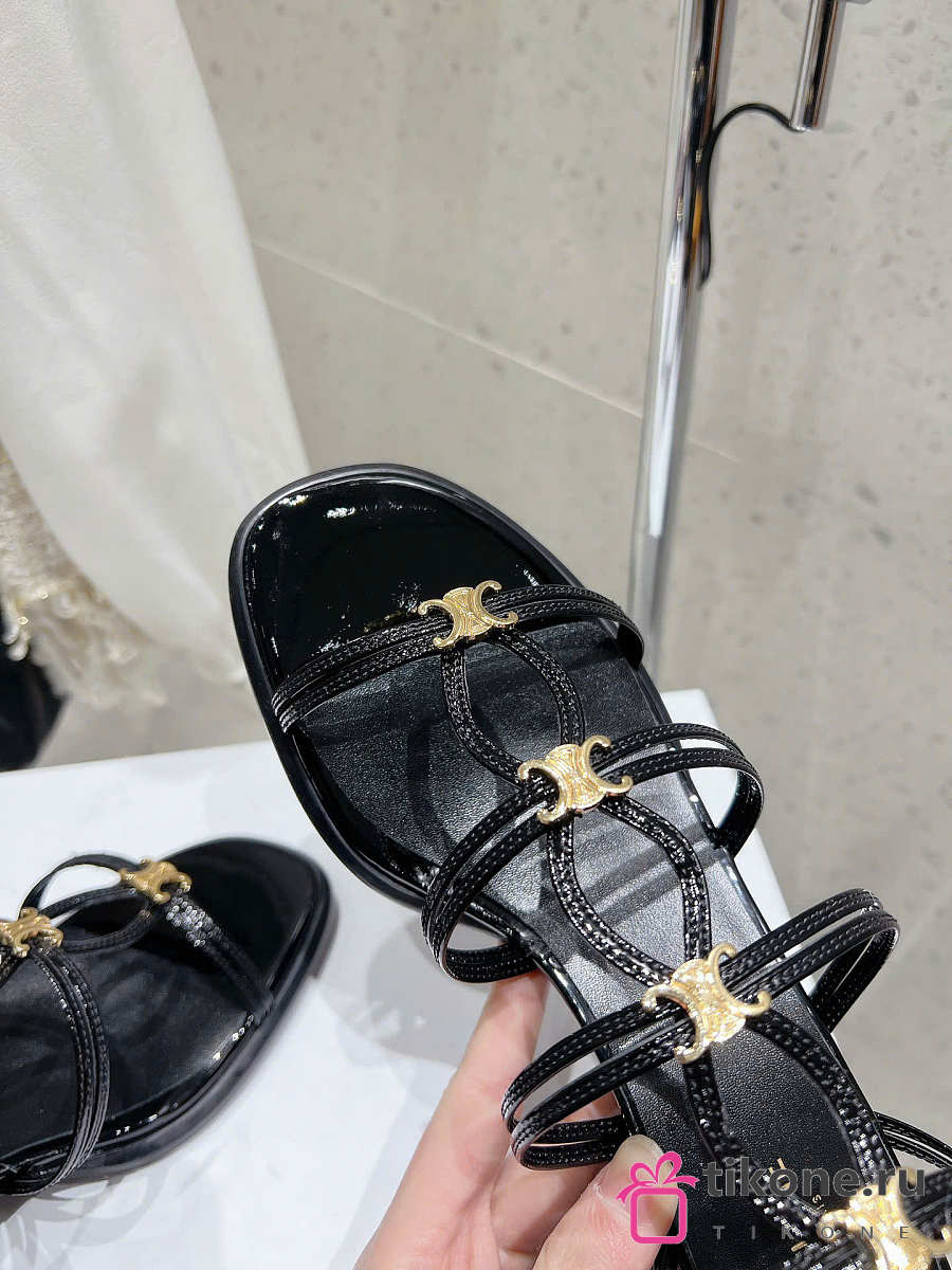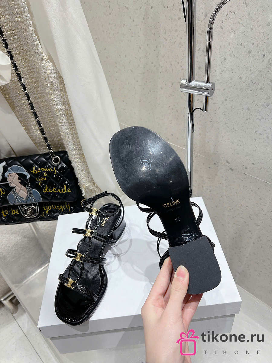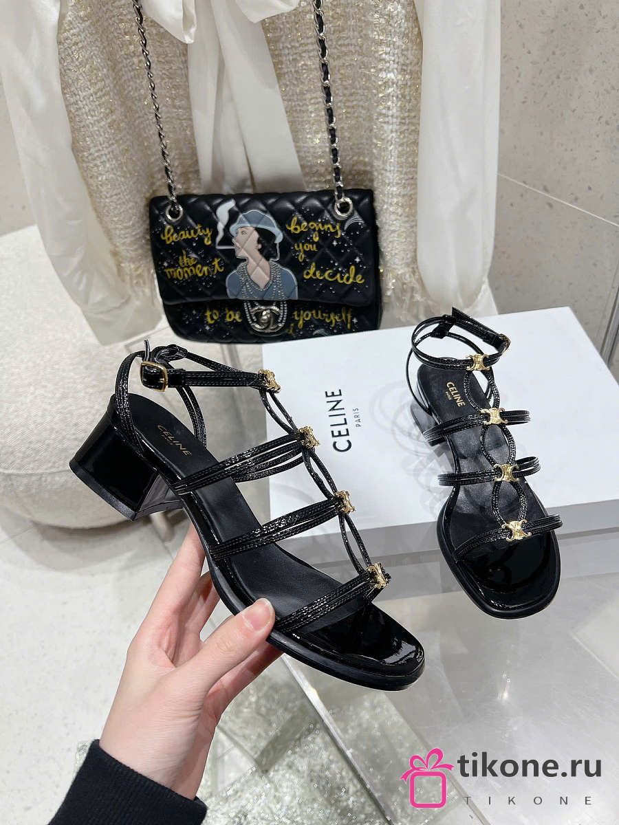 Celine Clemence Heeled Sandal In Glossy Calfskin Black 40mm