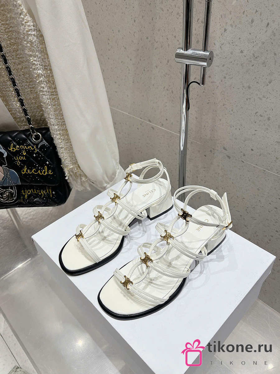 Celine Clemence Heeled Sandal In Lamskin Milk 40mm
