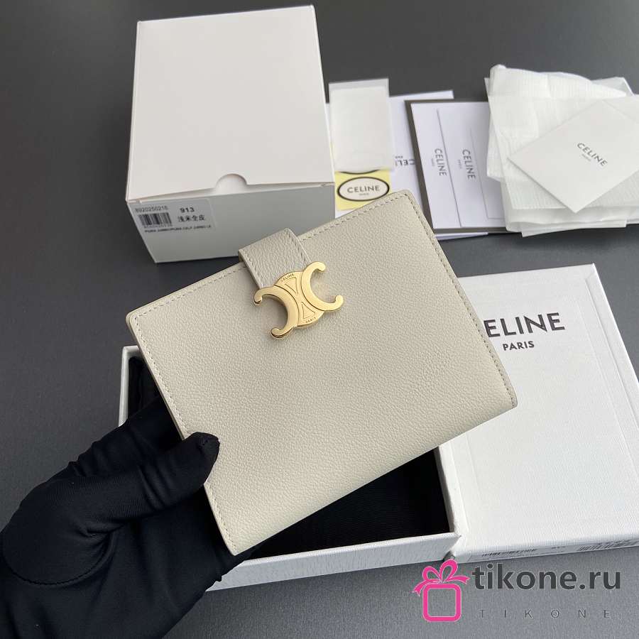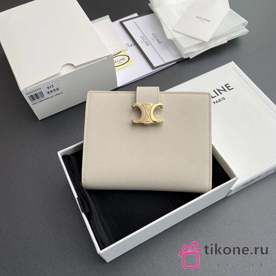 Celine Fine Strap Wallet Nino In Supple Grained Calfskin Beige - 10.5x8x2cm