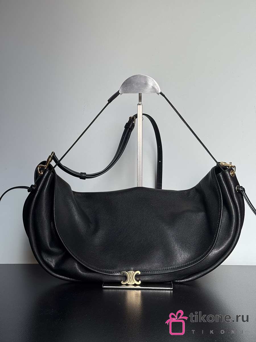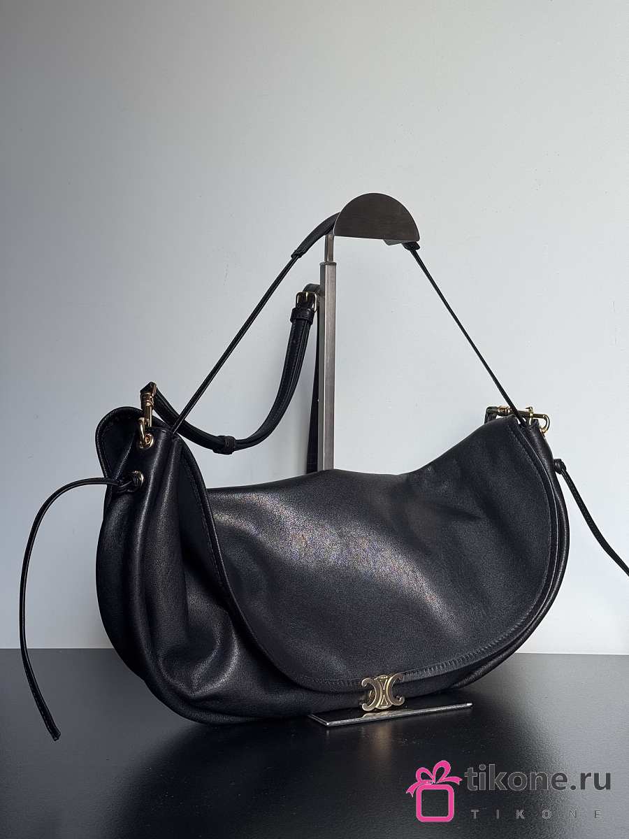 Celine Halfmoon Soft Triomphe Bag In Supple Shiny Lambskin Black - 46x19x10cm