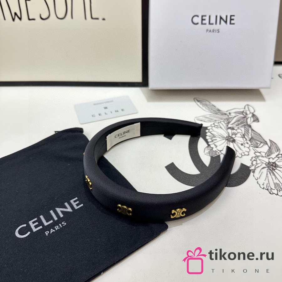 Celine Headband In Polyester And Brass With Gold Finish
