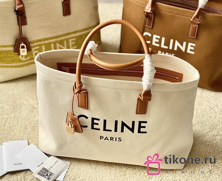 Celine Horizontal Cabas Tote Canvas with Leather Natural/Tan - 44x32x16cm