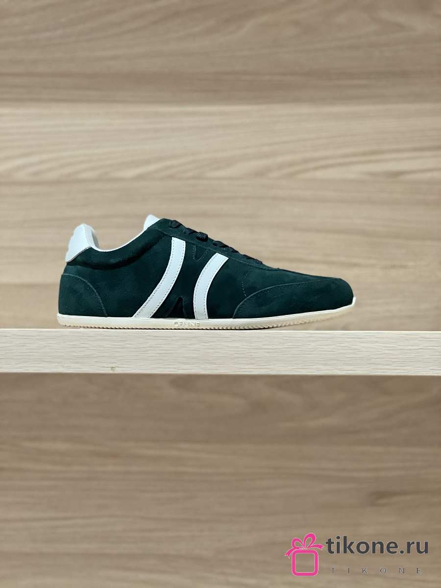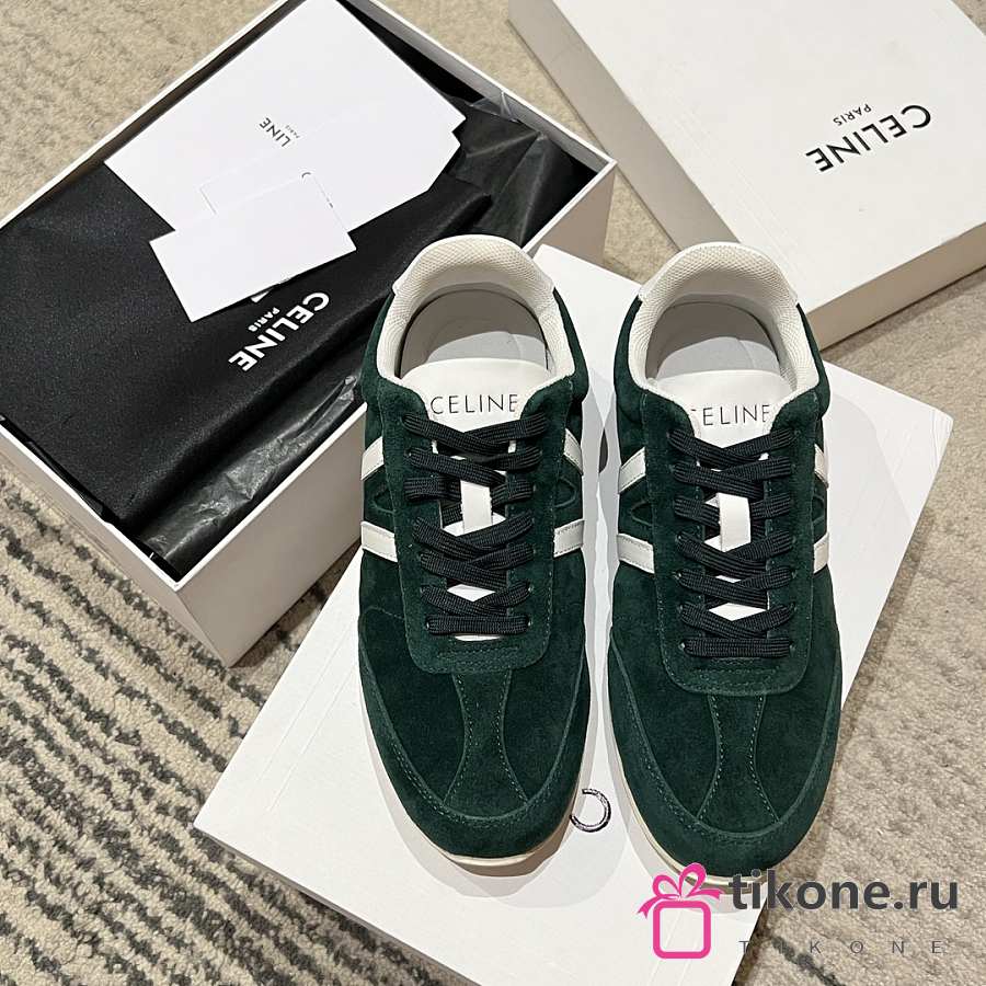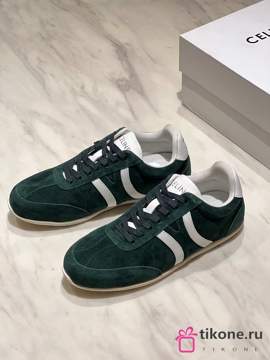 Celine Jogger Low Lace Up Sneaker In Calfskin & Suede Green