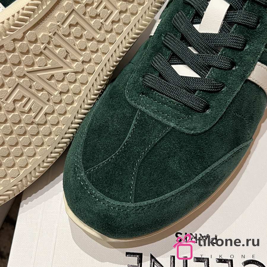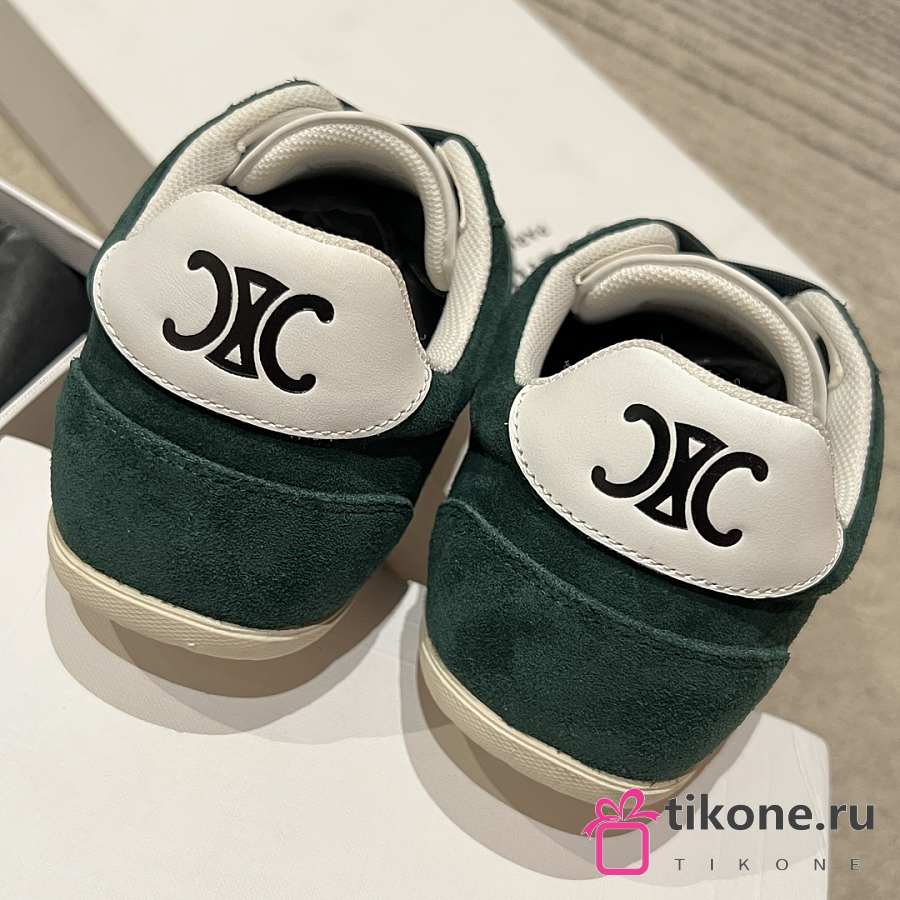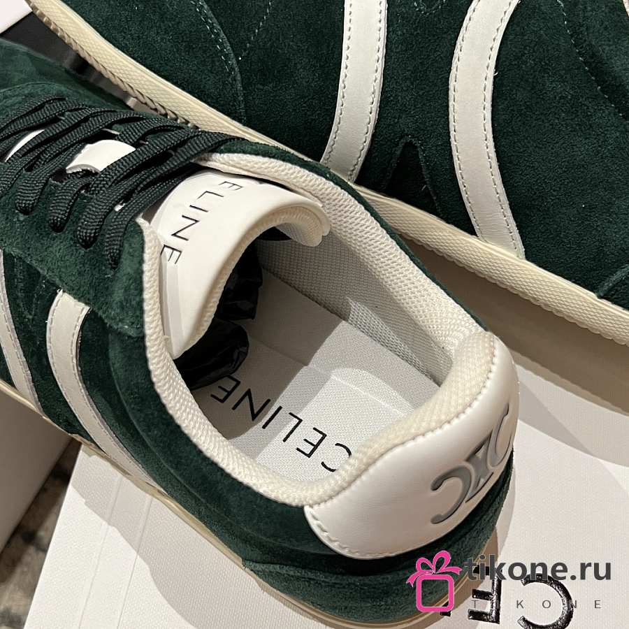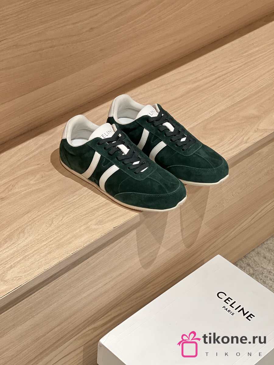 Celine Jogger Low Lace Up Sneaker In Calfskin & Suede Green