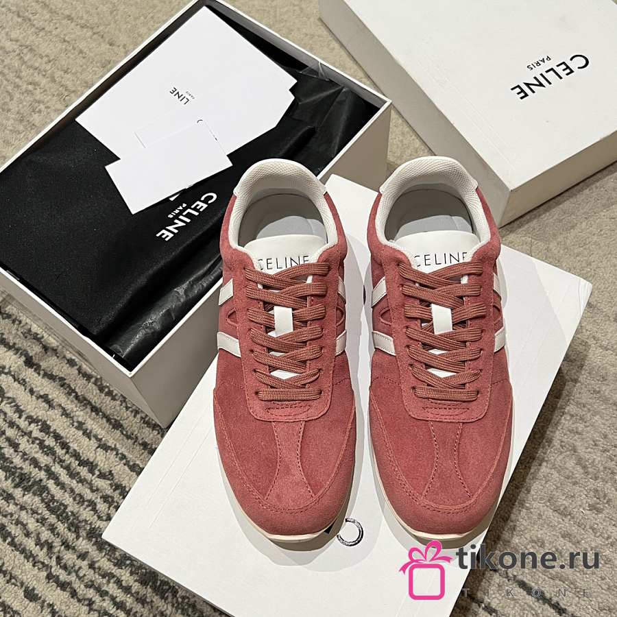 Celine Jogger Low Lace Up Sneaker In Calfskin & Suede Pink