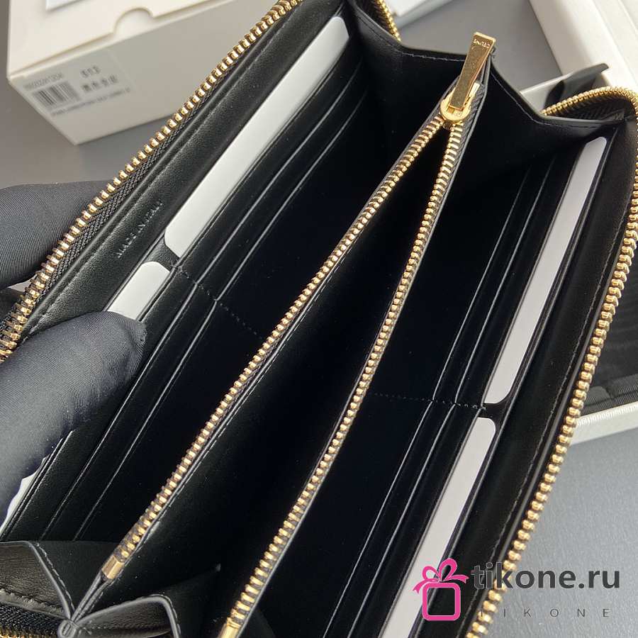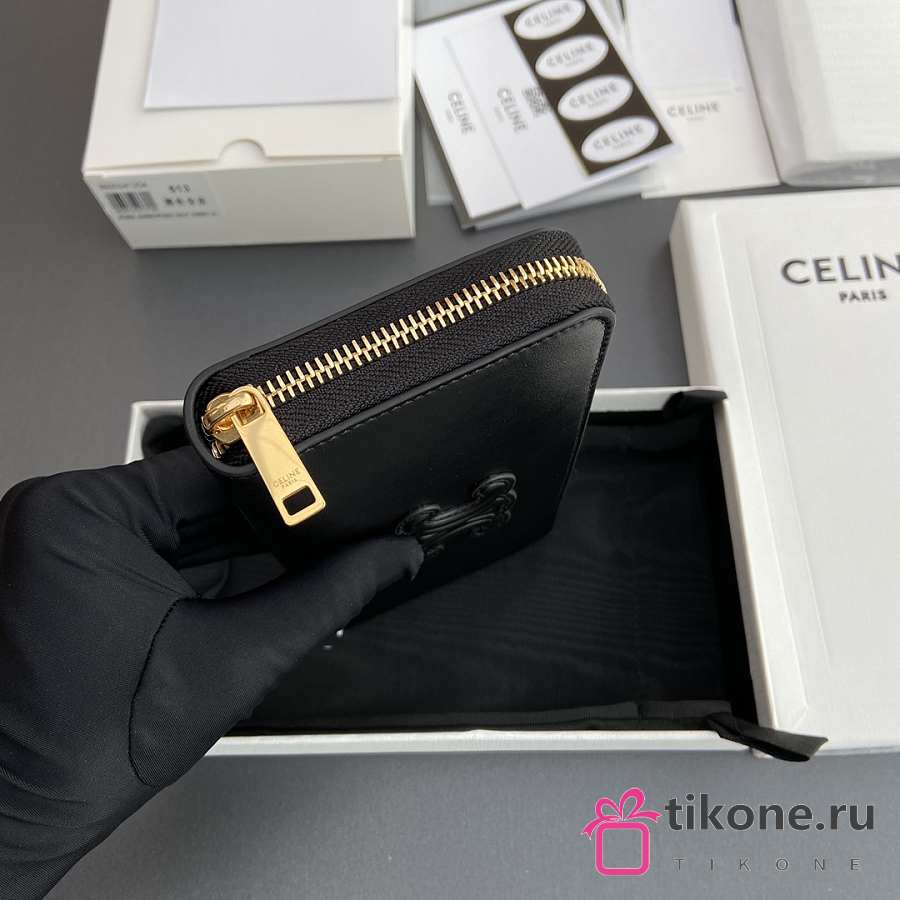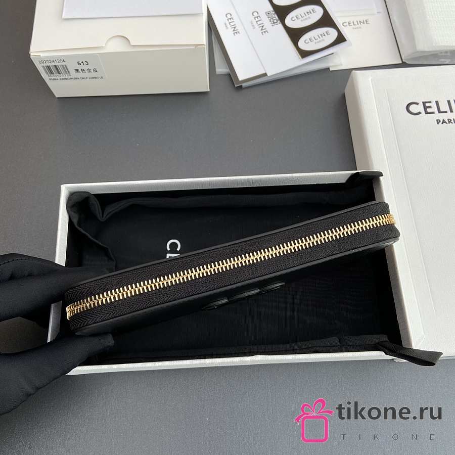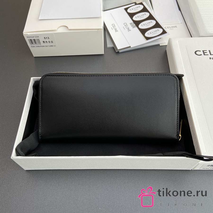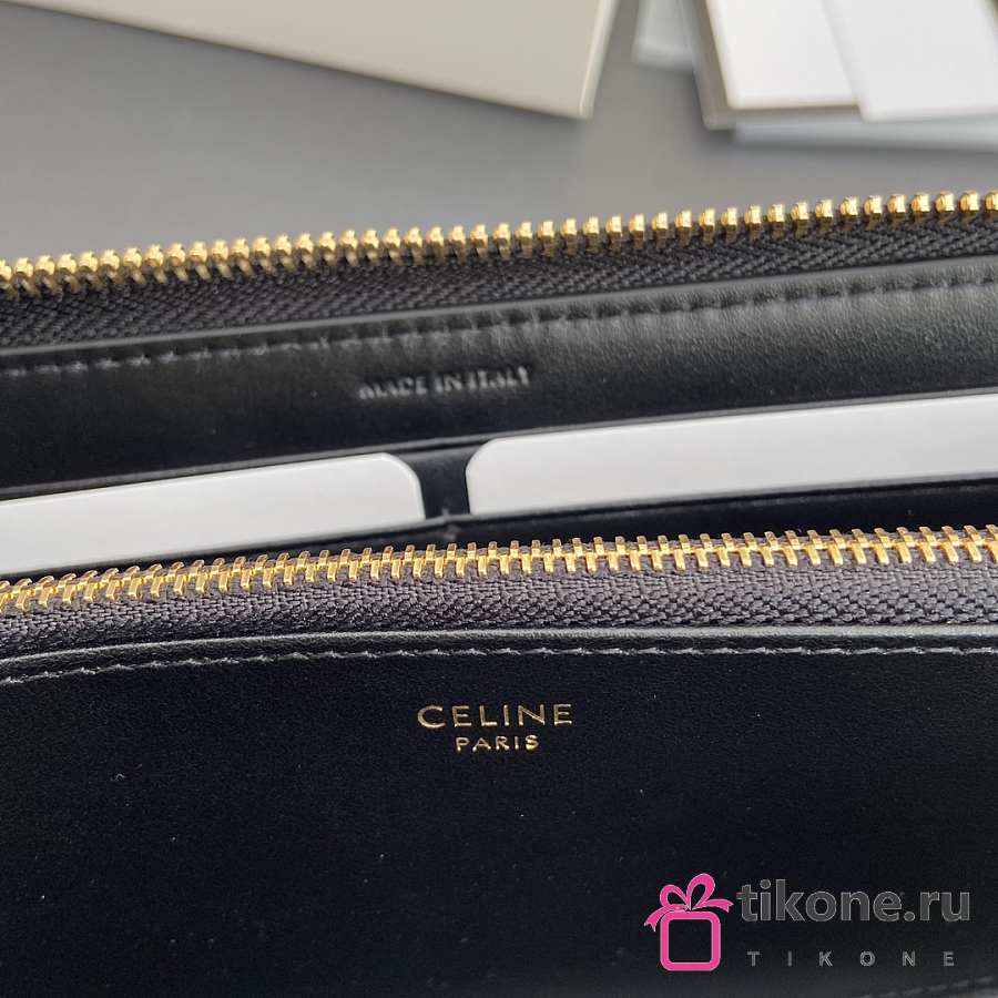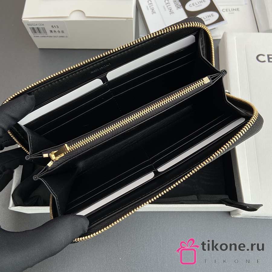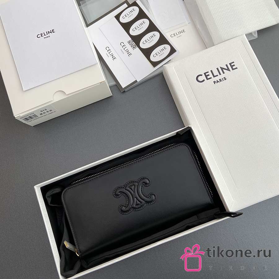 Celine Large Zipped Wallet Cuir Triomphe In Smooth Calfskin Black - 19×10×2cm