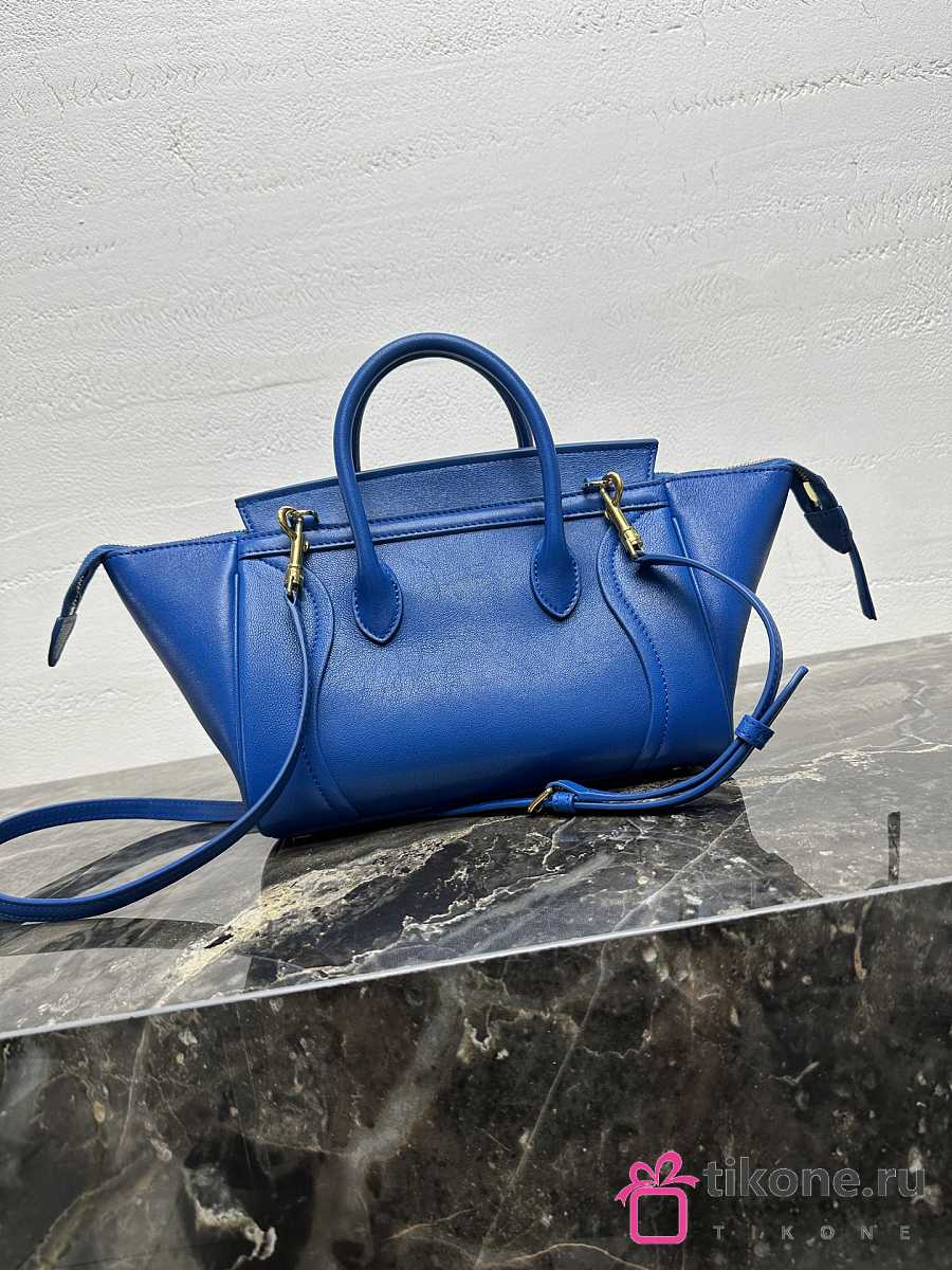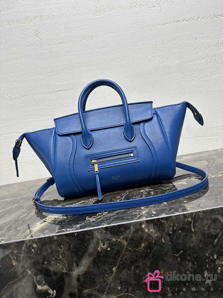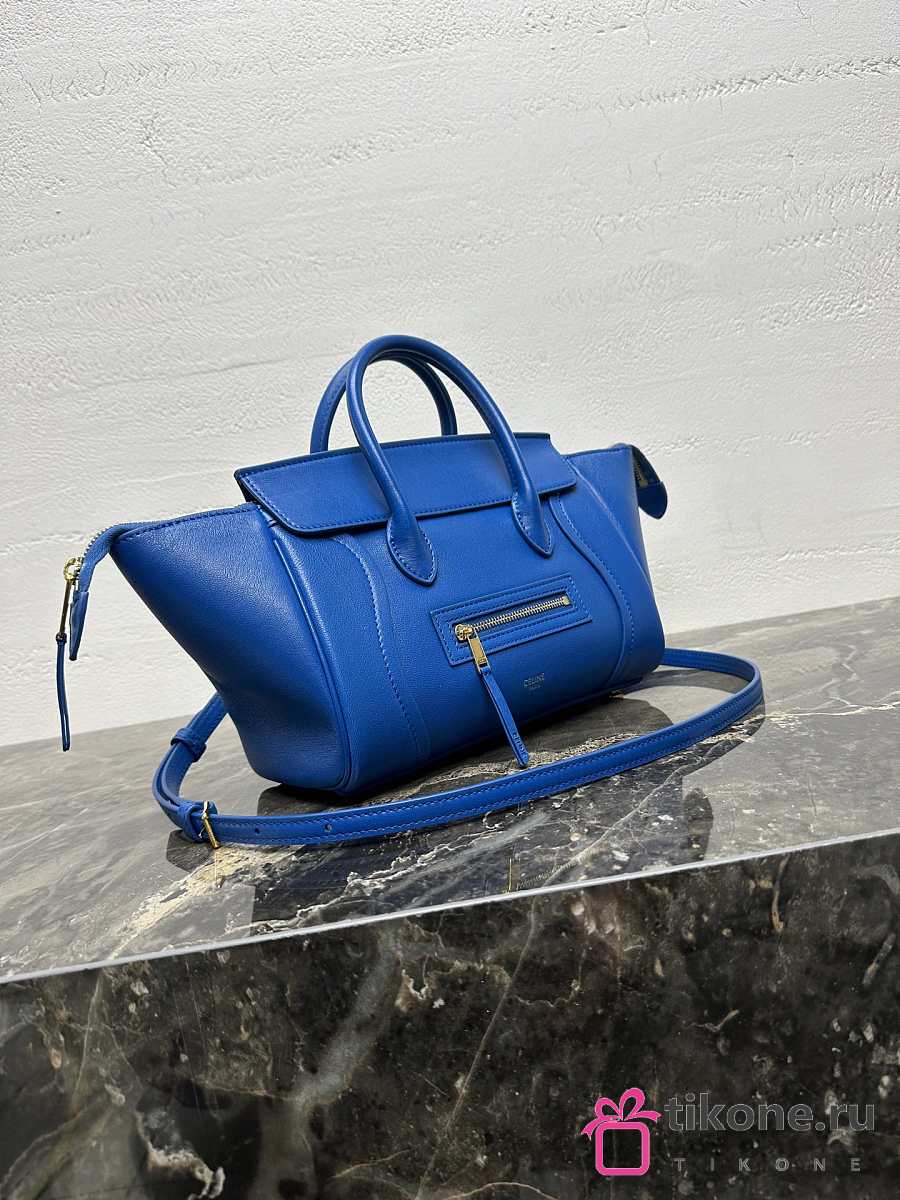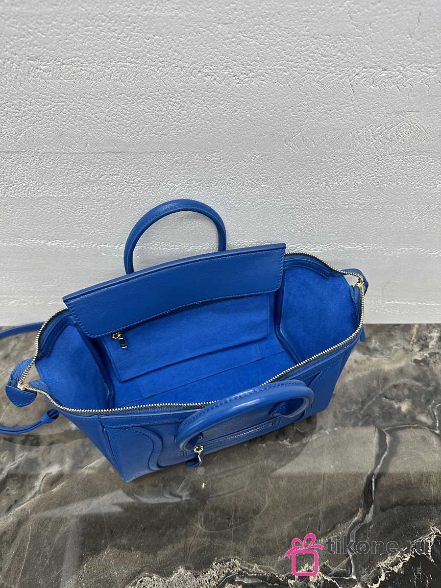 Celine Little Luggage In Supple Shiny Lambskin Blue - 24x15.5x11cm