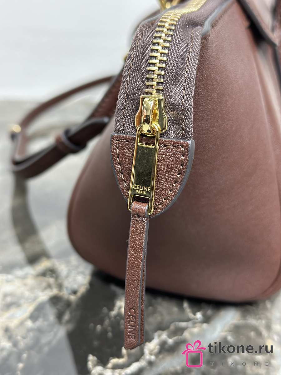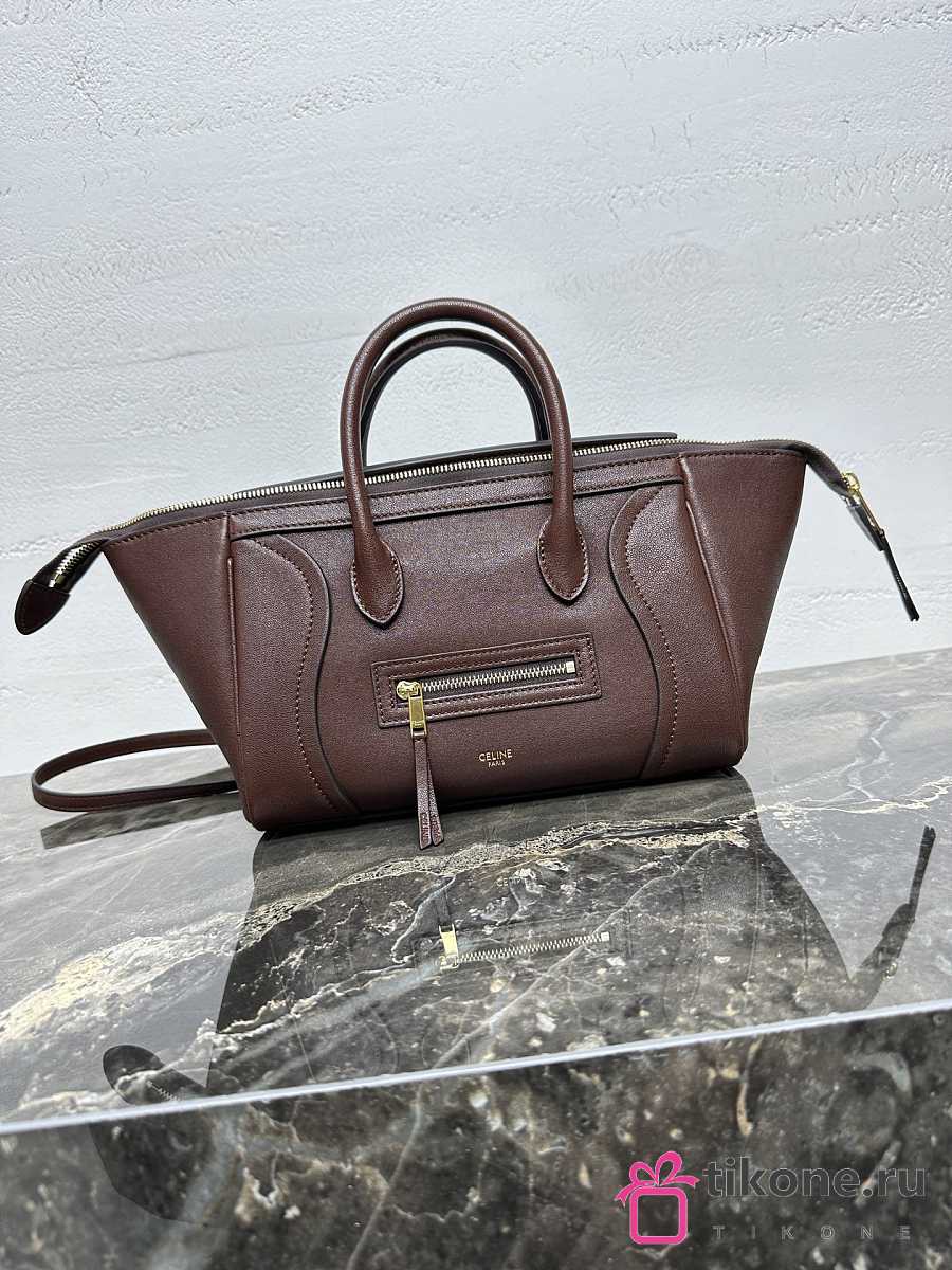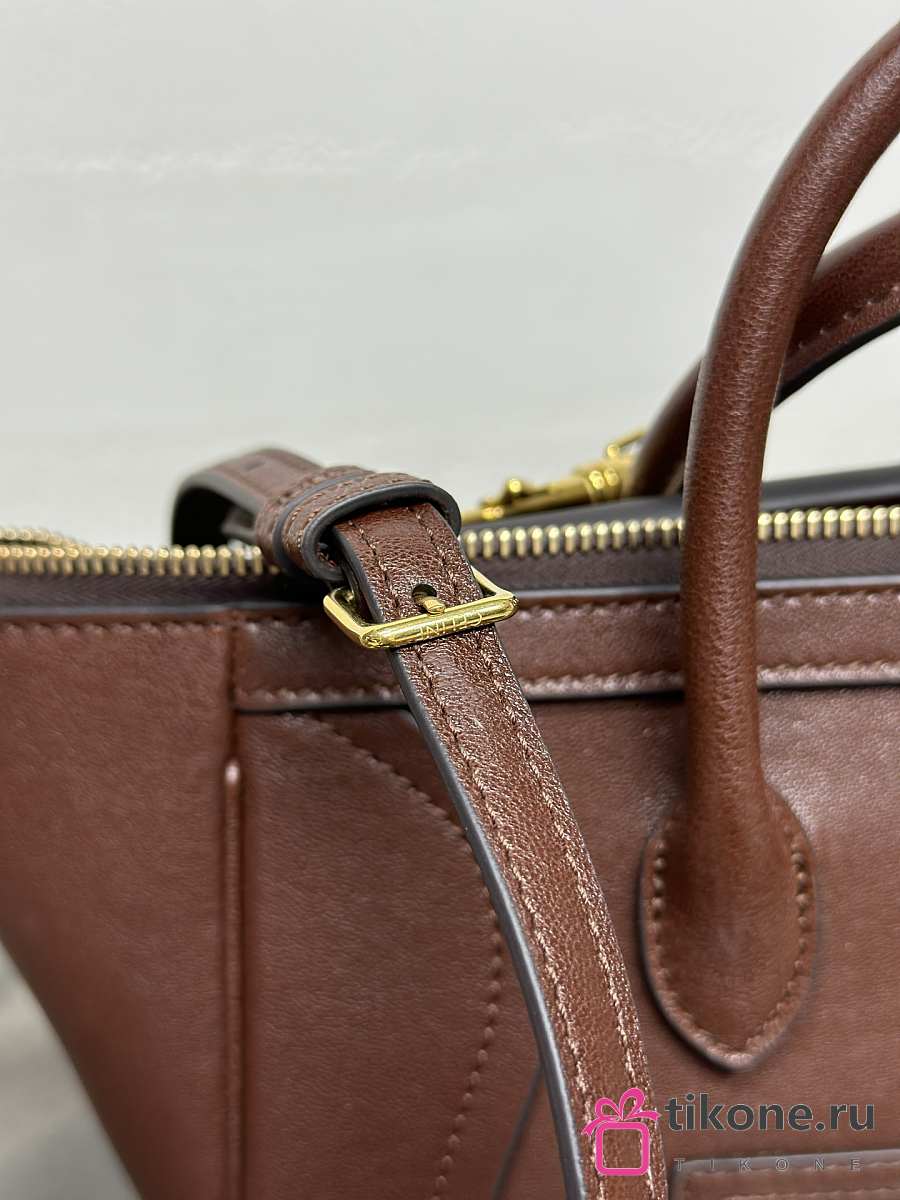 Celine Little Luggage In Supple Shiny Lambskin Deep Brown - 24x15.5x11cm