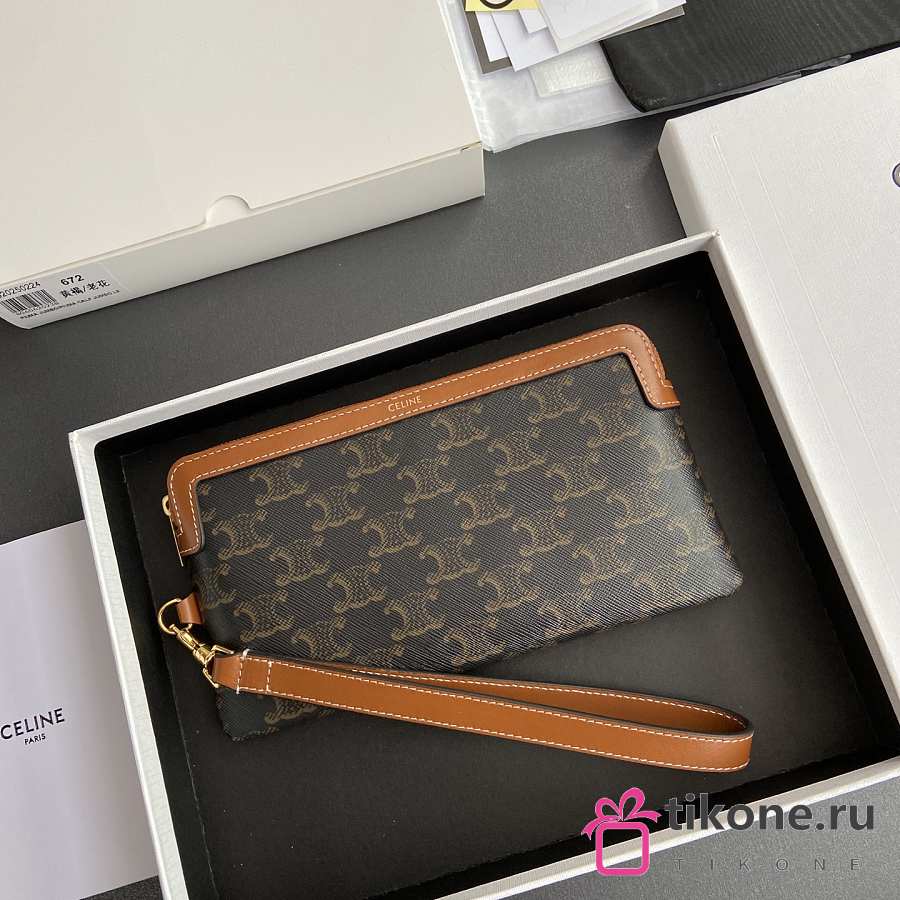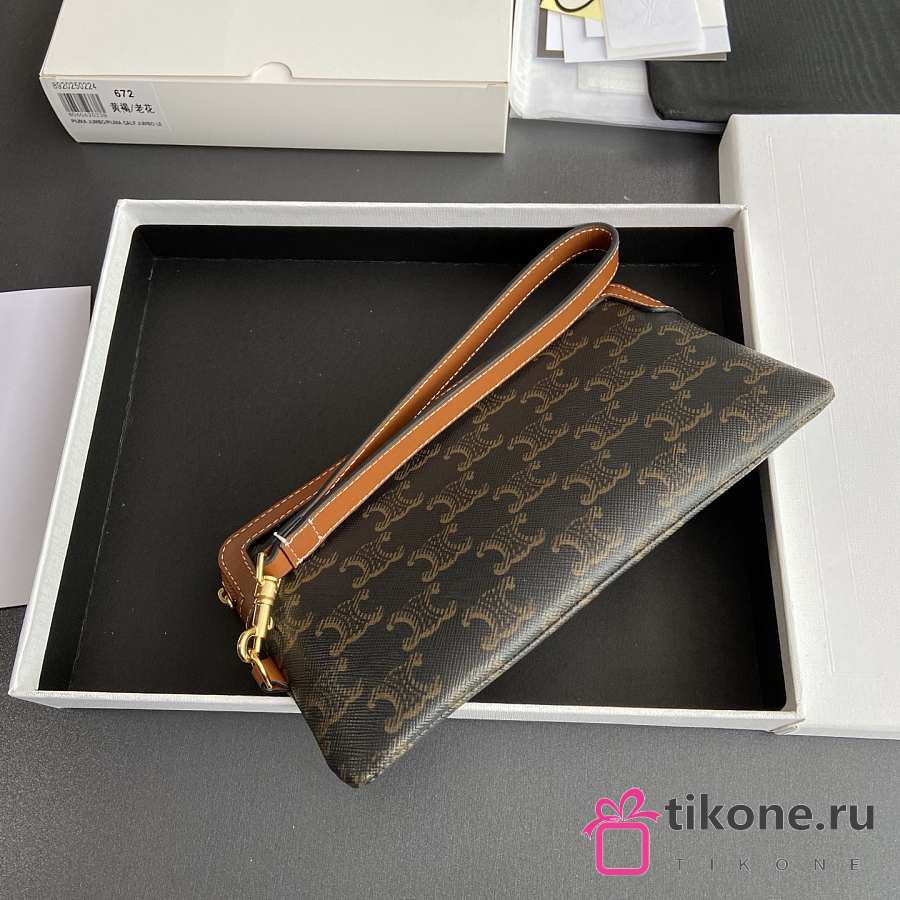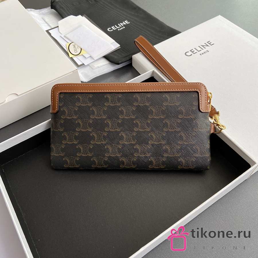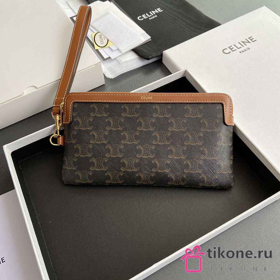 Celine Long Pouch With Strap In Triomphe Canvas And Calfskin
