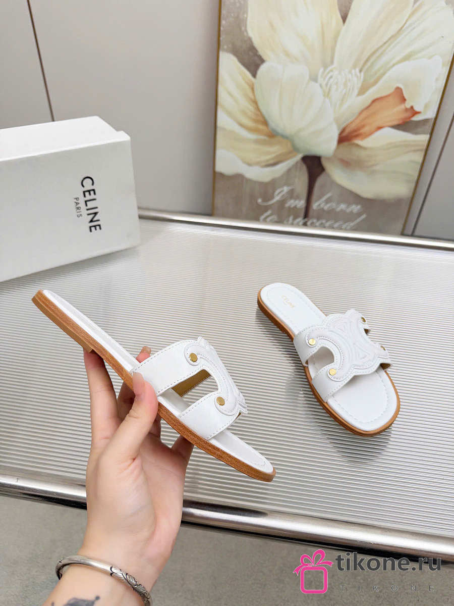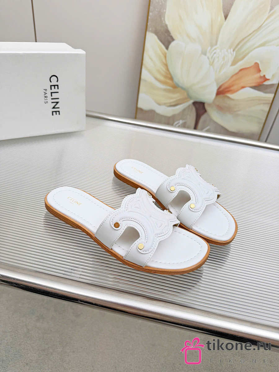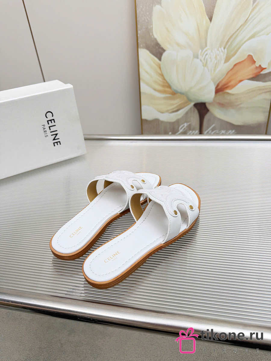 Celine Marina Mule In Calfskin White