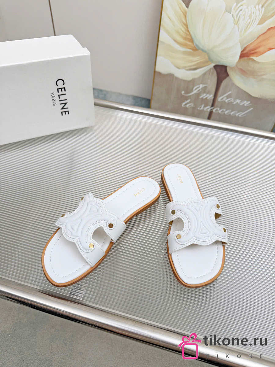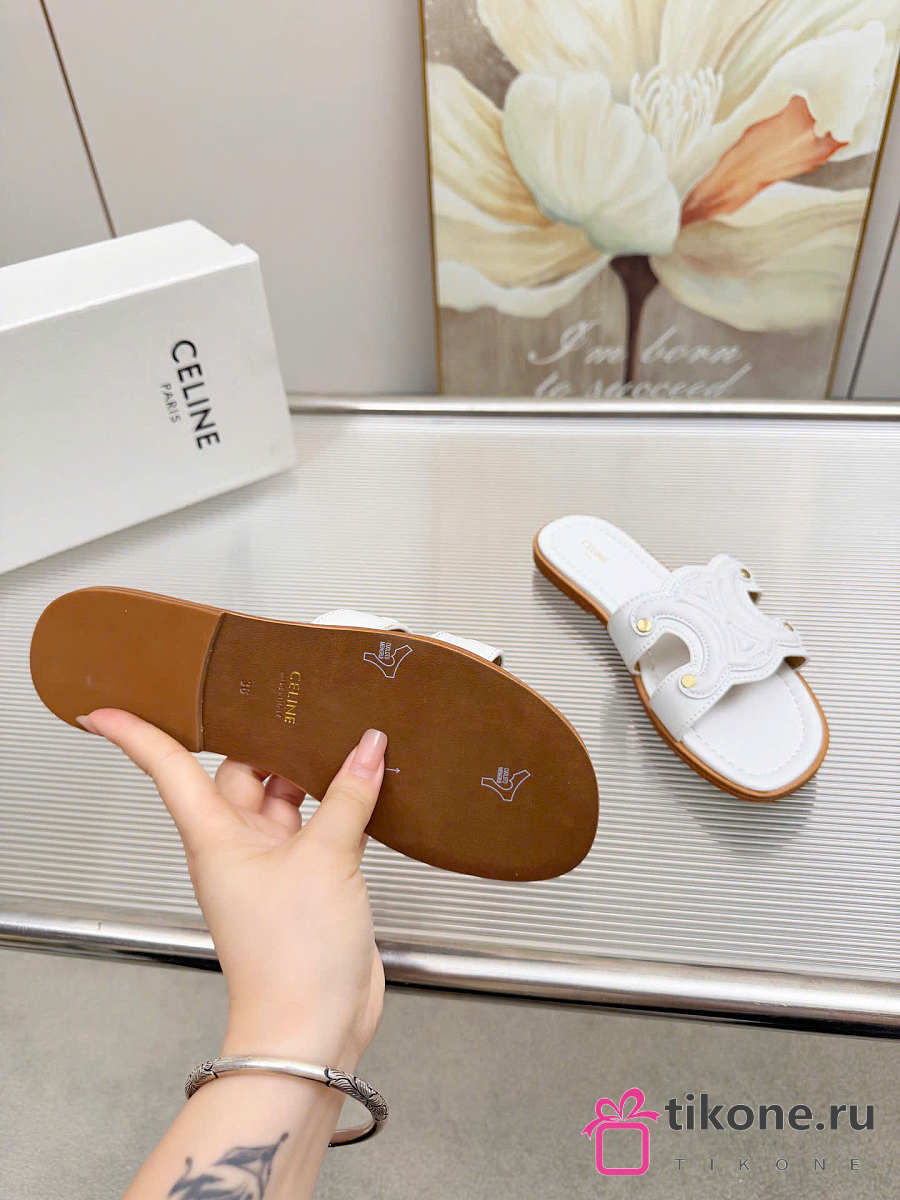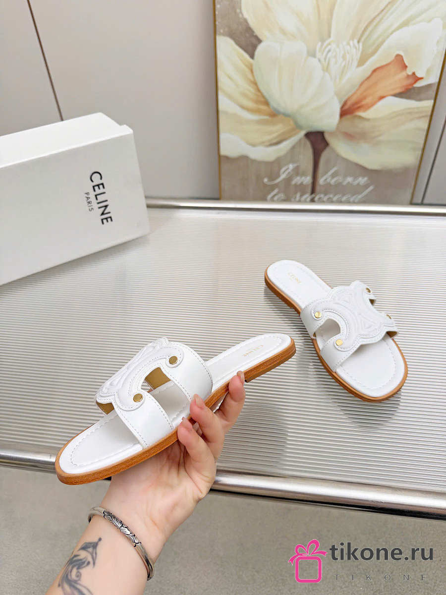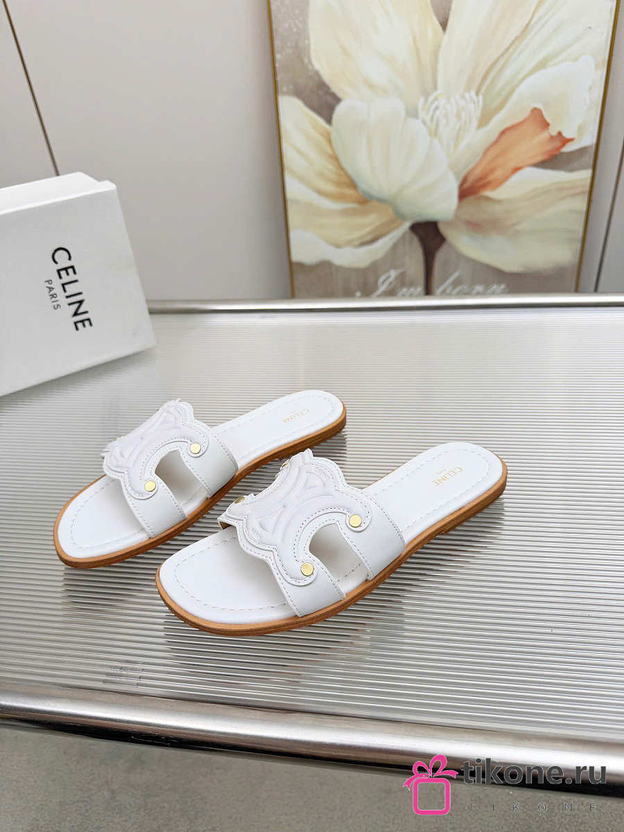 Celine Marina Mule In Calfskin White