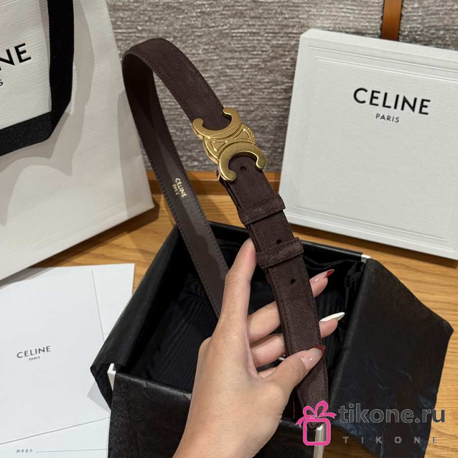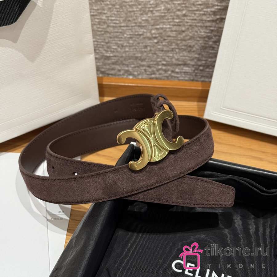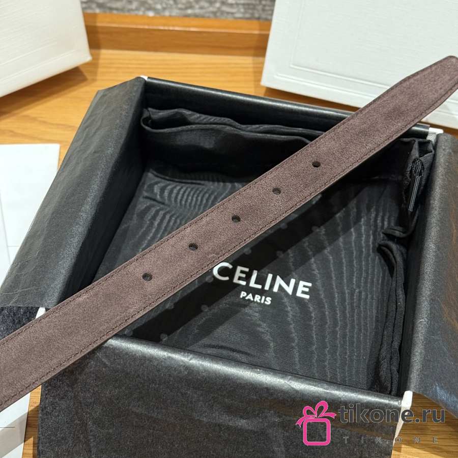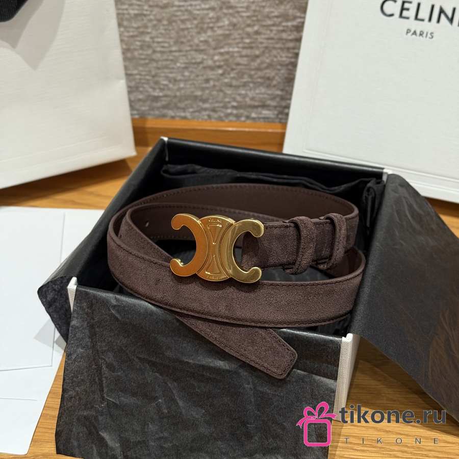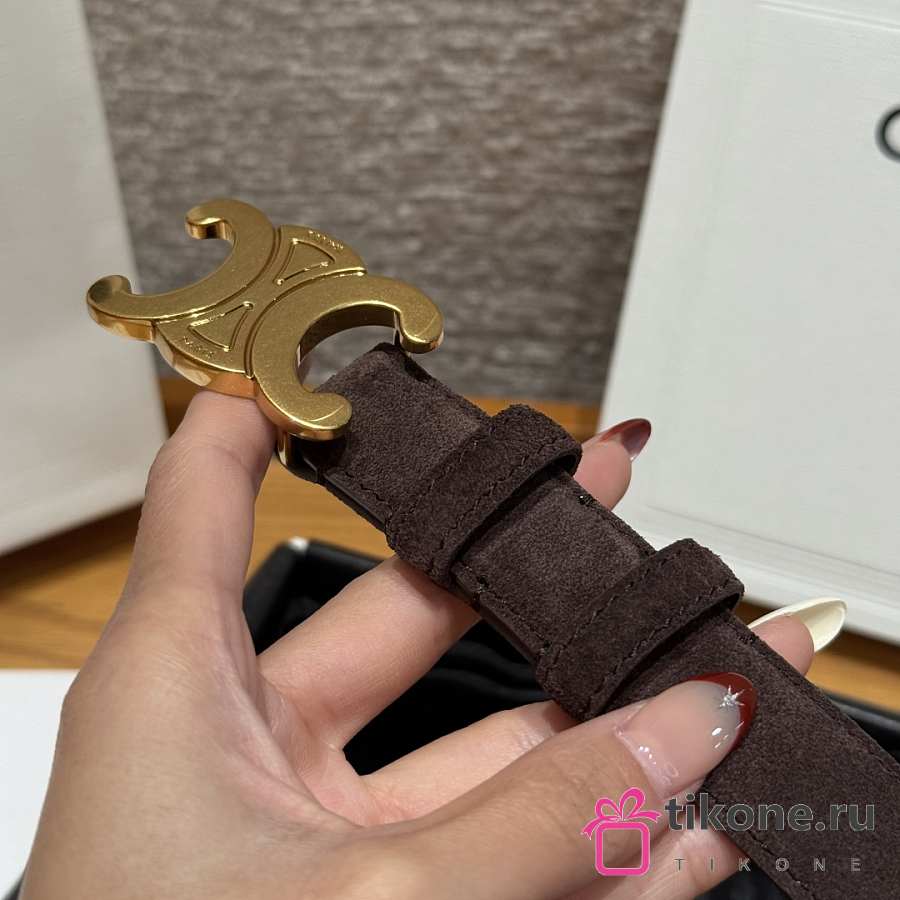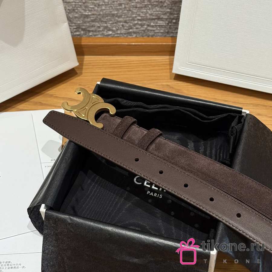 Celine Medium 25mm Triomphe Belt In Suede Calfskin Dark Brown
