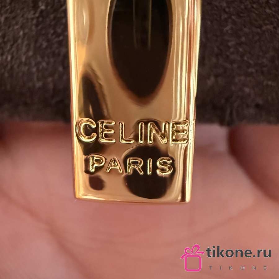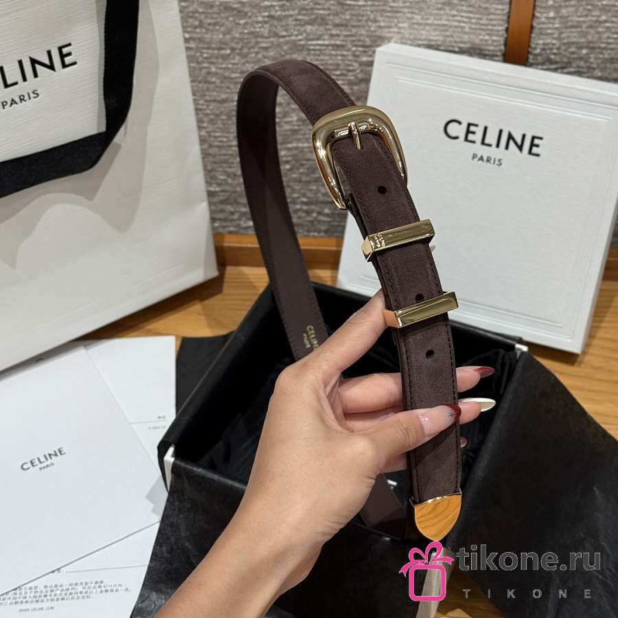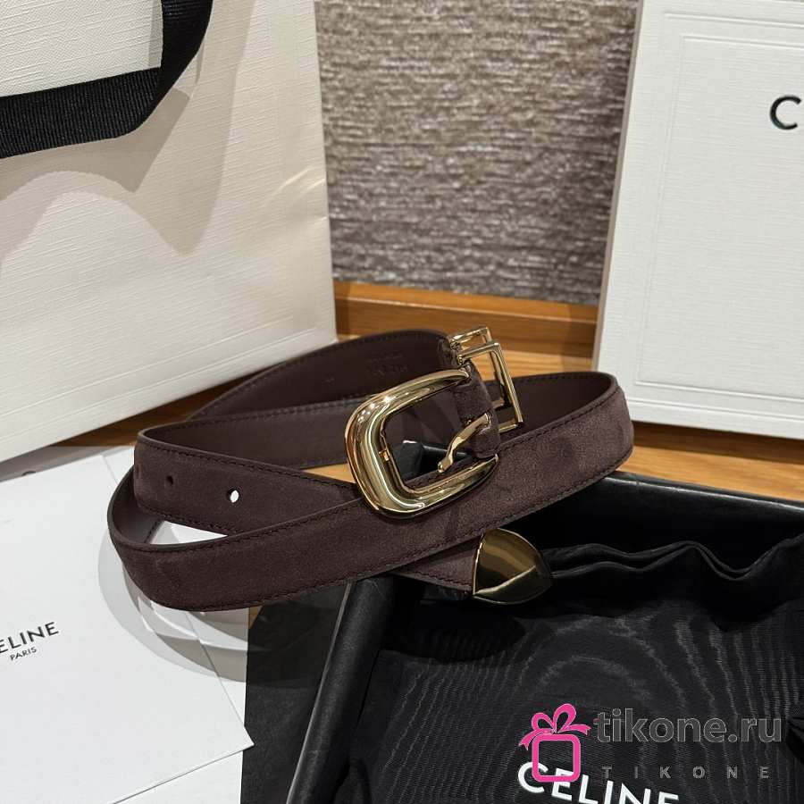 Celine Medium 25mm Western Belt In Grained Suede Calfskin Dark Brown