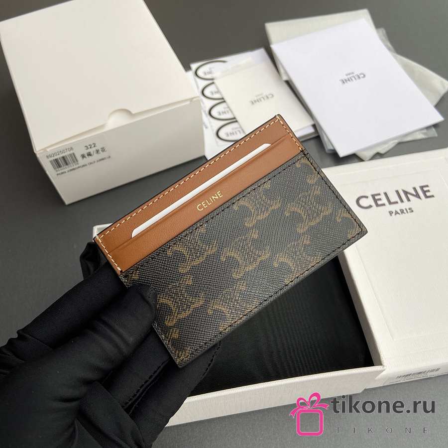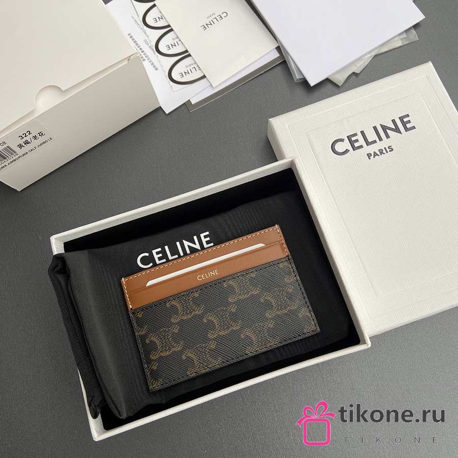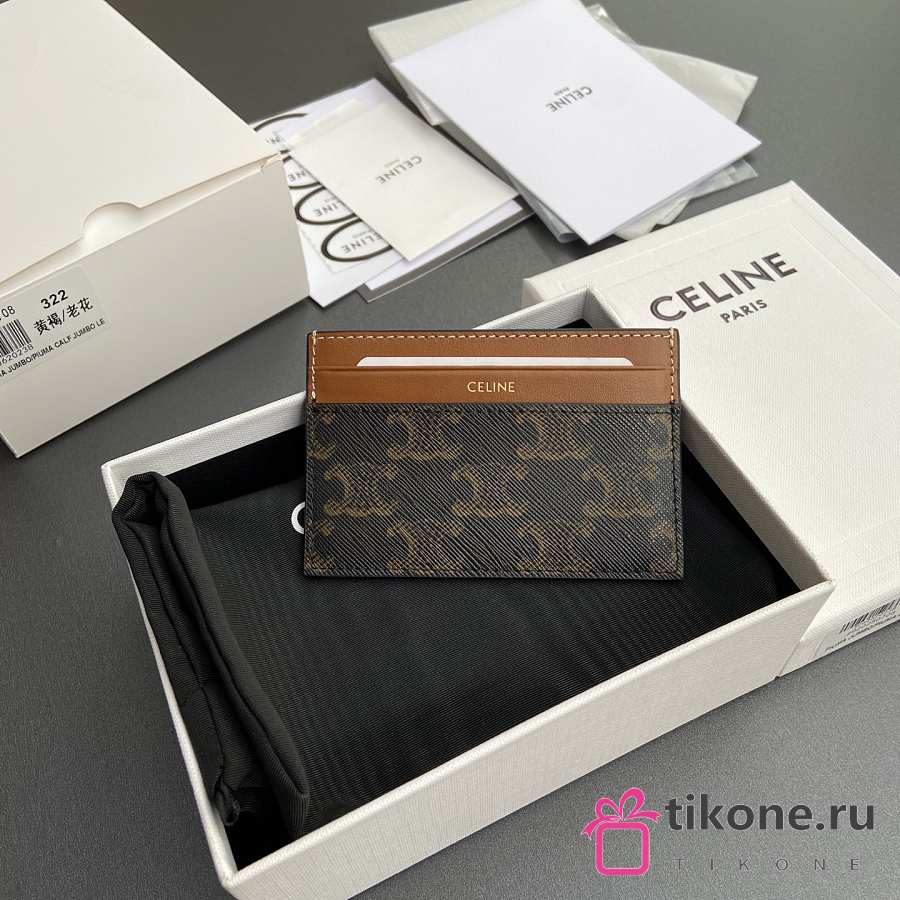 Celine Medium Card Holder In Triomphe Canvas And Calfskin - 11x7x0.5cm