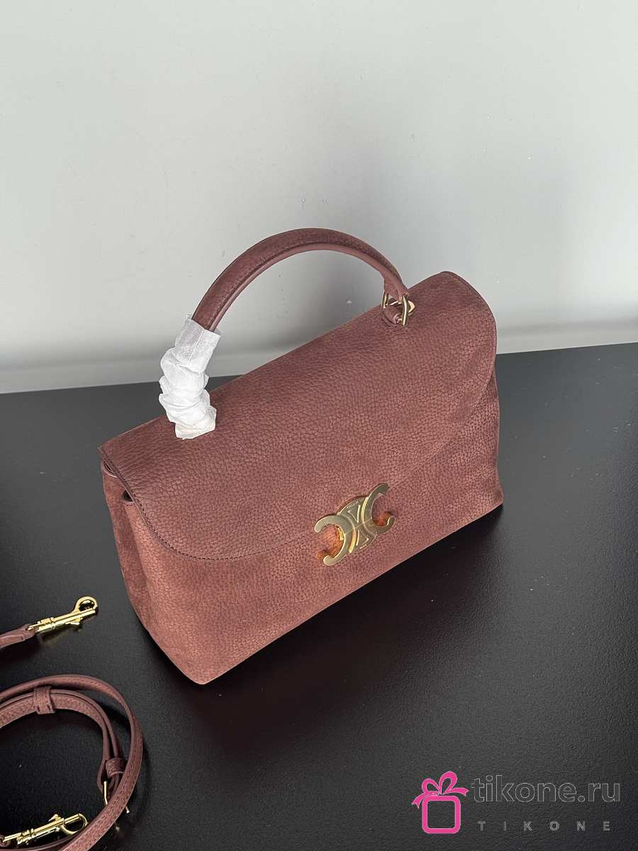 Celine Medium Nino Bag In Grained Nubuck Calfskin Chestnut - 25x17.5x10cm
