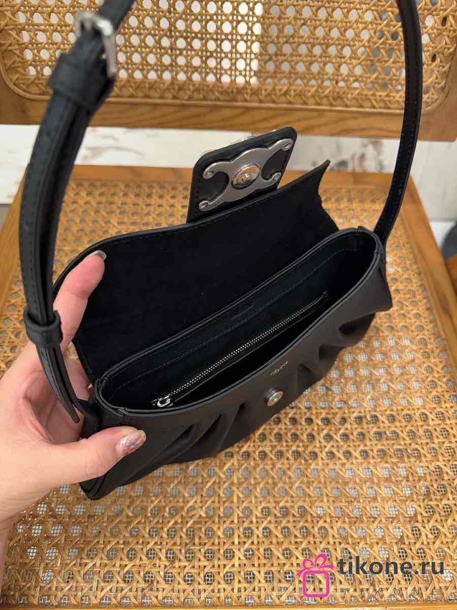Celine Meidum Polly Bag Calfskin Black Leather - 29.5x14.5x3cm