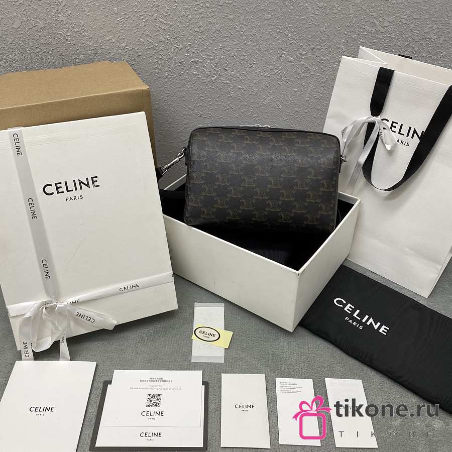 Celine Wiltern Clutch Triomphe Soft Calfskin Black - 31x15x2cm