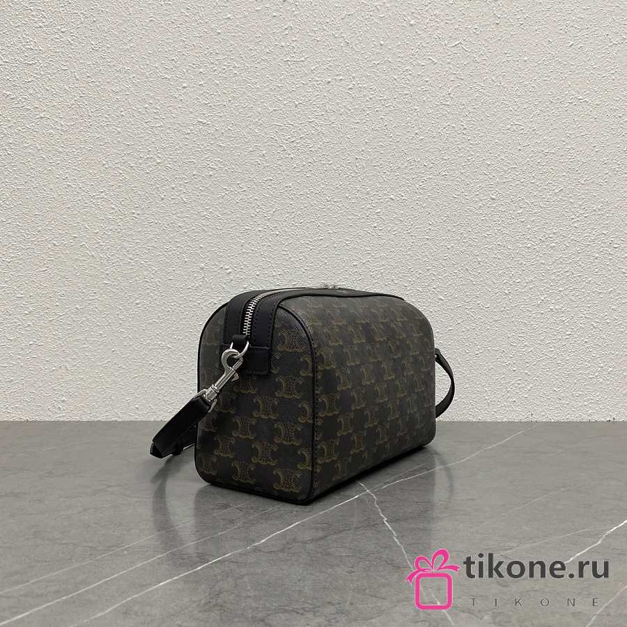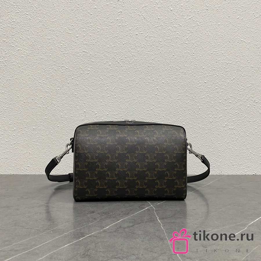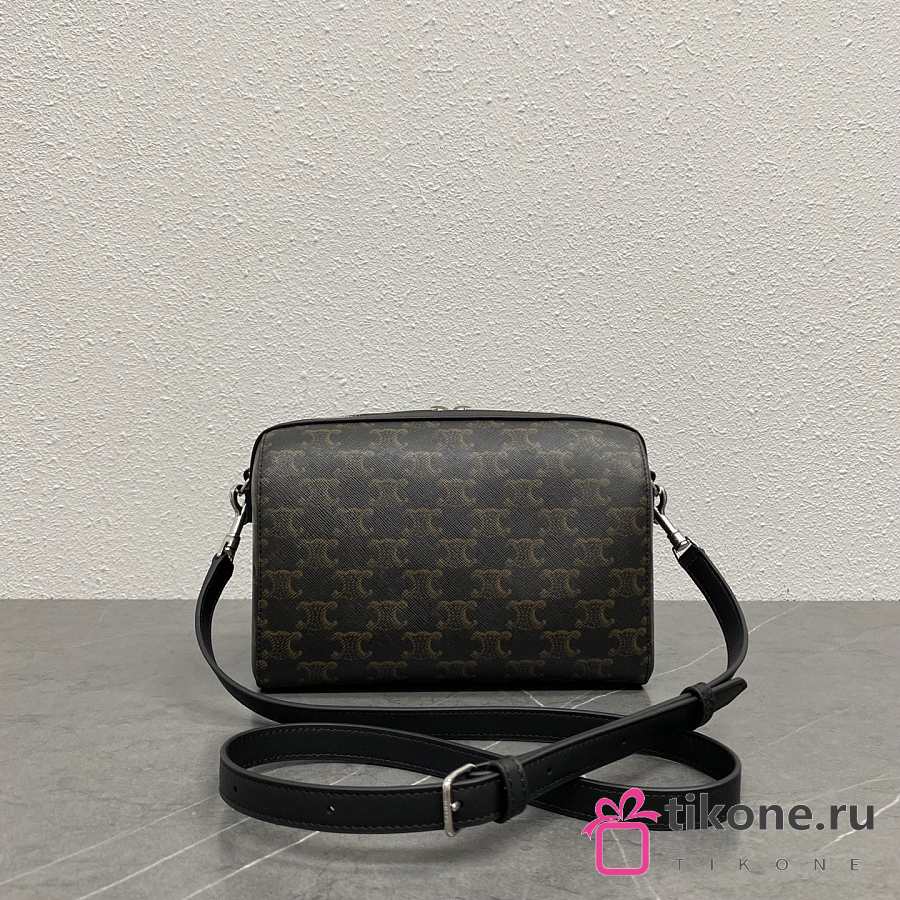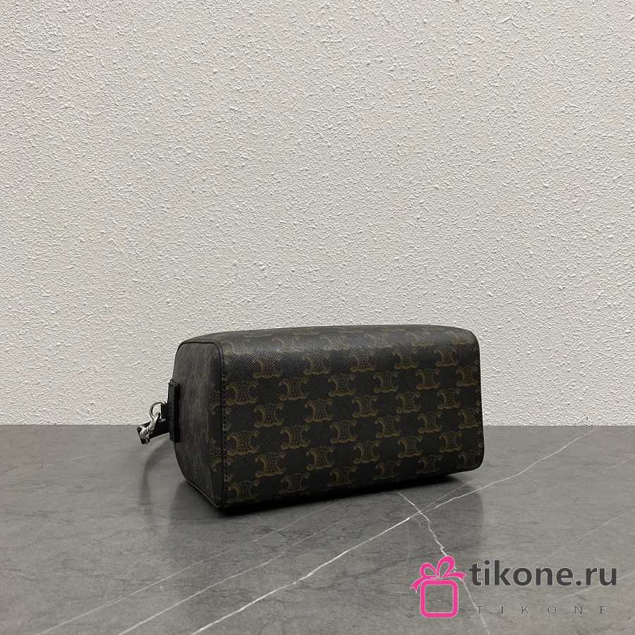 Celine Mini Boston In Triomphe Canvas And Calfskin Black - 22x16x10cm